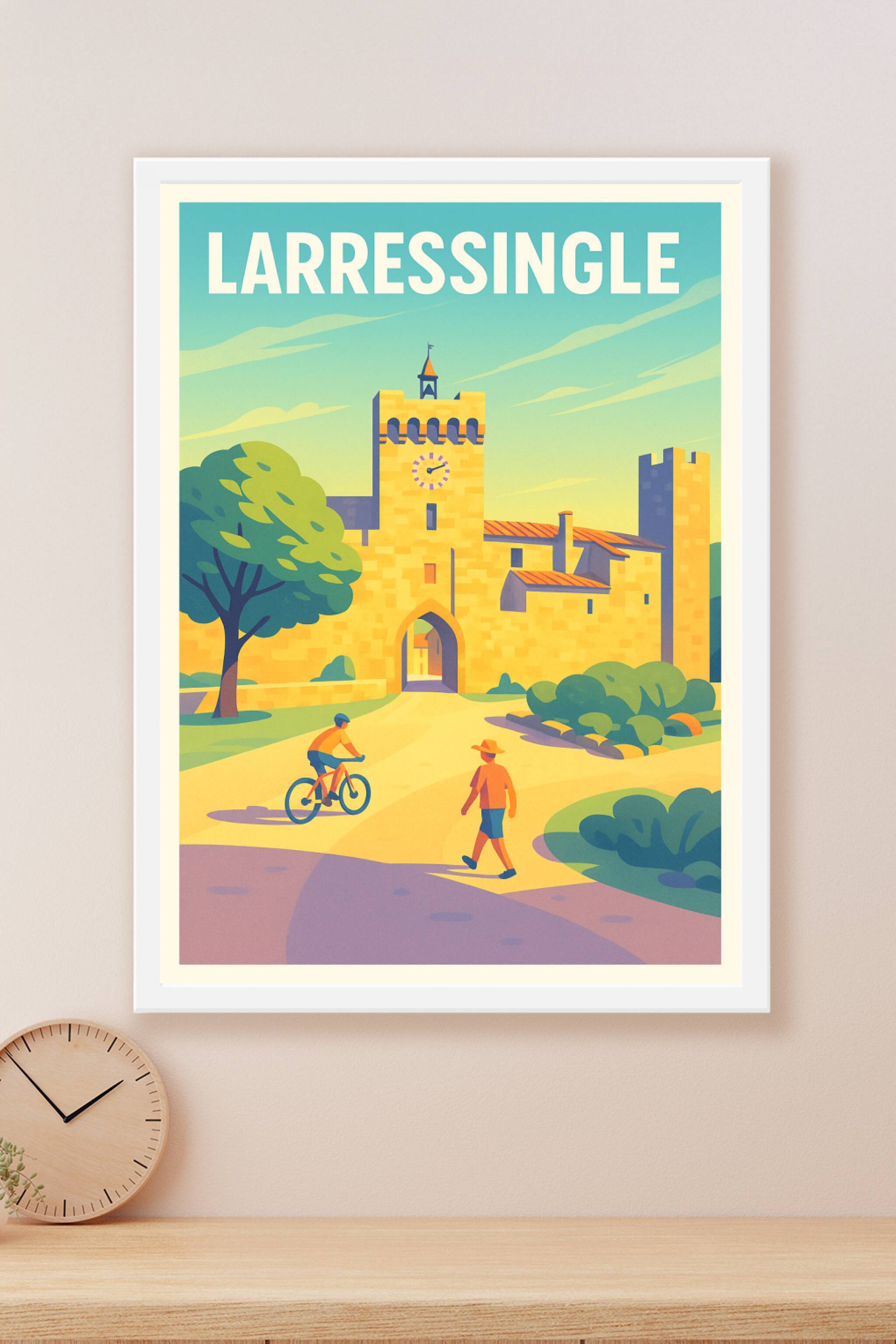 Découvrez l'univers pittoresque de Larressingle avec cette affiche illustrée mettant en scène ses remparts historiques baignés de lumière douce. Ce poster capture avec harmonie l'architecture médiévale et la tranquillité de cette charmante citadelle, idéale pour apporter une touche d'élégance et d'histoire à votre décoration intérieure. Imprimée en tirage « Fine Art » sur un papier 305g coton de haute qualité, cette affiche offre des couleurs éclatantes et une finesse de détails remarquable. Disponible en formats A1 à A4, avec ou sans cadre, elle s'adapte parfaitement à tous vos espaces, pour un rendu impeccable et durable. Profitez d'une impression premium 100% réalisée en France pour embellir votre intérieur ou offrir un souvenir authentique de Larressingle.