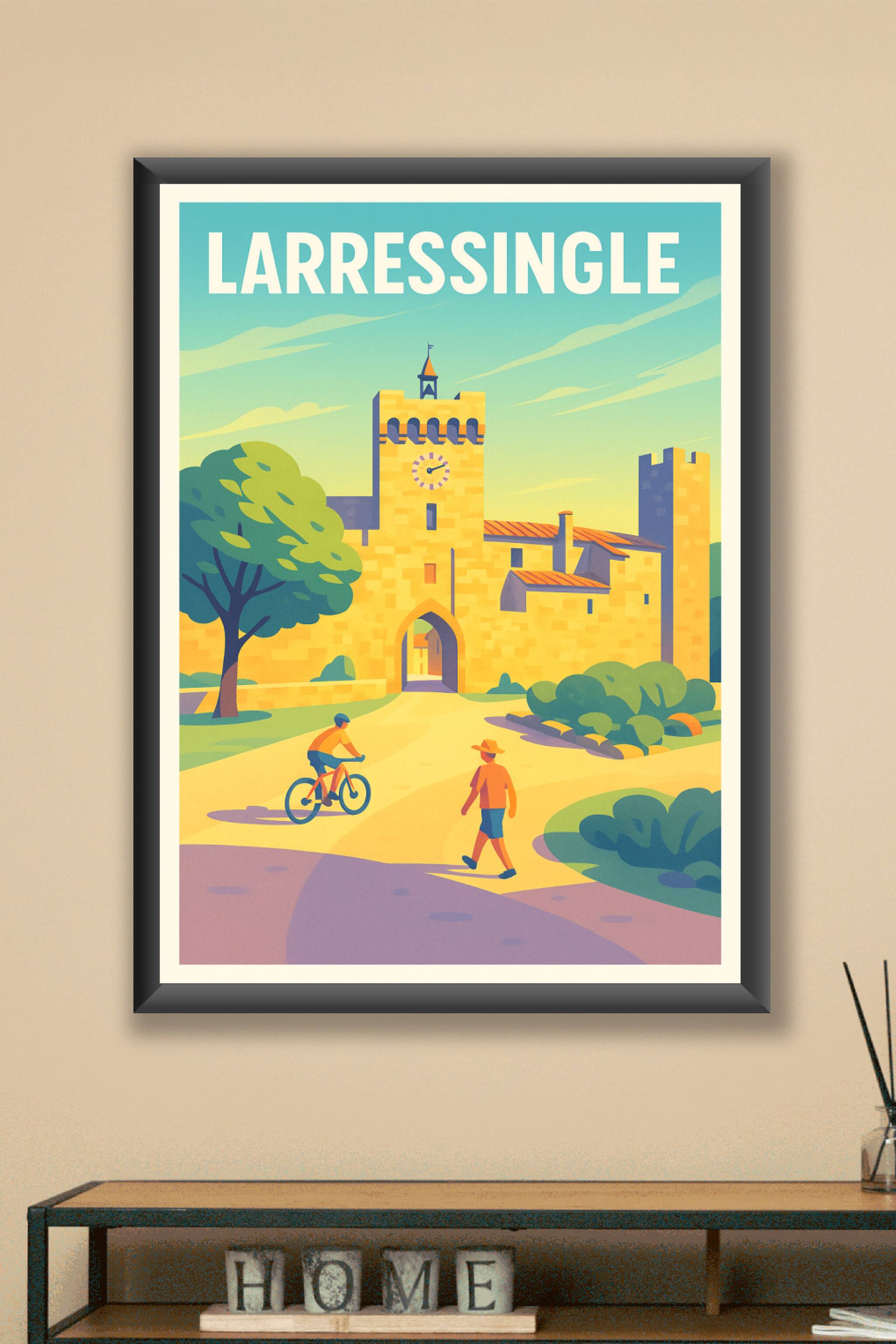 Découvrez l'univers pittoresque de Larressingle avec cette affiche illustrée mettant en scène ses remparts historiques baignés de lumière douce. Ce...