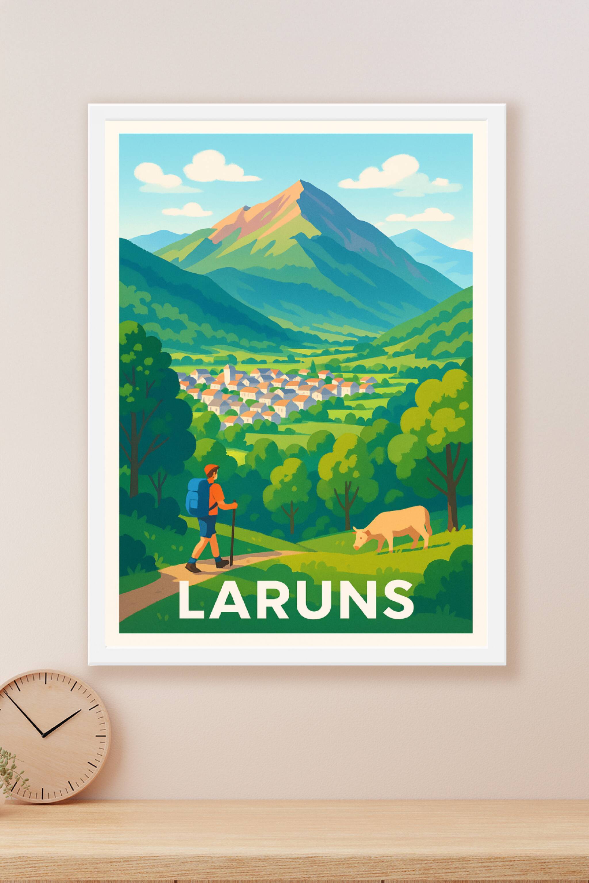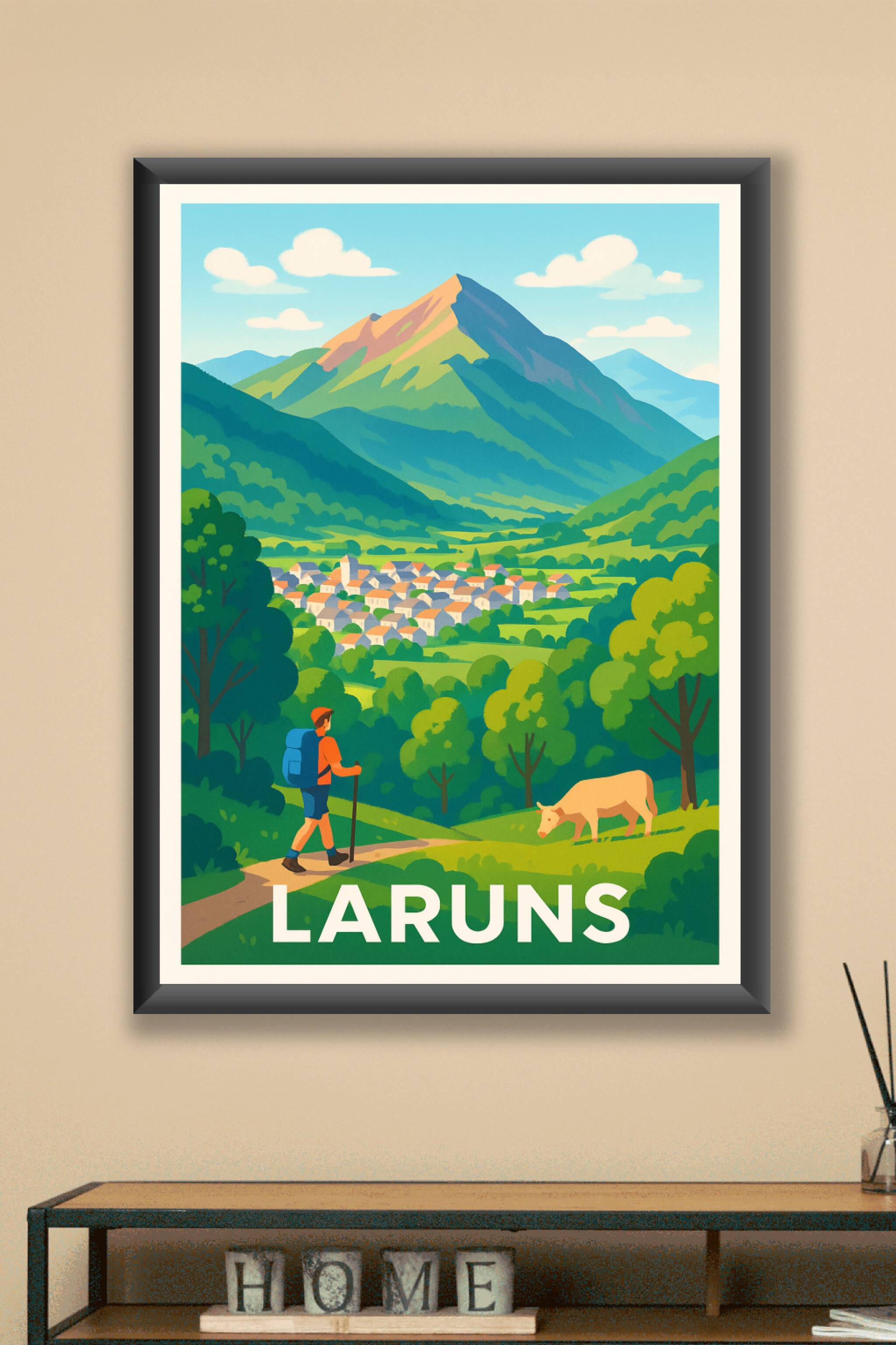 Découvrez la sérénité des paysages pyrénéens avec ce poster évoquant la charmante commune de Laruns, nichée au cœur d'une nature verdoyante. Cette ...