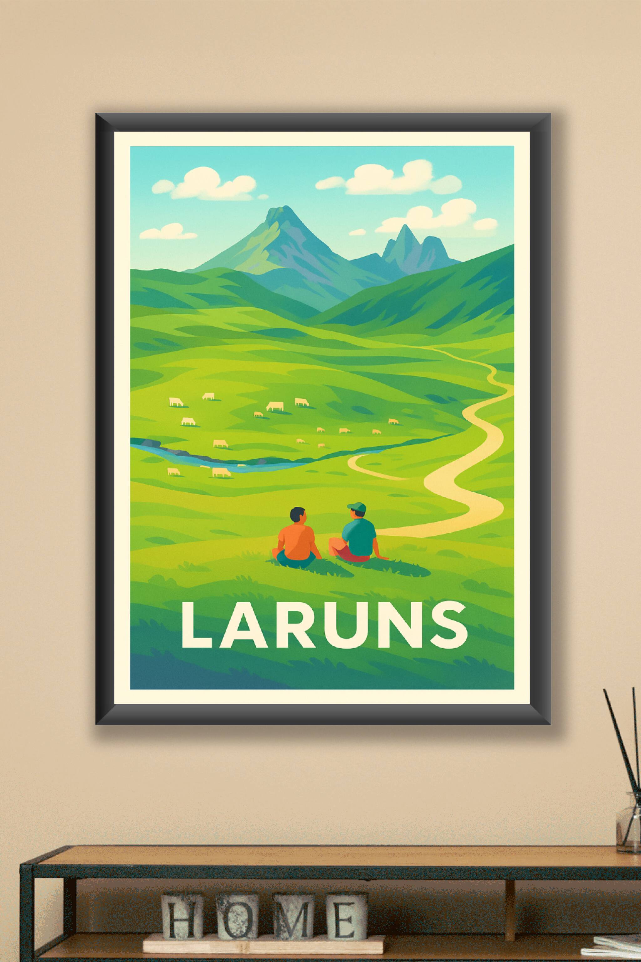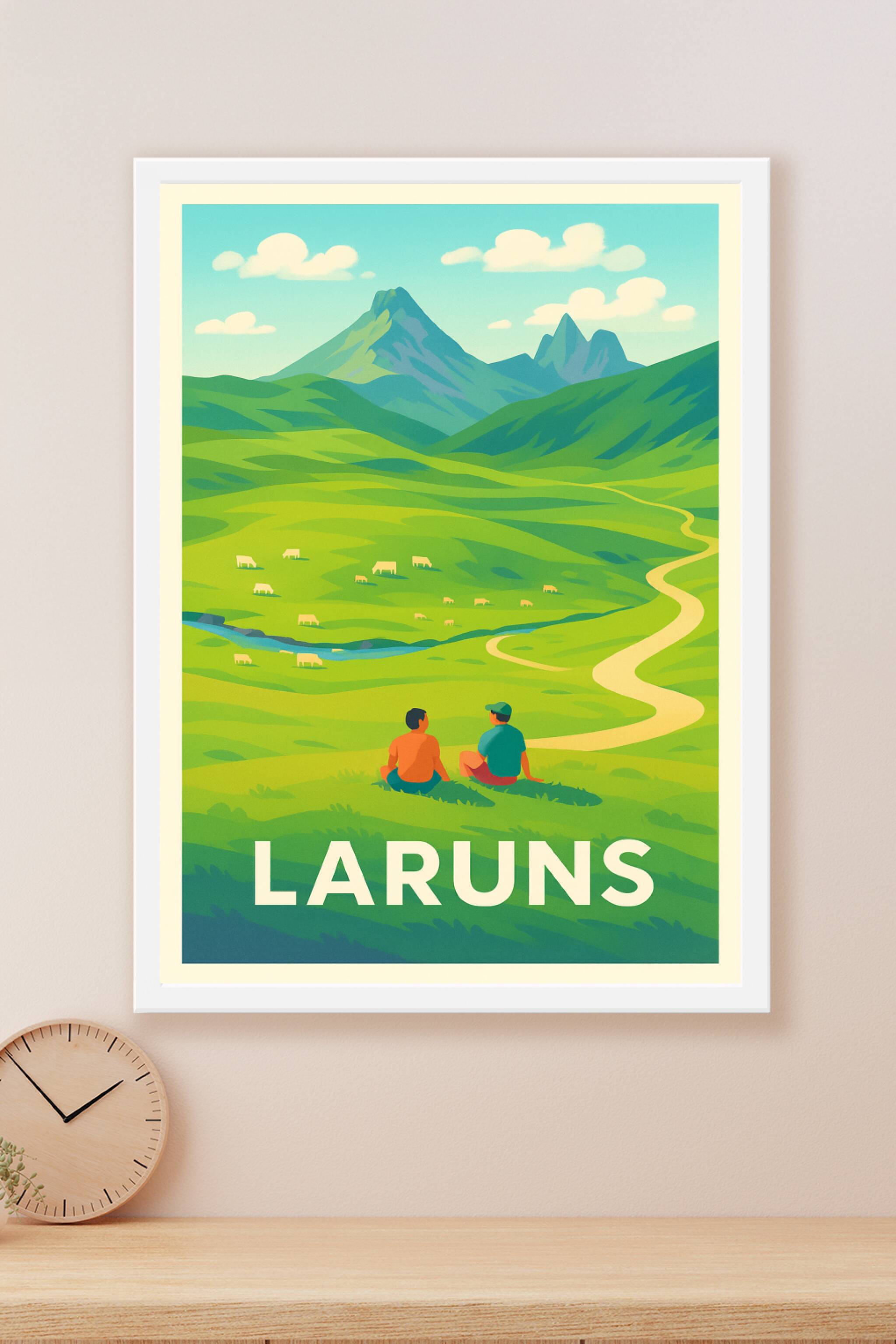 Découvrez la douceur de vivre à Laruns avec ce poster illustré qui capture à merveille la beauté des paysages verdoyants des Pyrénées. L'affiche me...
