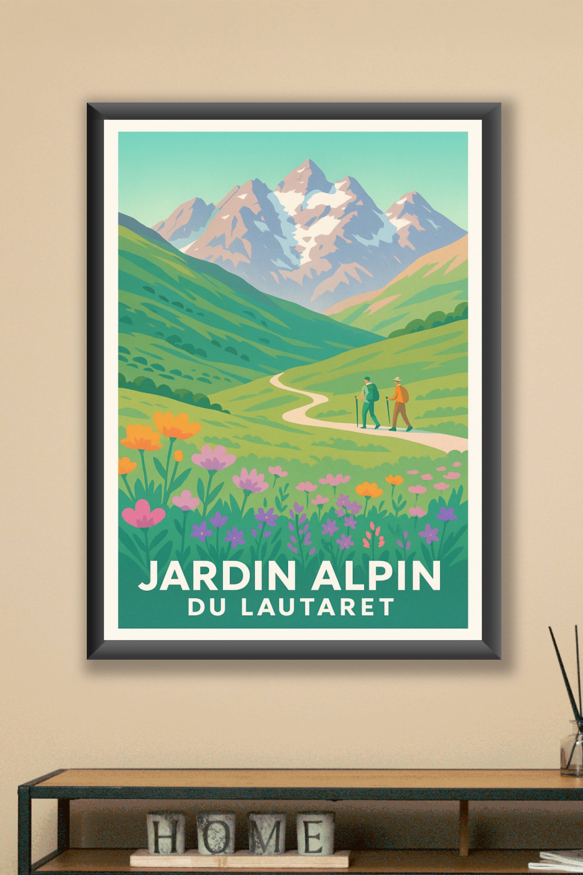 Découvrez la beauté naturelle du Jardin Alpin du Lautaret avec cette affiche illustrée qui capture la sérénité des sommets et la richesse florale d...
