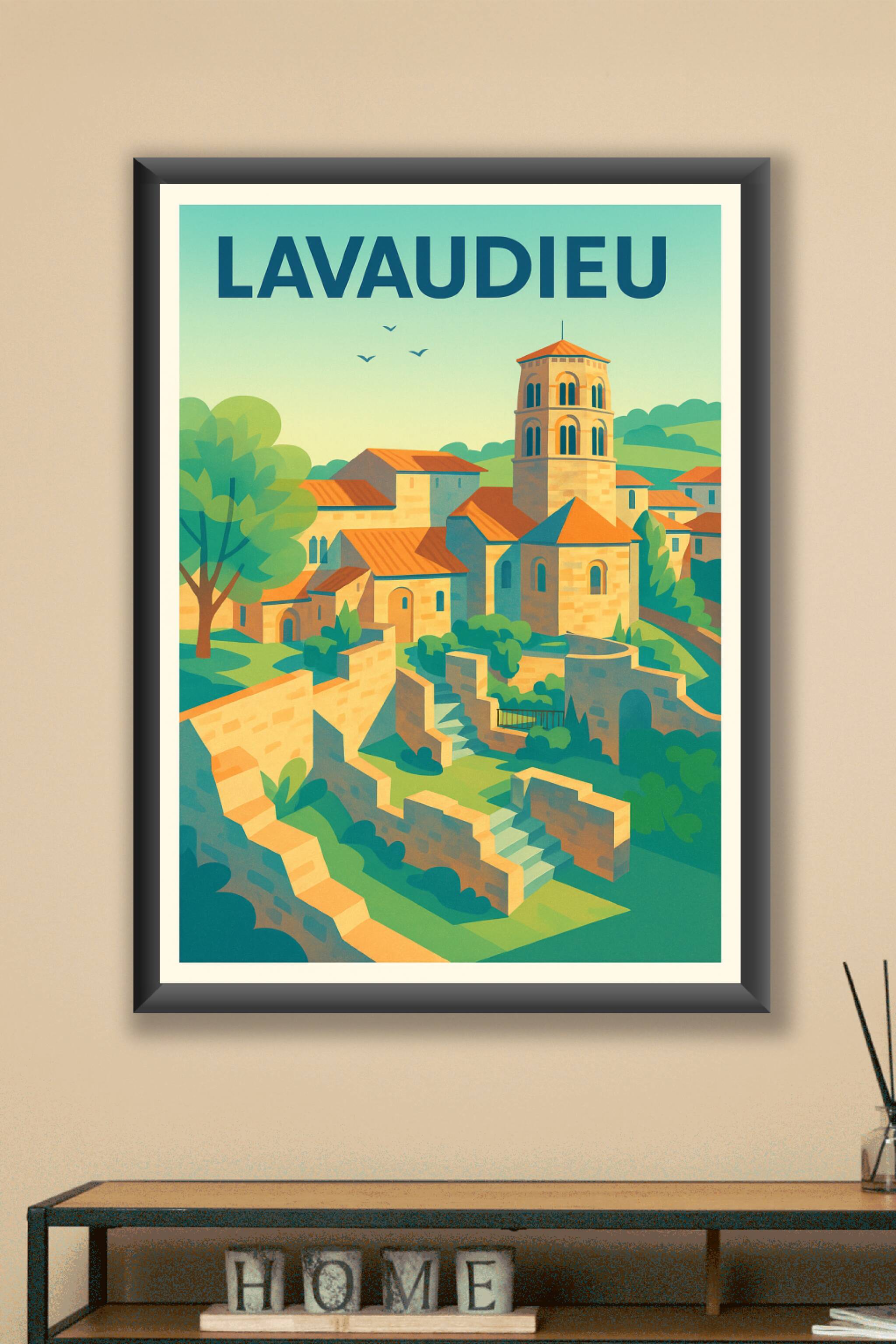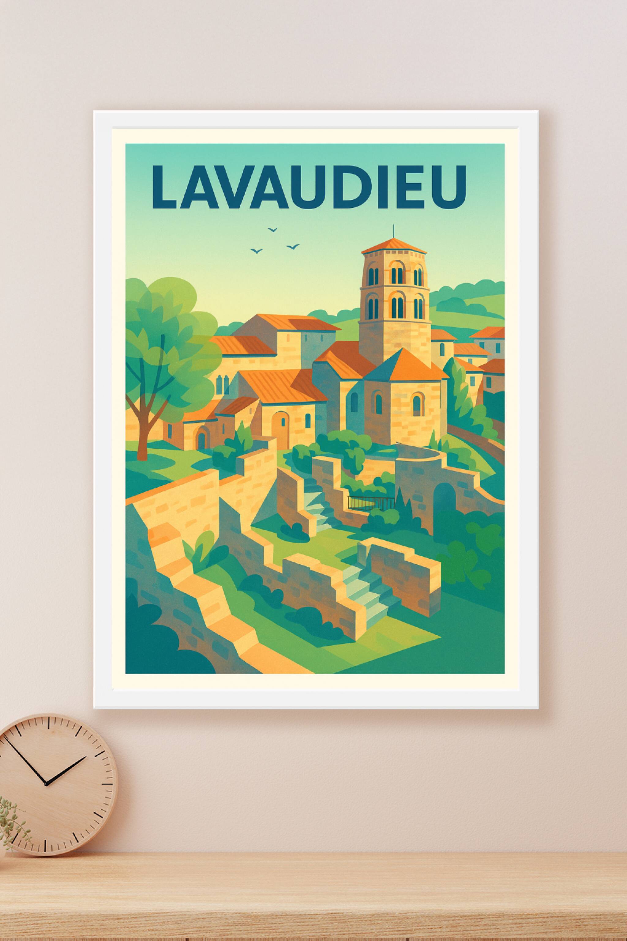 Découvrez la beauté intemporelle du village de Lavaudieu avec cette affiche illustrée au style graphique contemporain. Ses ruelles et ses bâtiments...