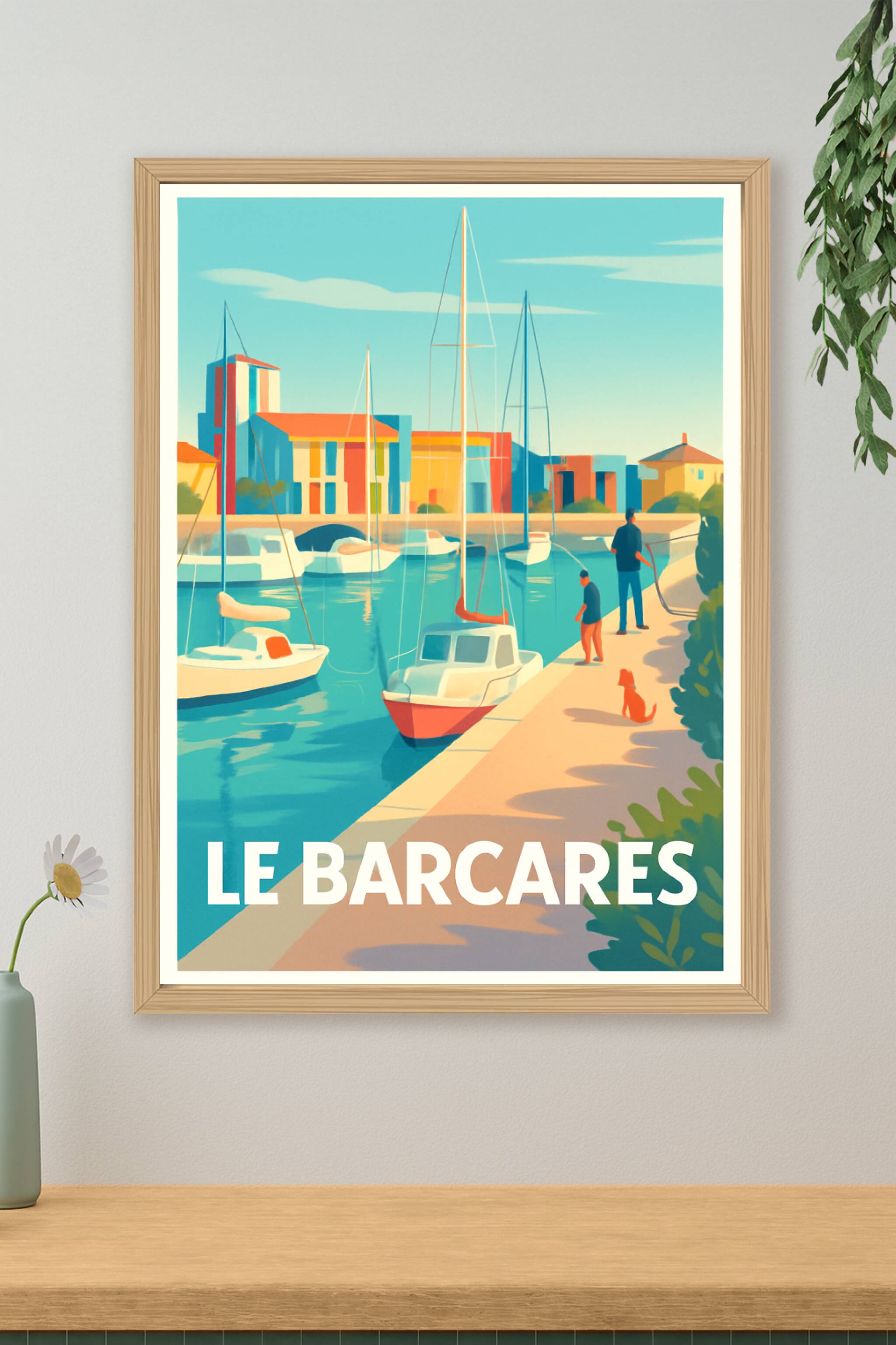 Découvrez le calme et la beauté du port du Barcarès avec cette affiche illustrée aux couleurs douces et lumineuses. Ce poster capture l'ambiance pa...