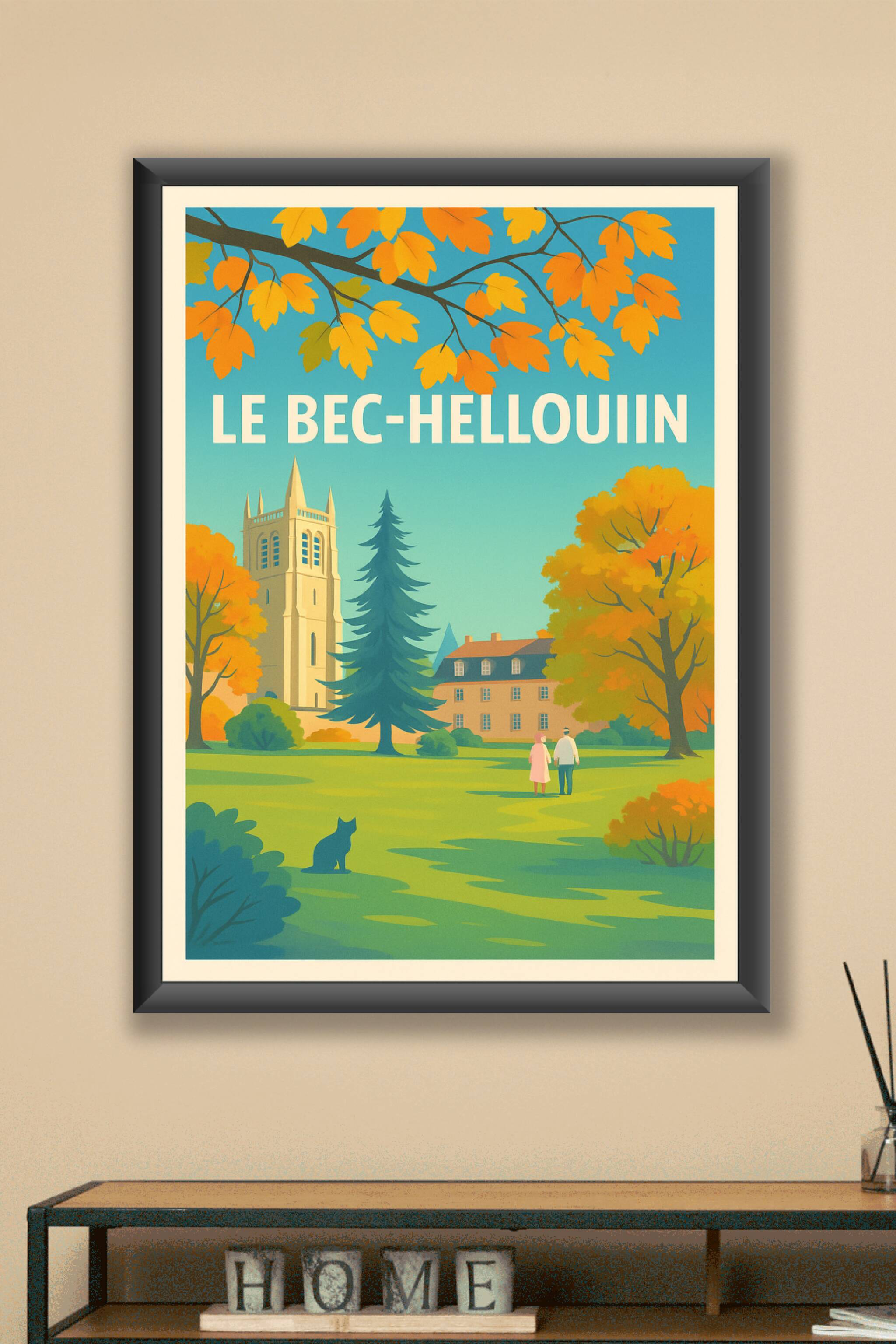 Découvrez toute la sérénité et la beauté naturelle de Le Bec-Hellouin avec cette affiche au style vintage. Illustrant les couleurs chaudes de l'aut...