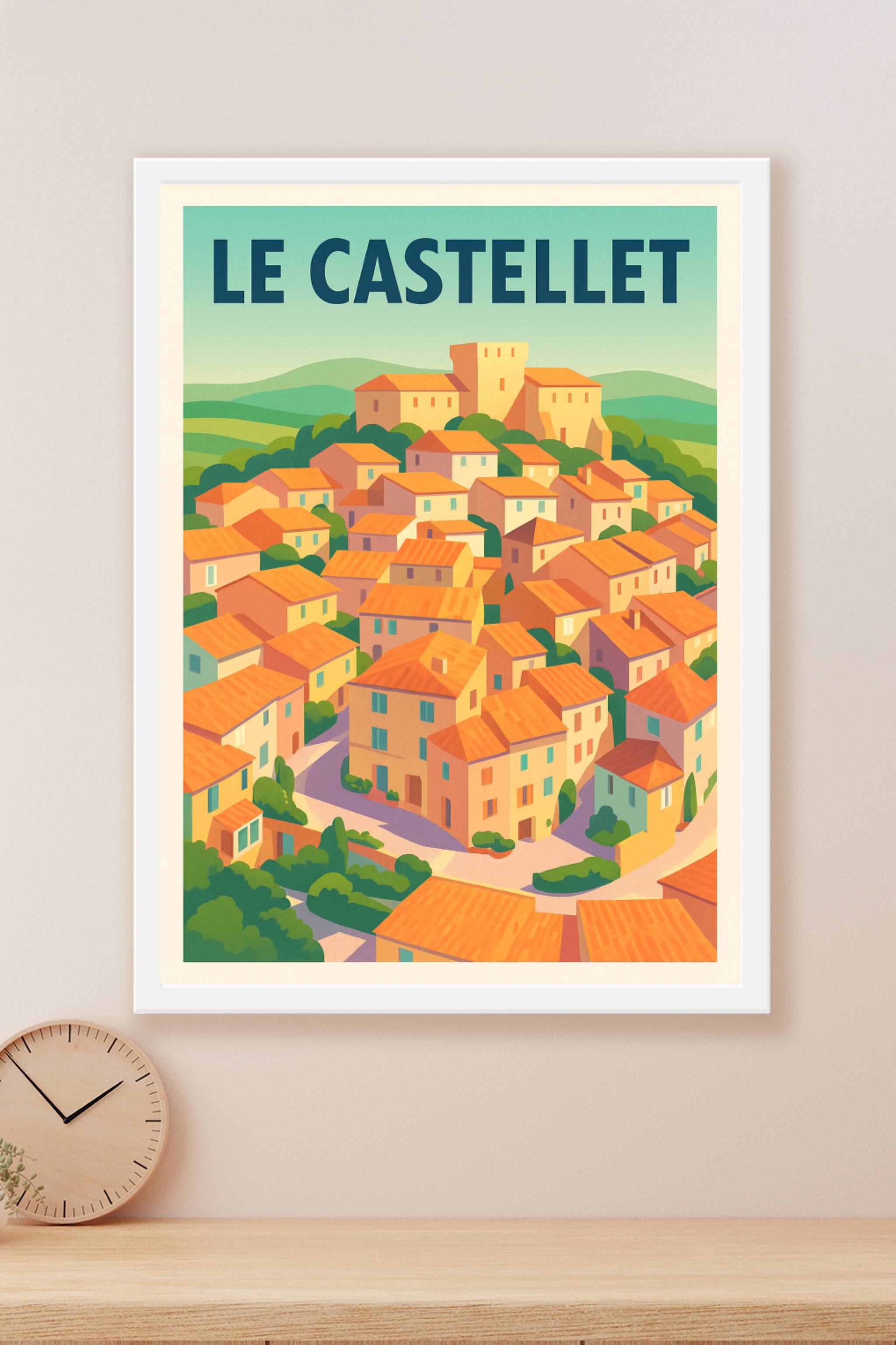 Découvrez l'authenticité pittoresque du village de Le Castellet avec cette superbe affiche illustrée aux couleurs chaudes et apaisantes. Son style ...