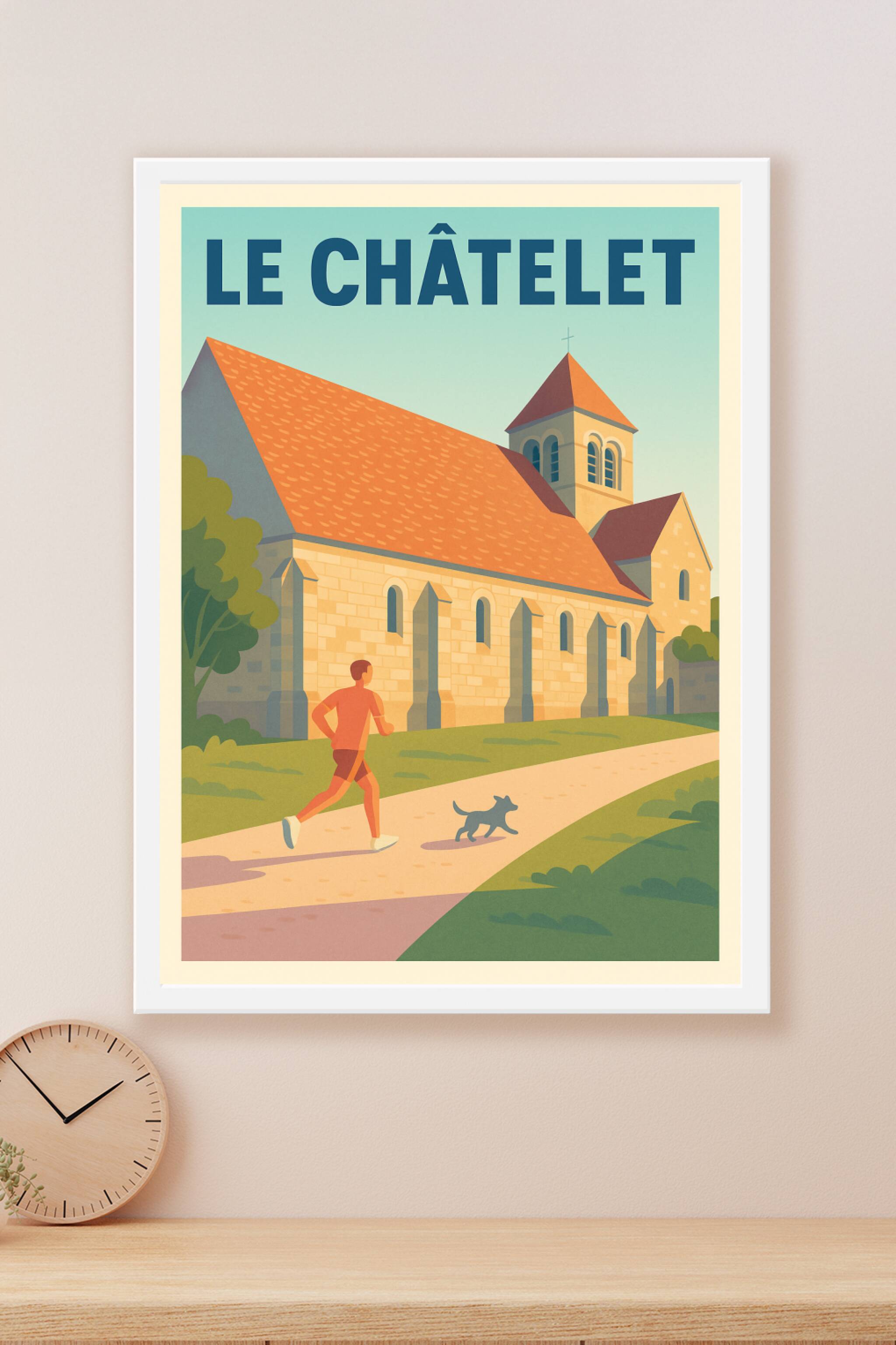 Découvrez l'élégance tranquille du Châtelet à travers cette affiche poétique qui met en scène une promenade matinale au pied d'une église au toit rouge éclatant. Ce poster évoque une atmosphère paisible, idéale pour sublimer votre décoration intérieure. Imprimée en tirage "Fine Art" sur un papier 305g coton d'une qualité supérieure, cette affiche offre des couleurs vibrantes et un rendu exceptionnel. Disponible en formats A1 à A4, avec ou sans cadre, elle s'adapte parfaitement à tous vos espaces pour apporter une touche authentique et chaleureuse à votre intérieur. Offrez-vous ou à vos proches un souvenir raffiné et durable de la douceur de vivre au Châtelet.