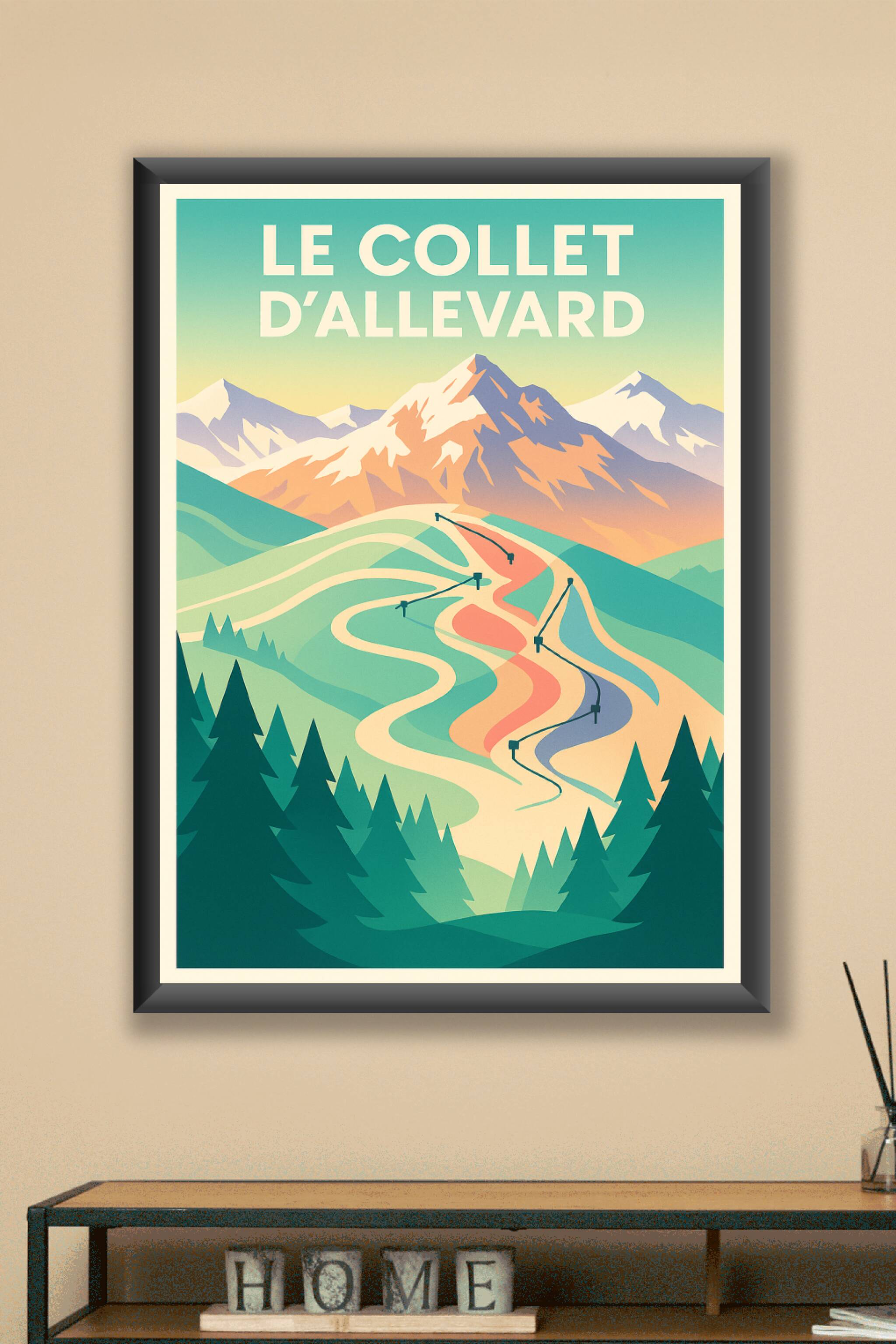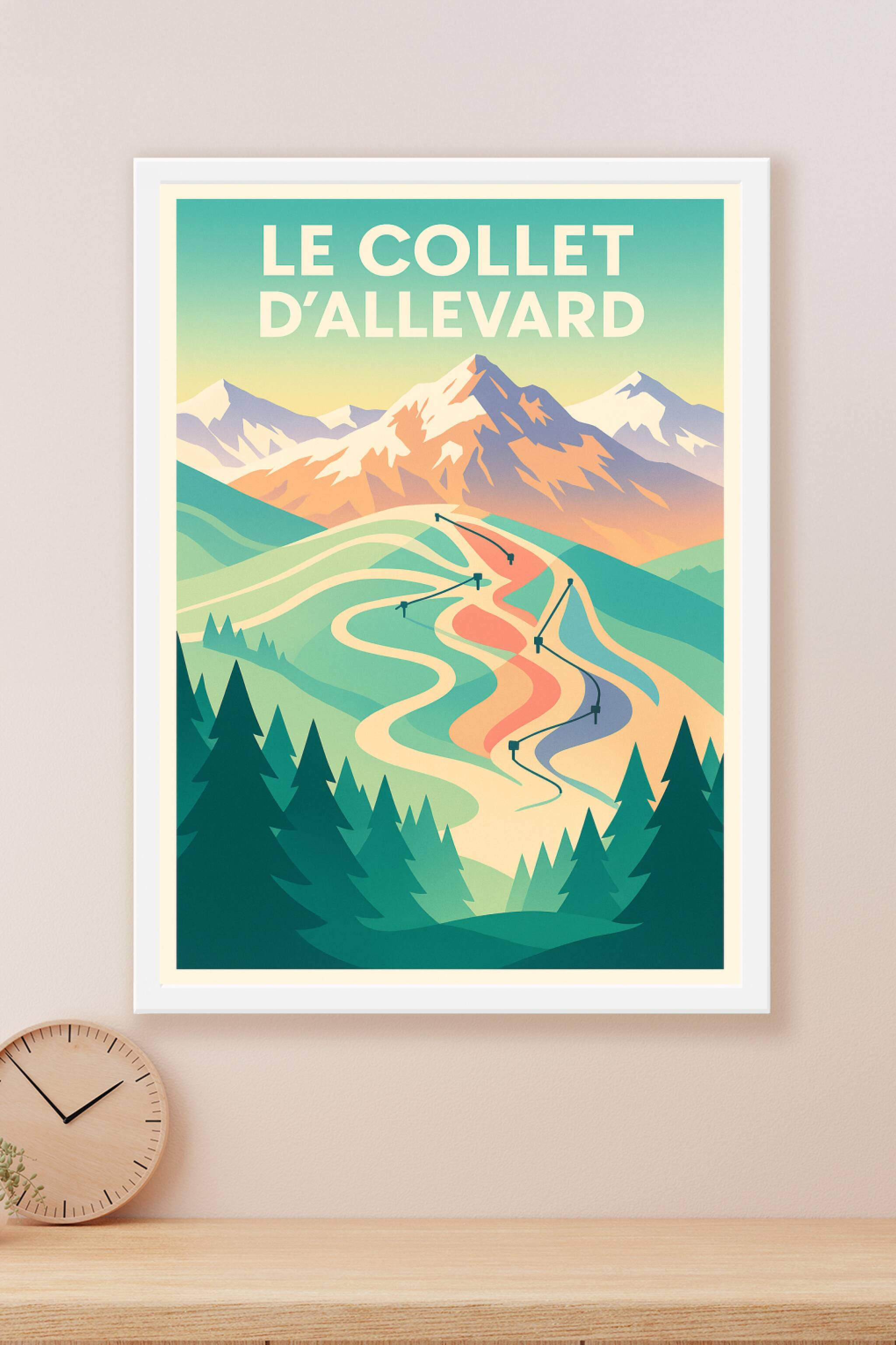 Découvrez la beauté intemporelle du Collet d'Allevard avec cette affiche au style vintage rehaussé de couleurs douces et harmonieuses. Ce poster év...