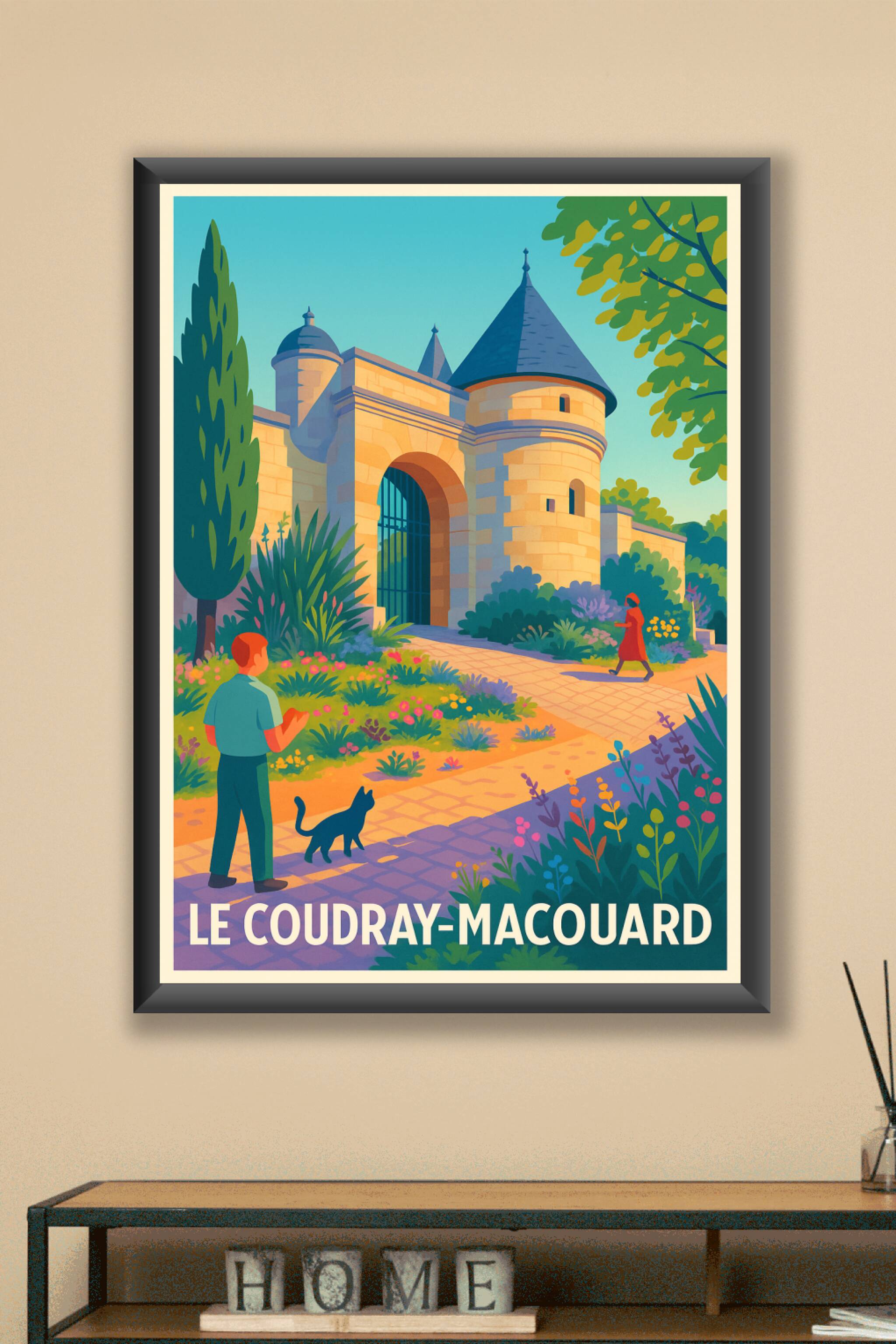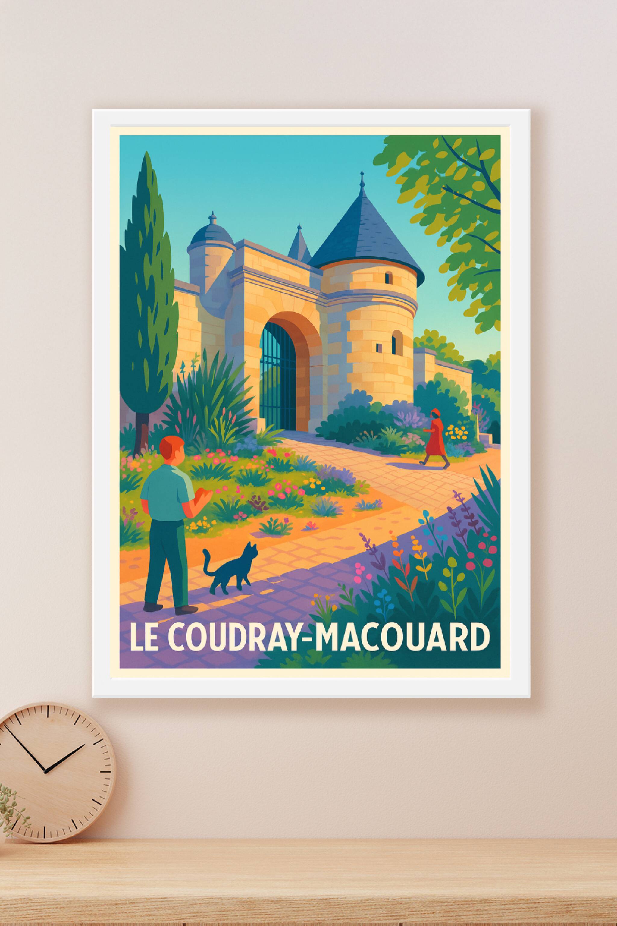 Découvrez l'élégance intemporelle de Le Coudray-Macouard avec cette affiche illustrée aux couleurs vives et au style rétro. Ce poster met en valeur...