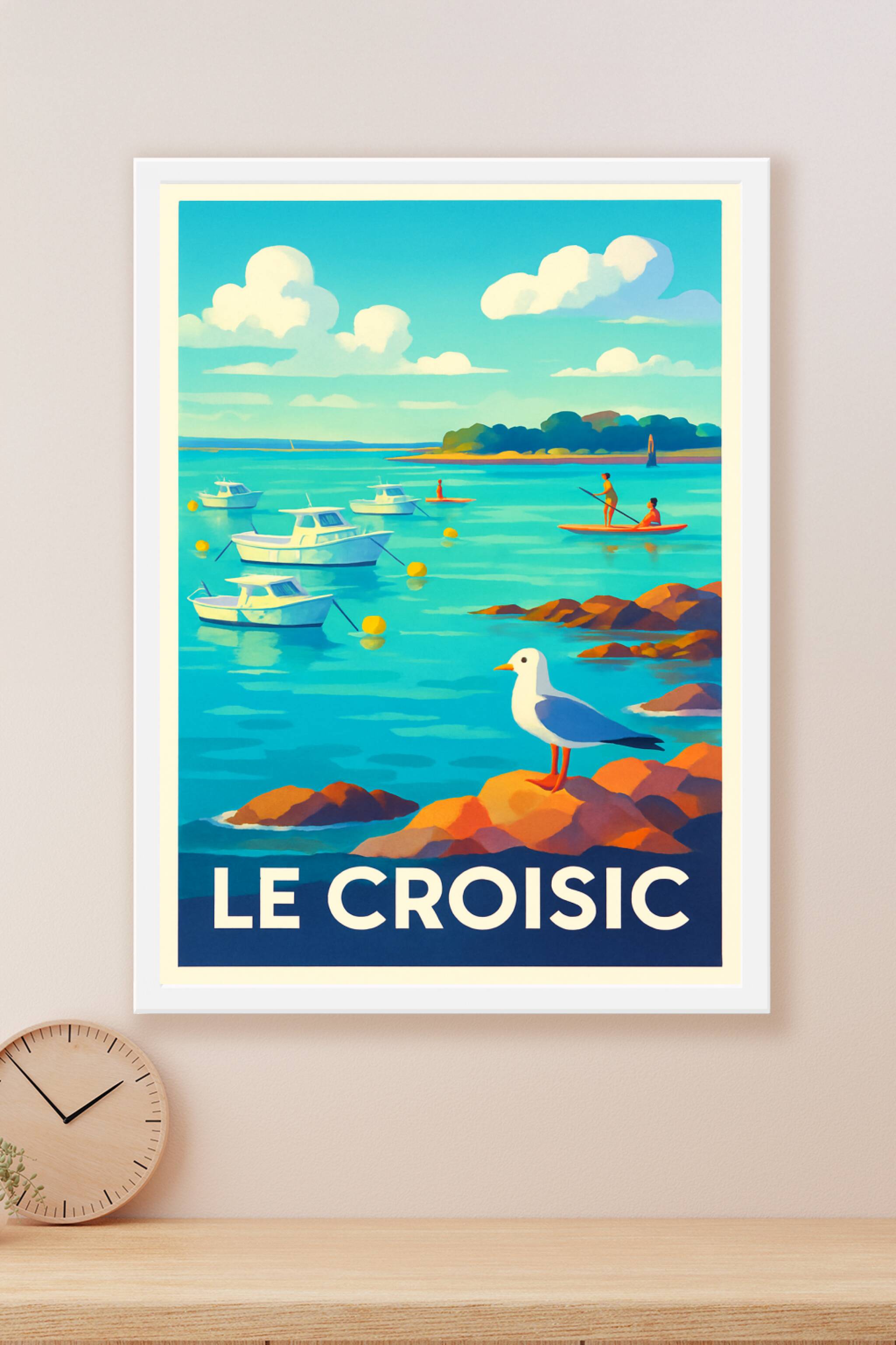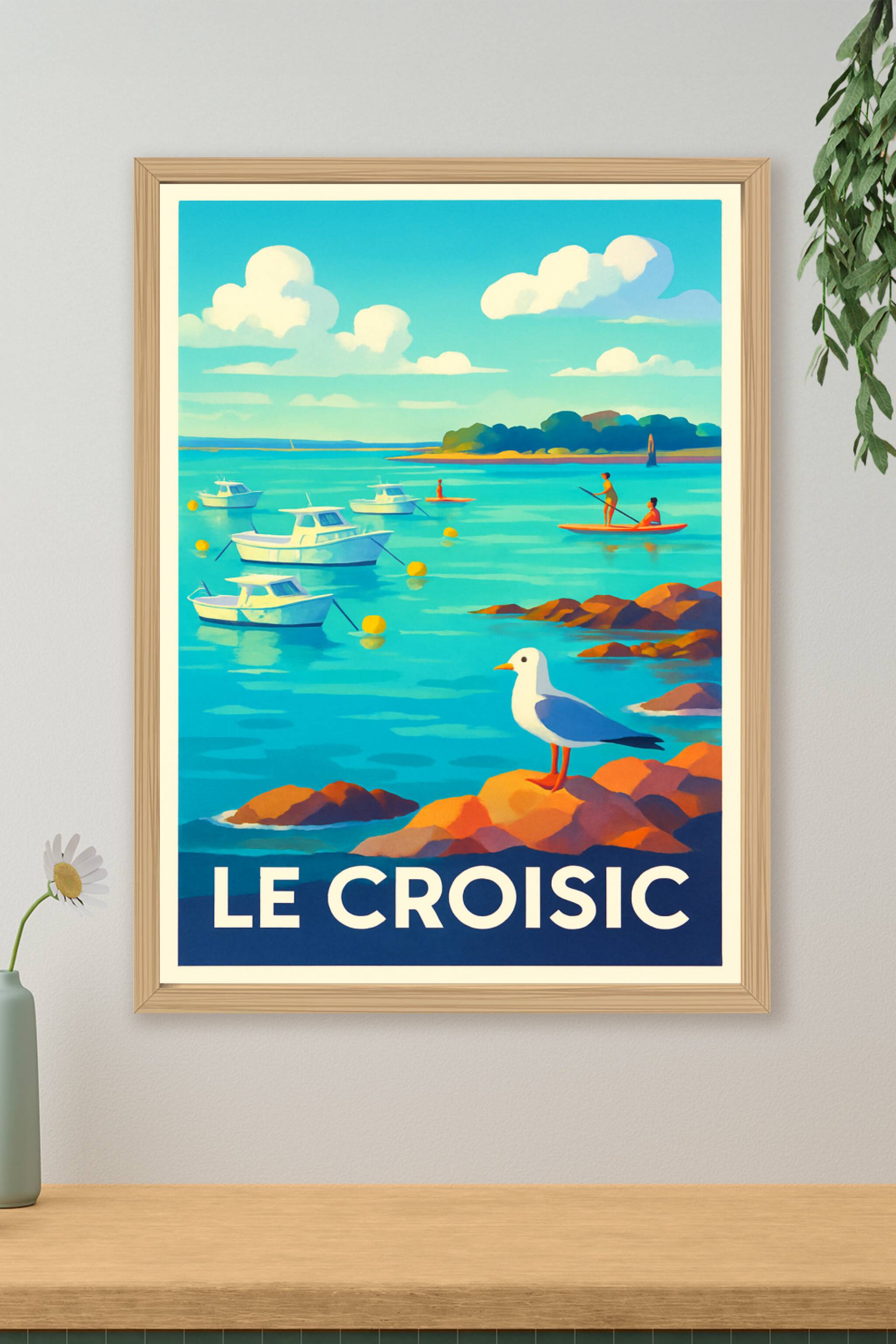 Découvrez le charme côtier du Croisic avec cette affiche au style peint rappelant la douceur de vivre en bord de mer. Ce poster illustre une scène ...