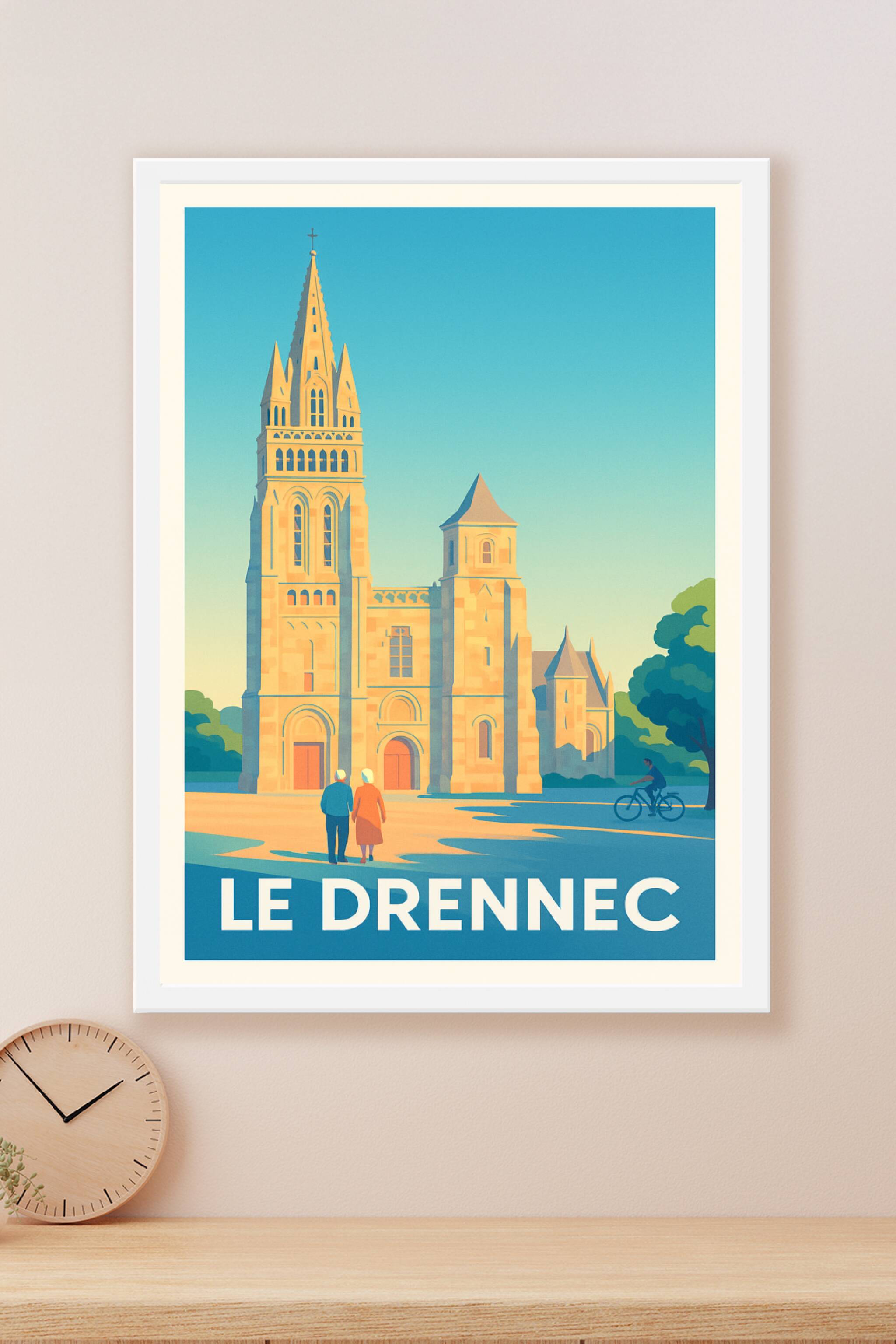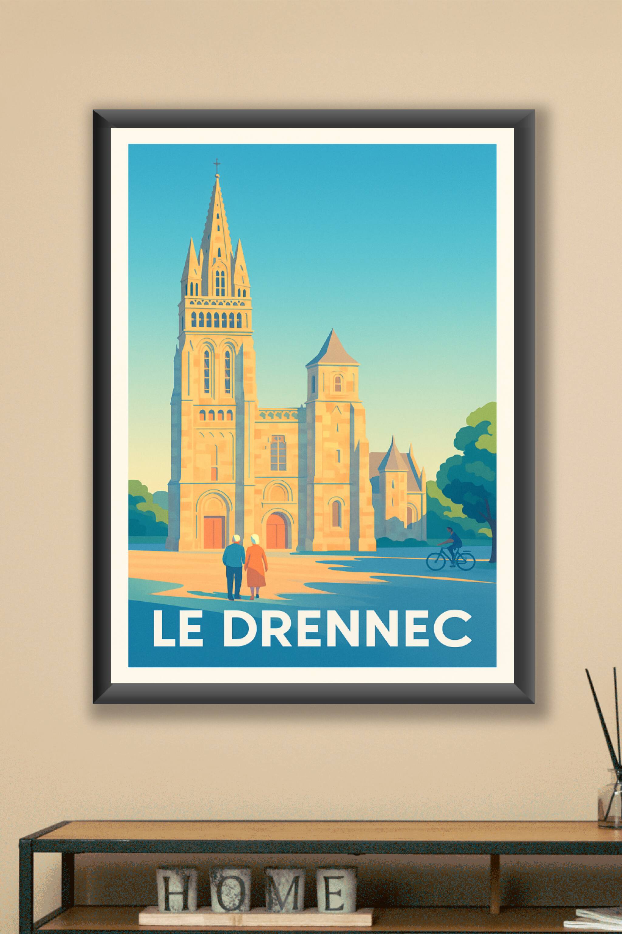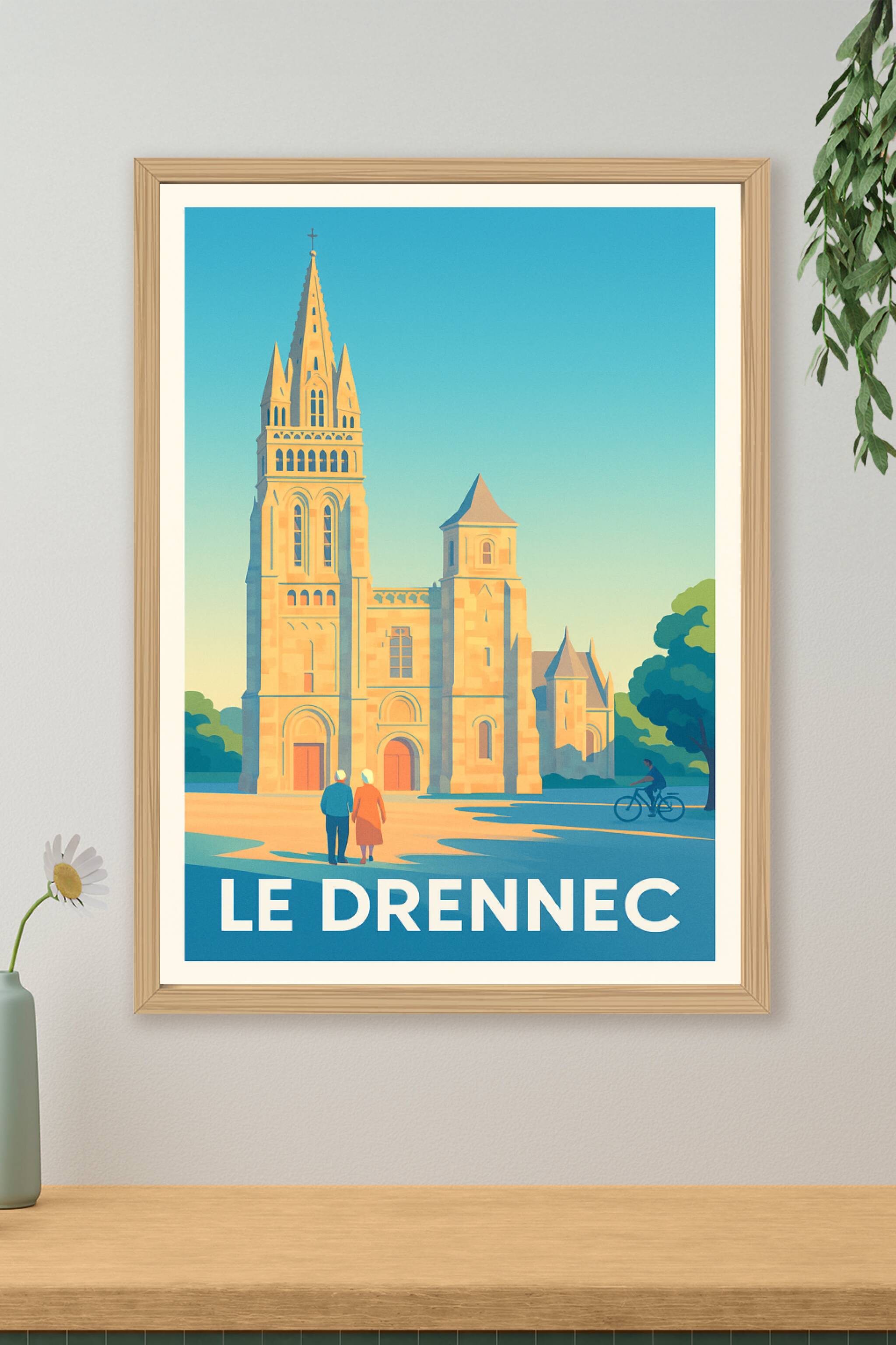 Découvrez le charme intemporel de Le Drennec à travers cette affiche aux couleurs chaudes et apaisantes illustrant son architecture typique et son ...