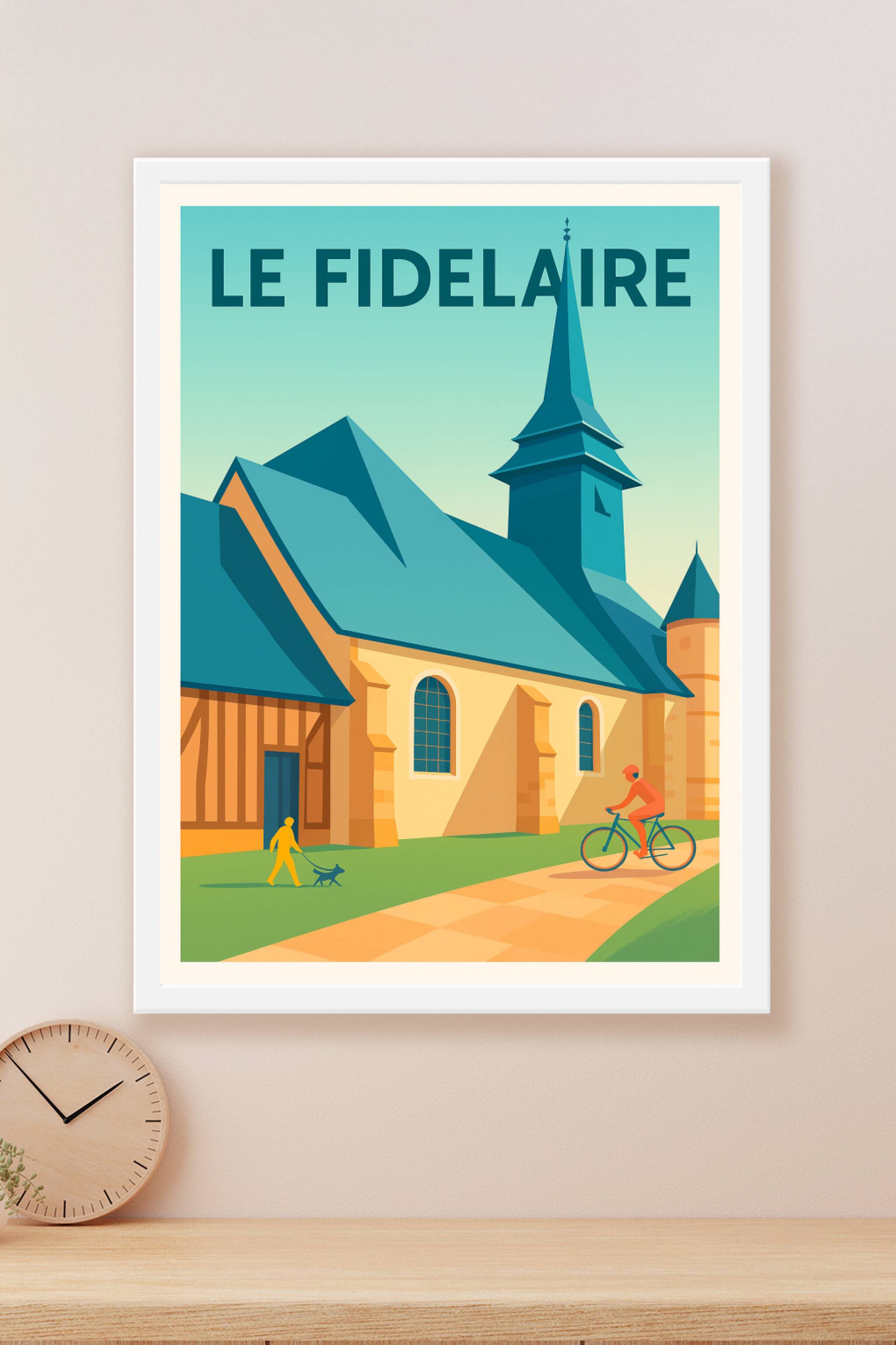 Découvrez l'atmosphère paisible et authentique du Fidelaire à travers cette affiche illustrée mettant en valeur son architecture typique et ses esp...