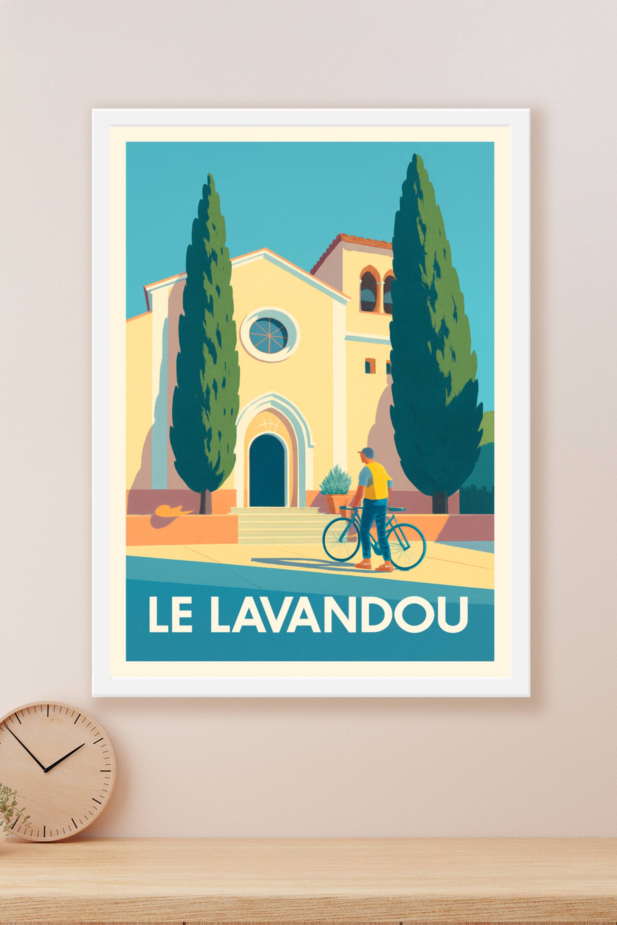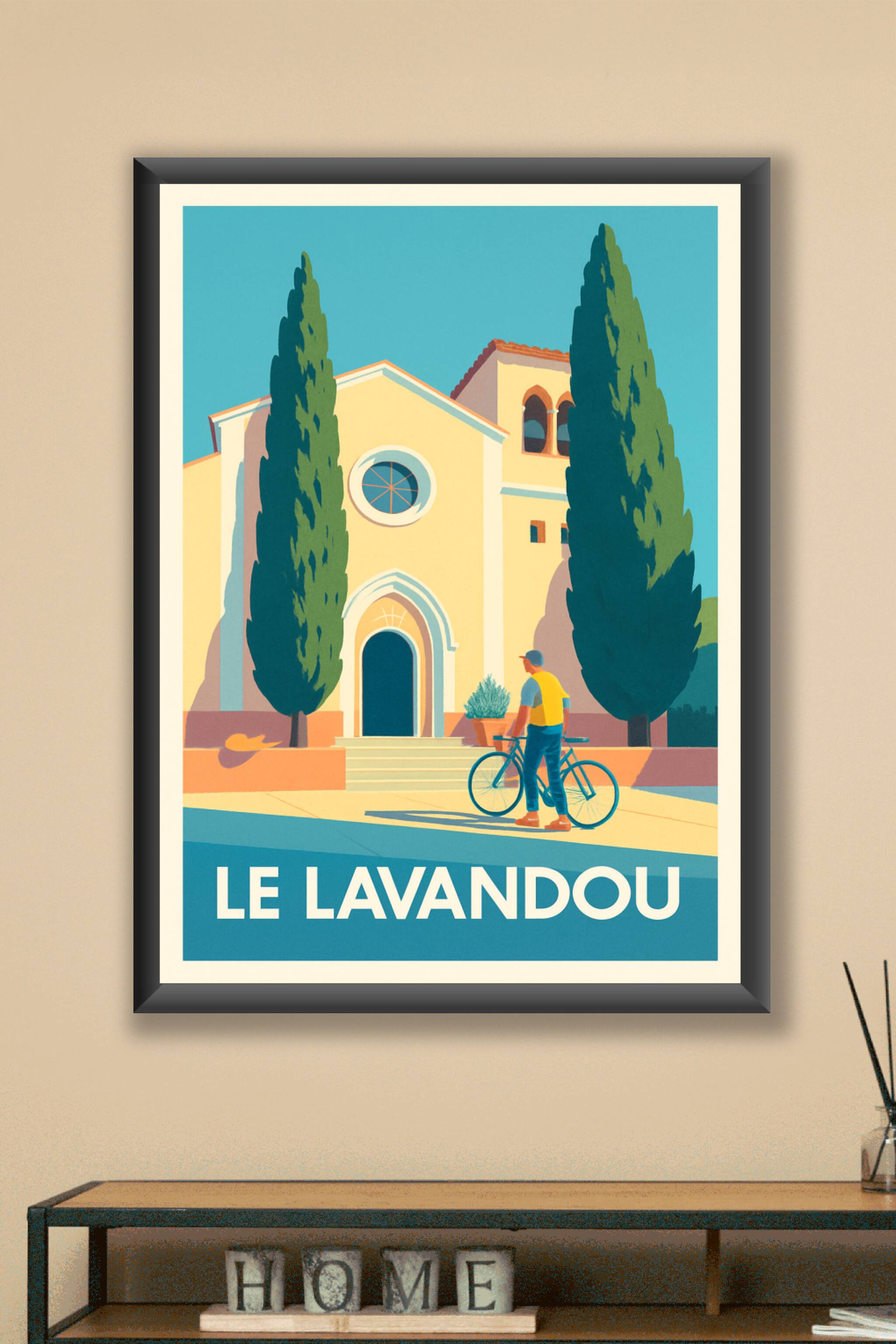Découvrez l'atmosphère paisible et ensoleillée du Lavandou à travers cette affiche illustrée au style vintage, mettant en scène une scène typique de la côte méditerranéenne avec ses cyprès emblématiques et une architecture chaleureuse. Ce poster est un hommage à la douceur de vivre de la Provence maritime, parfait pour évoquer vos souvenirs de vacances ou embellir votre intérieur.L'affiche est imprimée en tirage "Fine Art" sur papier coton 305g, garantissant une qualité d'impression exceptionnelle et une tenue durable des couleurs. Disponible en plusieurs formats du A4 au A1, avec ou sans cadre, elle s'adapte à tous les espaces et styles de décoration. Profitez d'un produit premium 100% fabriqué en France pour offrir ou collectionner un souvenir élégant et raffiné du Lavandou.
