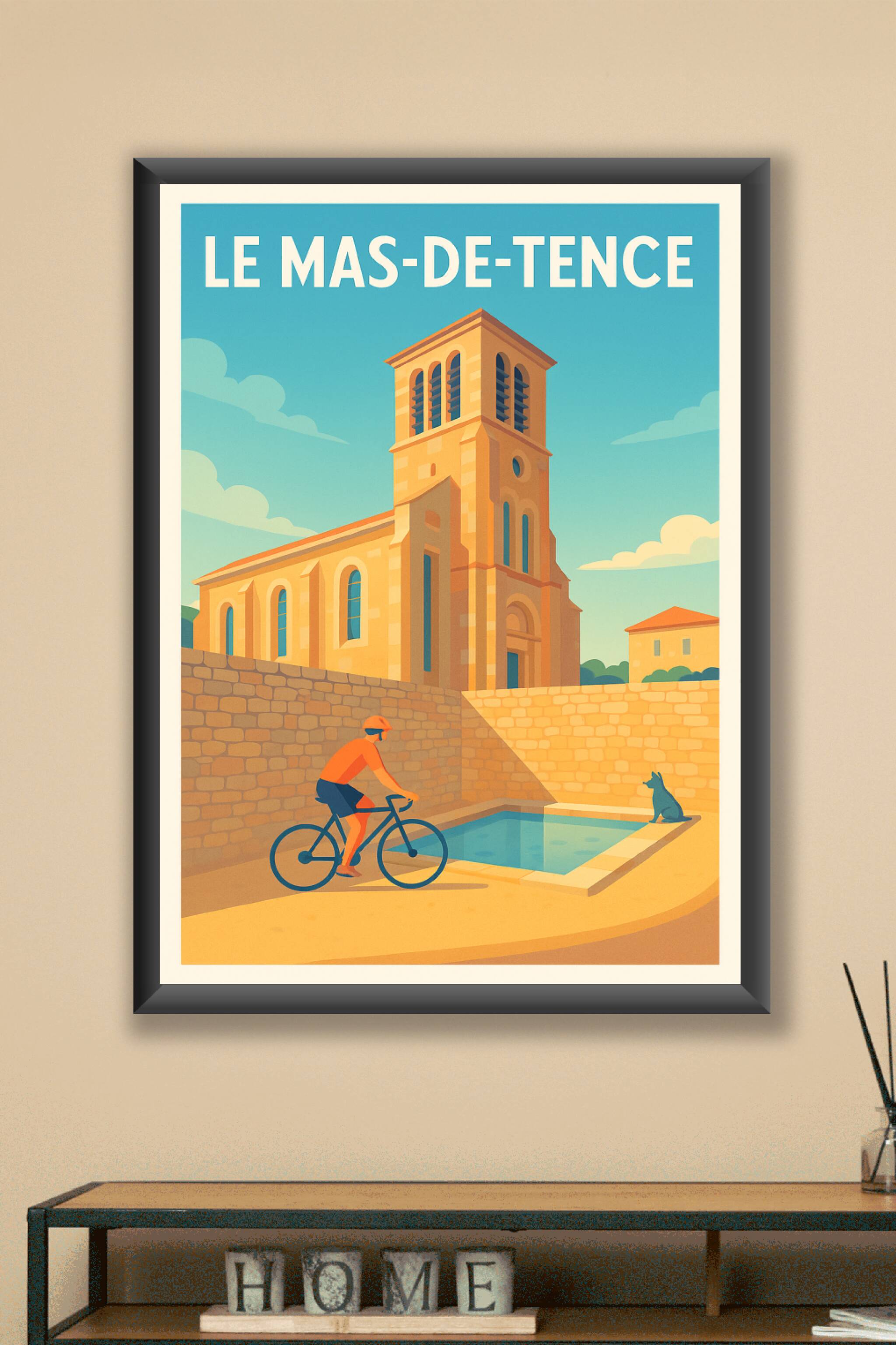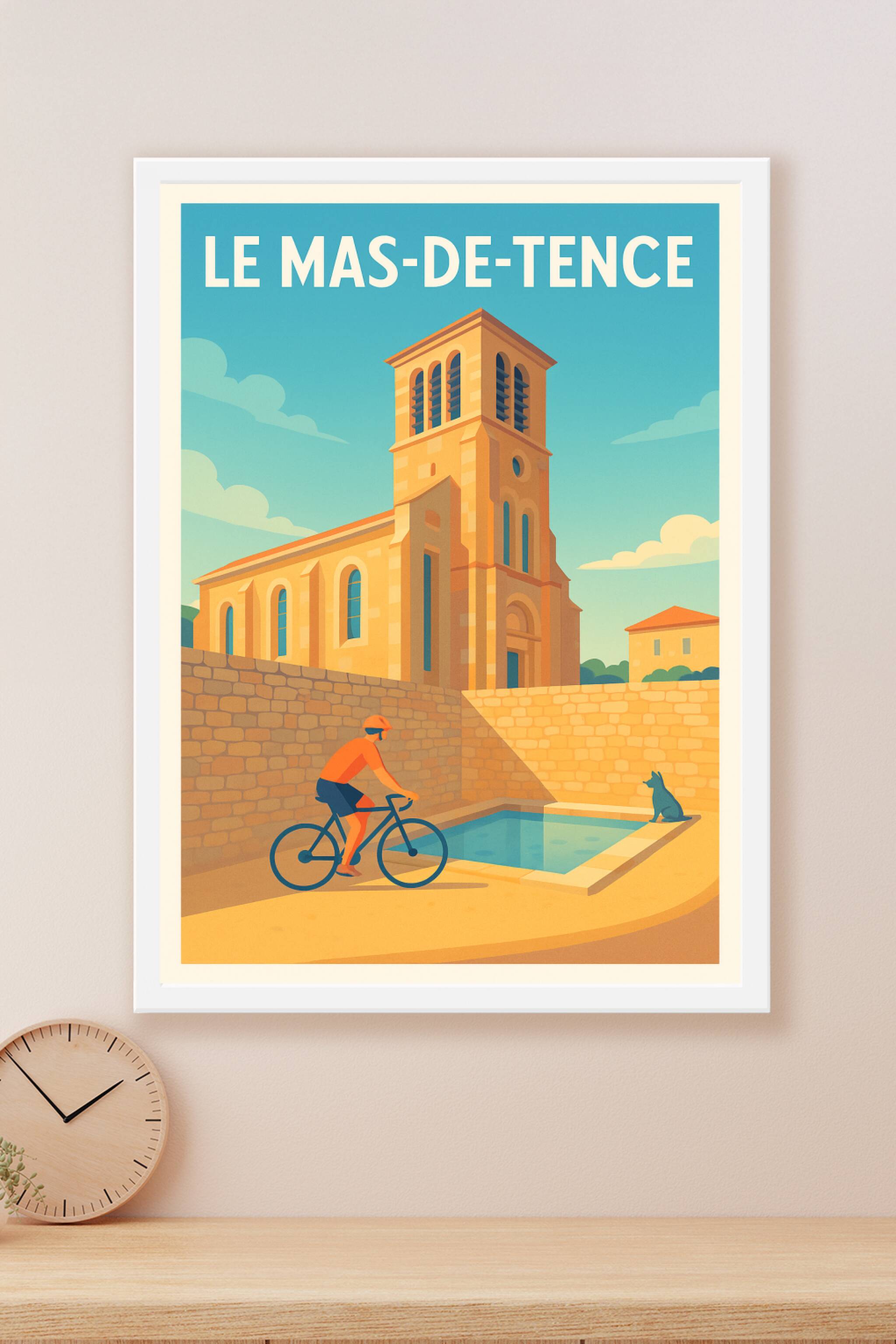 Découvrez l'atmosphère paisible et lumineuse du Mas-de-Tence avec cette affiche illustrée mettant en valeur son architecture typique et les scènes de vie locale. Le poster capture un instant doux, où un cycliste profite du cadre chaleureux au pied de la belle bâtisse en pierres jaunes. Imprimée en tirage "Fine Art" sur un papier 305g coton de grande qualité, cette affiche vous offre des couleurs riches et une finesse d'impression exceptionnelle. Disponible du format A1 à A4, avec ou sans cadre, ce poster est parfait pour apporter une touche authentique et accueillante à votre décoration intérieure ou comme cadeau aux amateurs de la région. Profitez d'une fabrication 100% française pour embellir votre espace avec une impression durable et élégante.