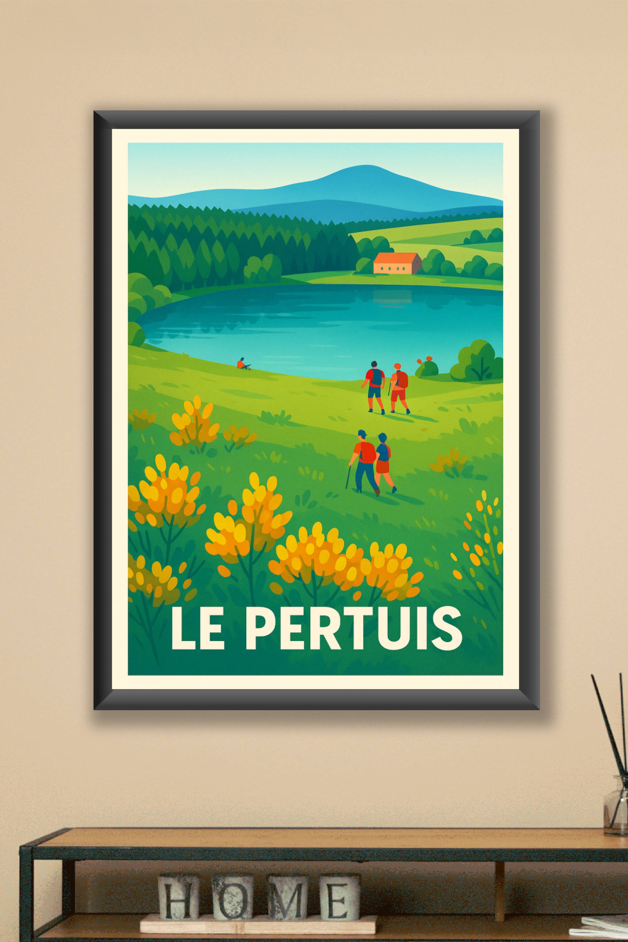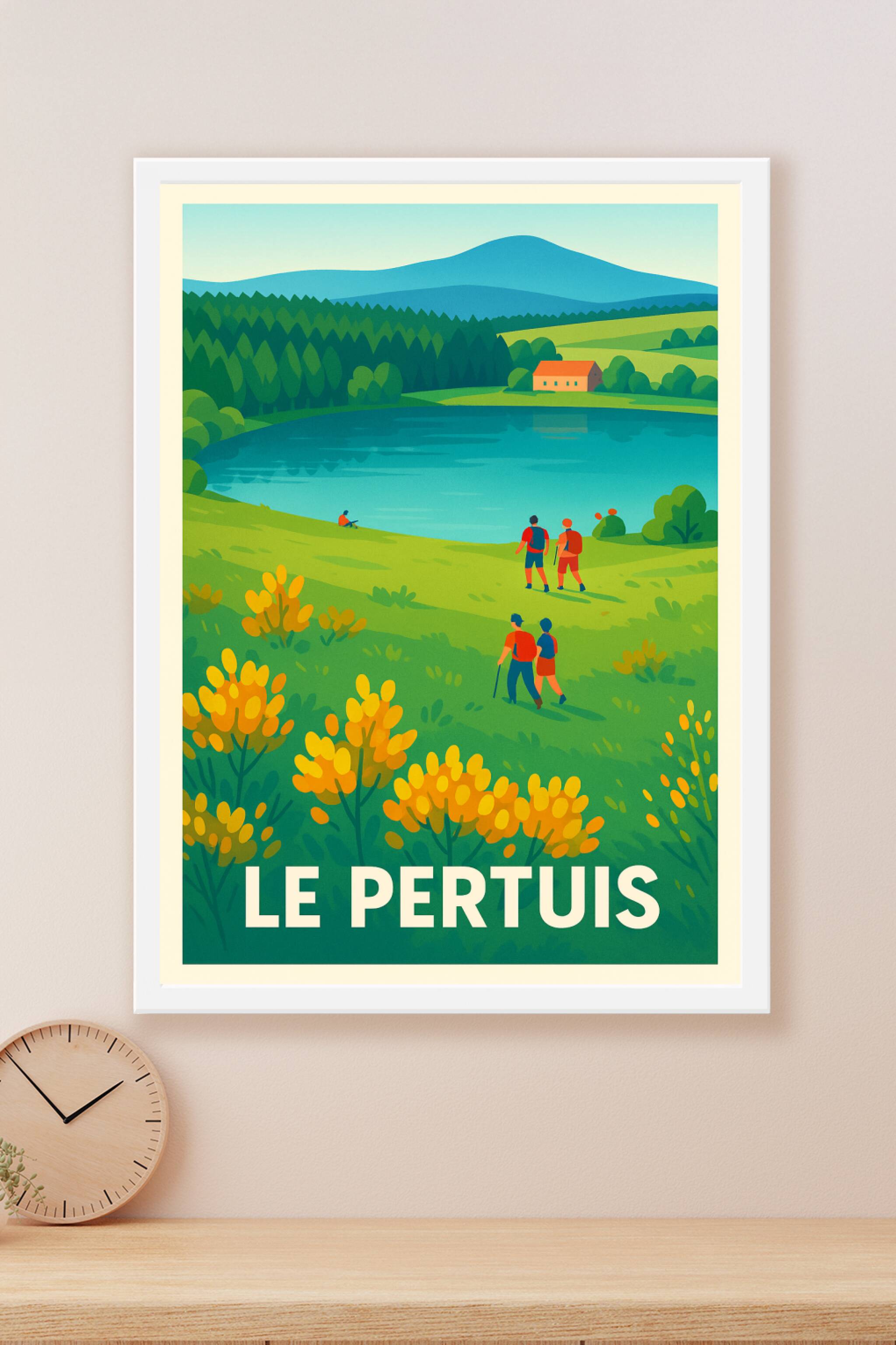 Découvrez la sérénité des paysages verts et vallonnés du Pertuis à travers cette affiche stylisée, parfaite pour les amateurs de nature et de balad...