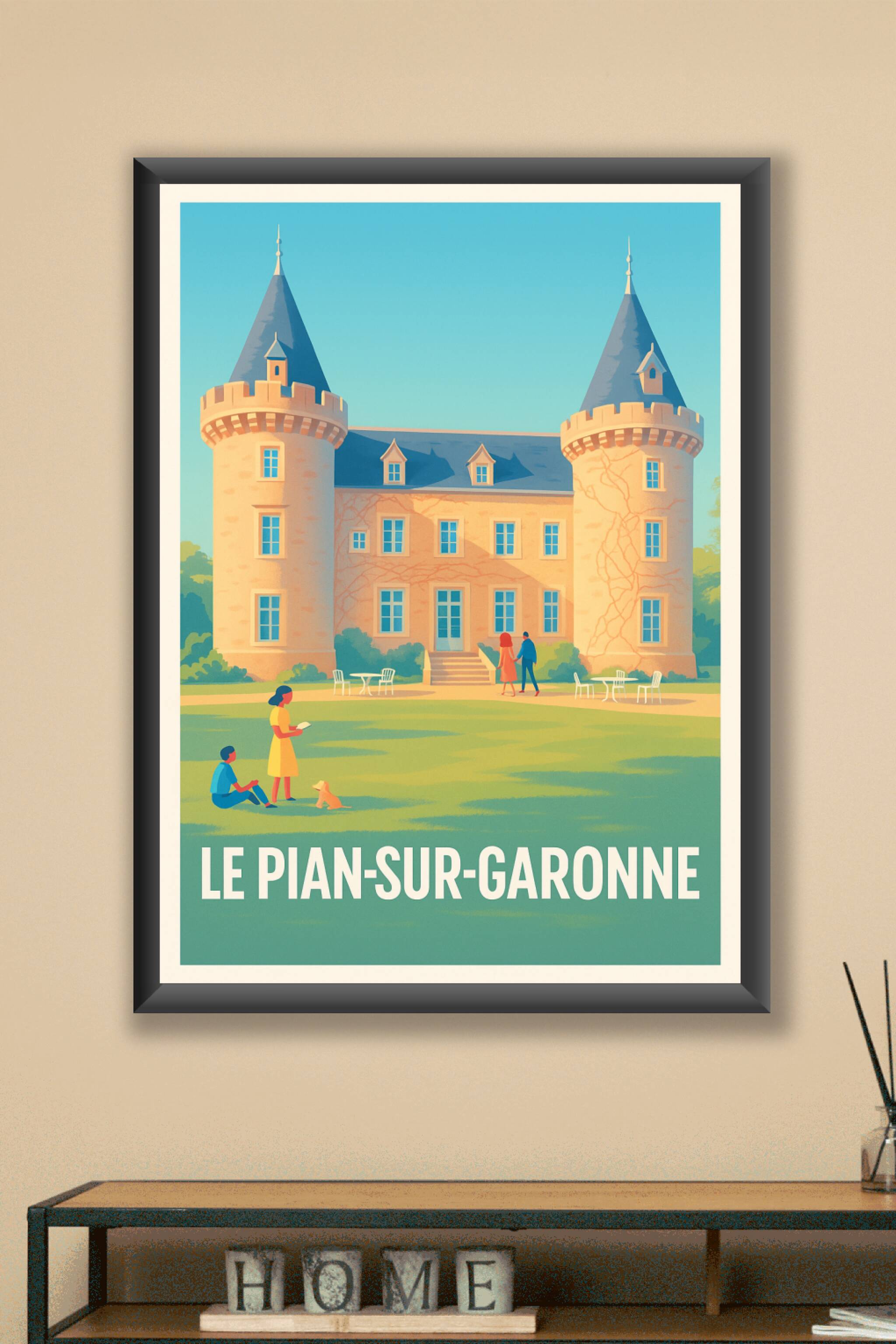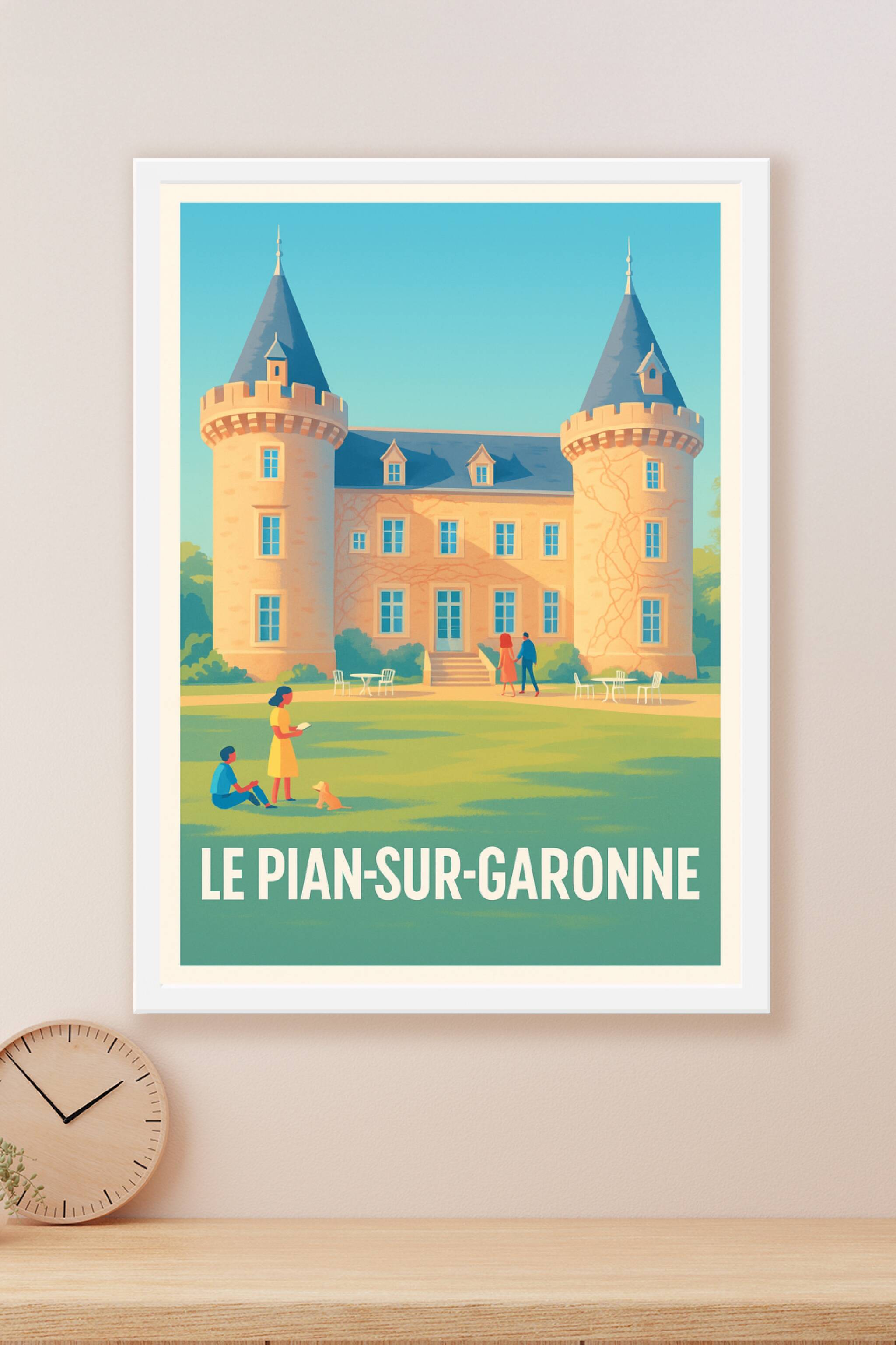 Découvrez toute la douceur de vivre du Pian-sur-Garonne avec cette affiche illustrée mettant en lumière son architecture emblématique, un château d...