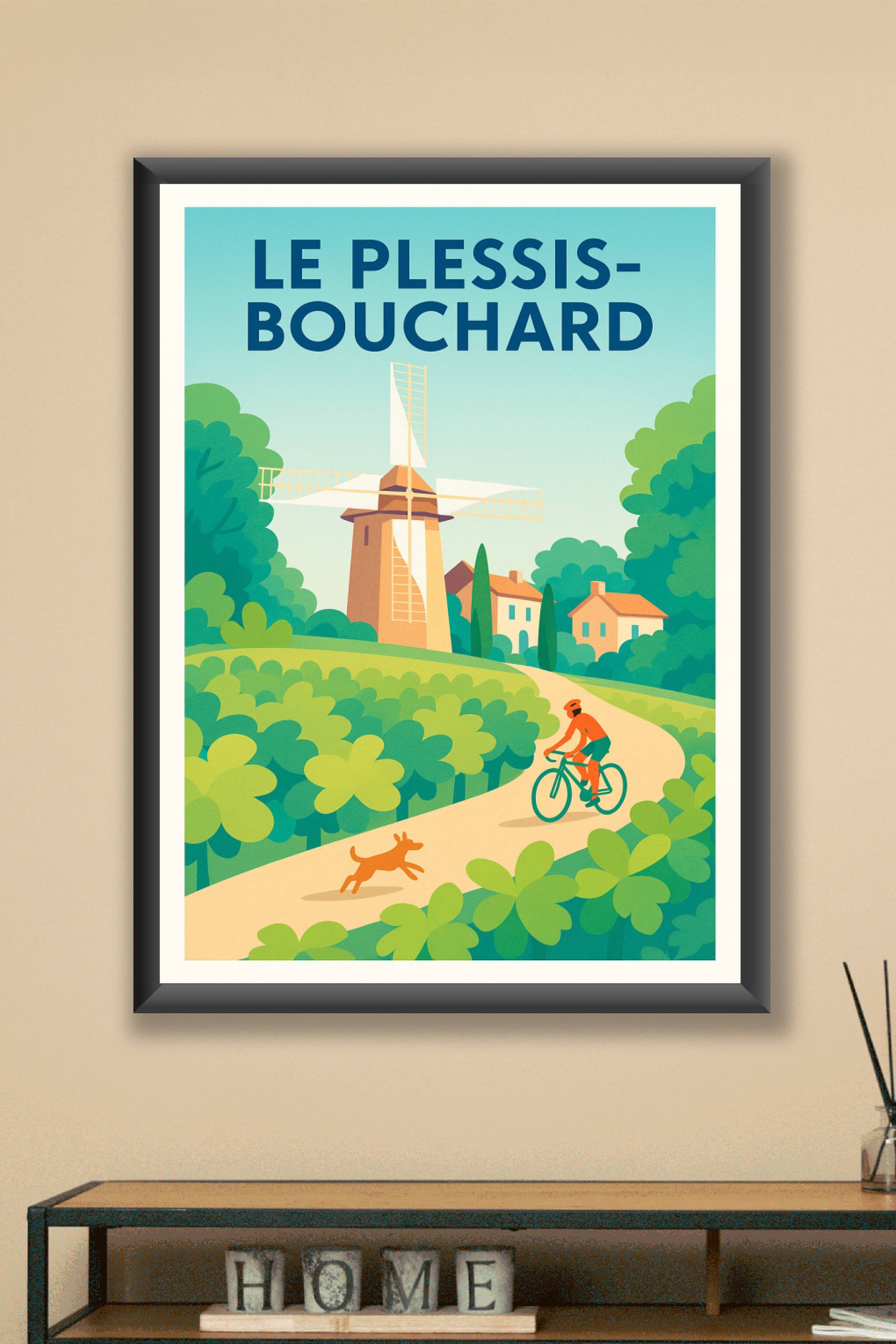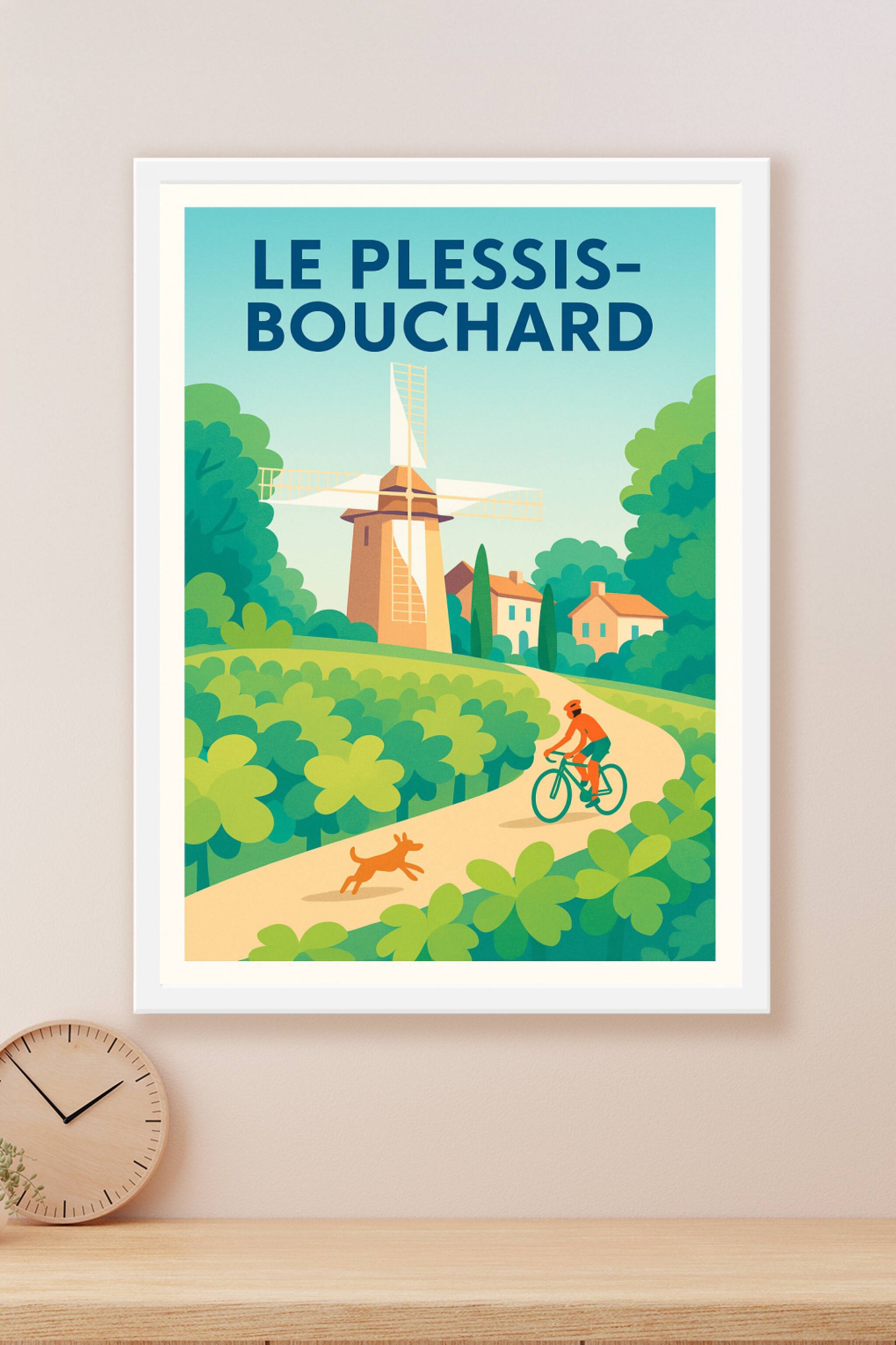 Découvrez la douceur de vivre à Le Plessis-Bouchard avec cette affiche au style vintage mettant en scène un cycliste et un chien sur un chemin bordé de nature luxuriante, dominé par un moulin emblématique. Ce poster apporte une atmosphère paisible et bucolique à votre décoration intérieure.Cette affiche est imprimée en tirage "Fine Art" sur papier 305g coton, garantissant une qualité d'impression exceptionnelle et des couleurs éclatantes. Disponible en formats A1 à A4, avec ou sans cadre, elle s'adapte parfaitement à tous les espaces pour sublimer votre intérieur ou offrir un cadeau original et raffiné. Profitez d'un poster fabriqué en France avec un souci du détail pour une décoration durable et élégante.