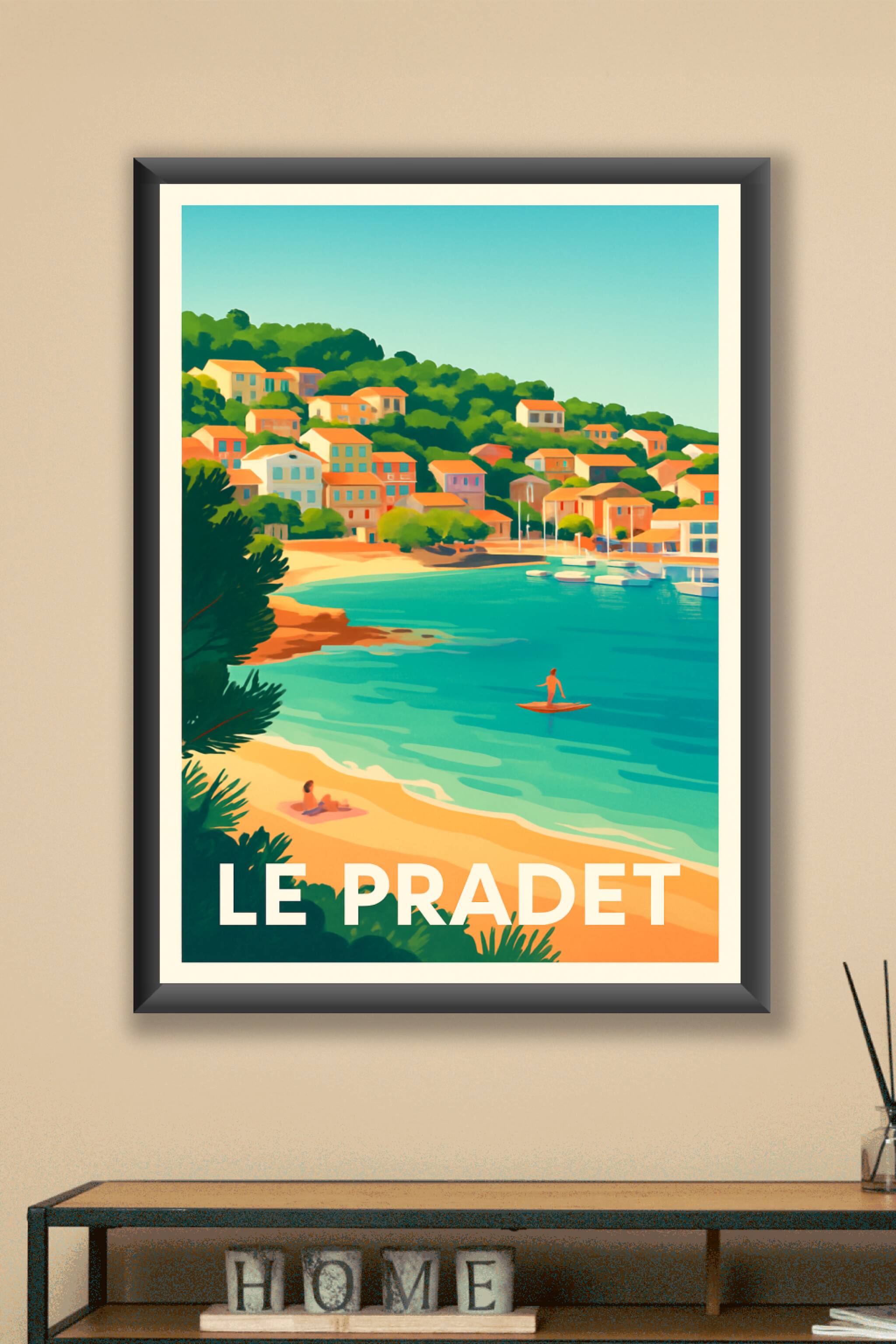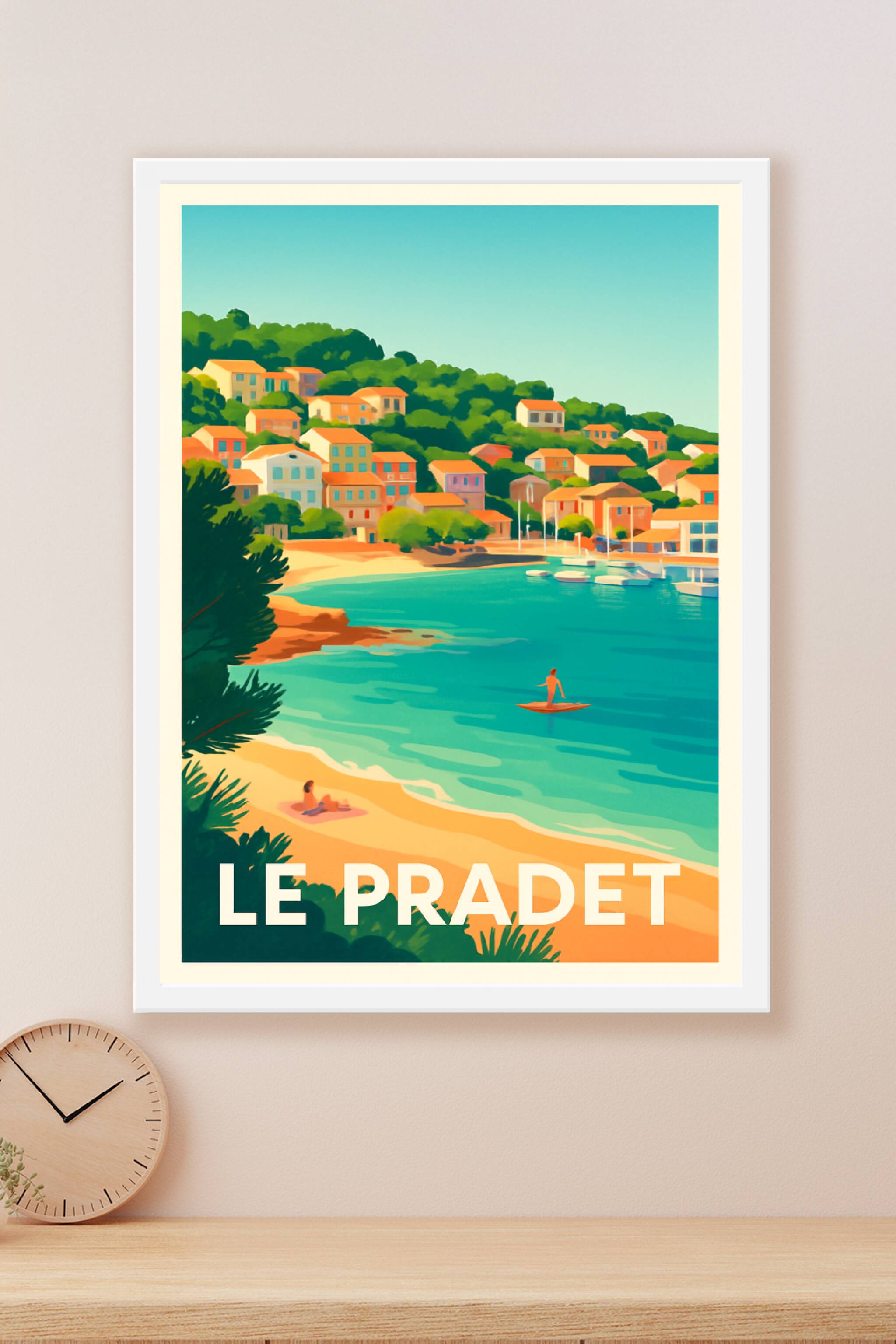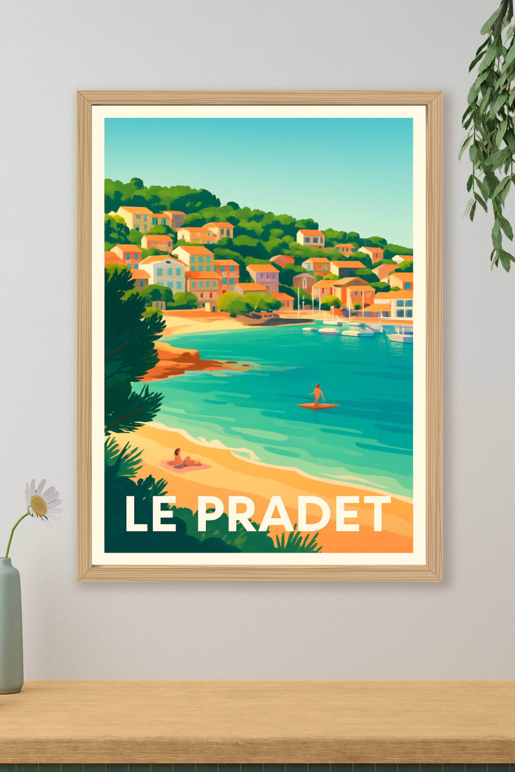 Découvrez la sérénité et les couleurs vibrantes de Lé Pradet avec cette affiche illustrée pleine de charme. Ce poster capture à merveille la douceu...
