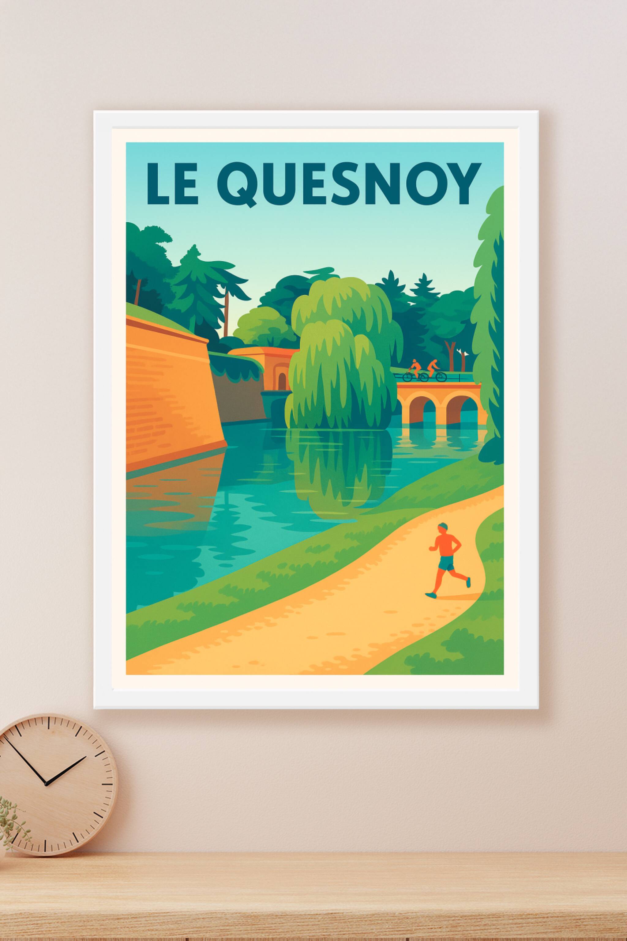 Découvrez la douceur de vivre à Le Quesnoy avec cette affiche évocatrice d’un paysage verdoyant et apaisant où se mêlent cours d'eau, ponts histori...