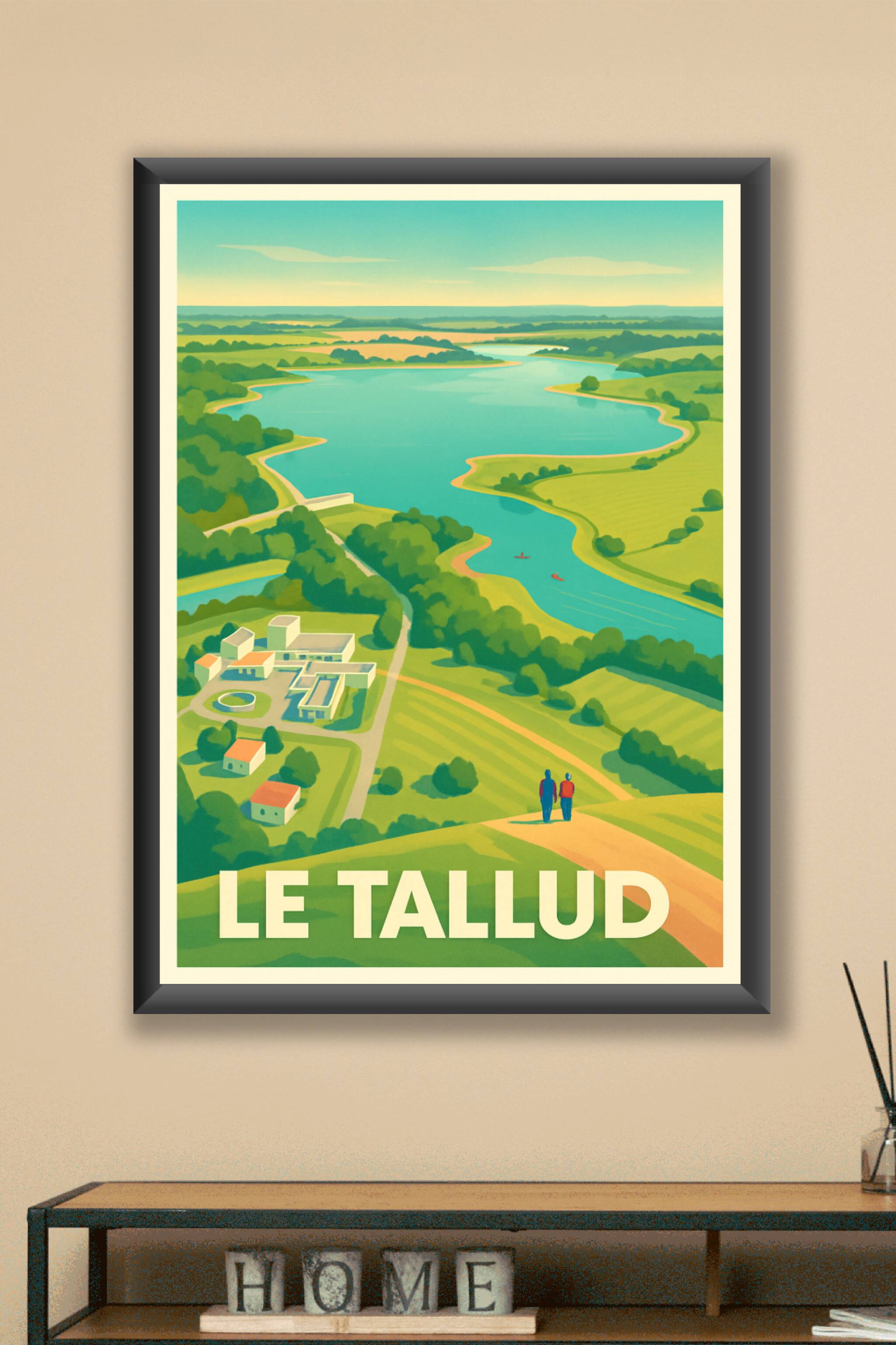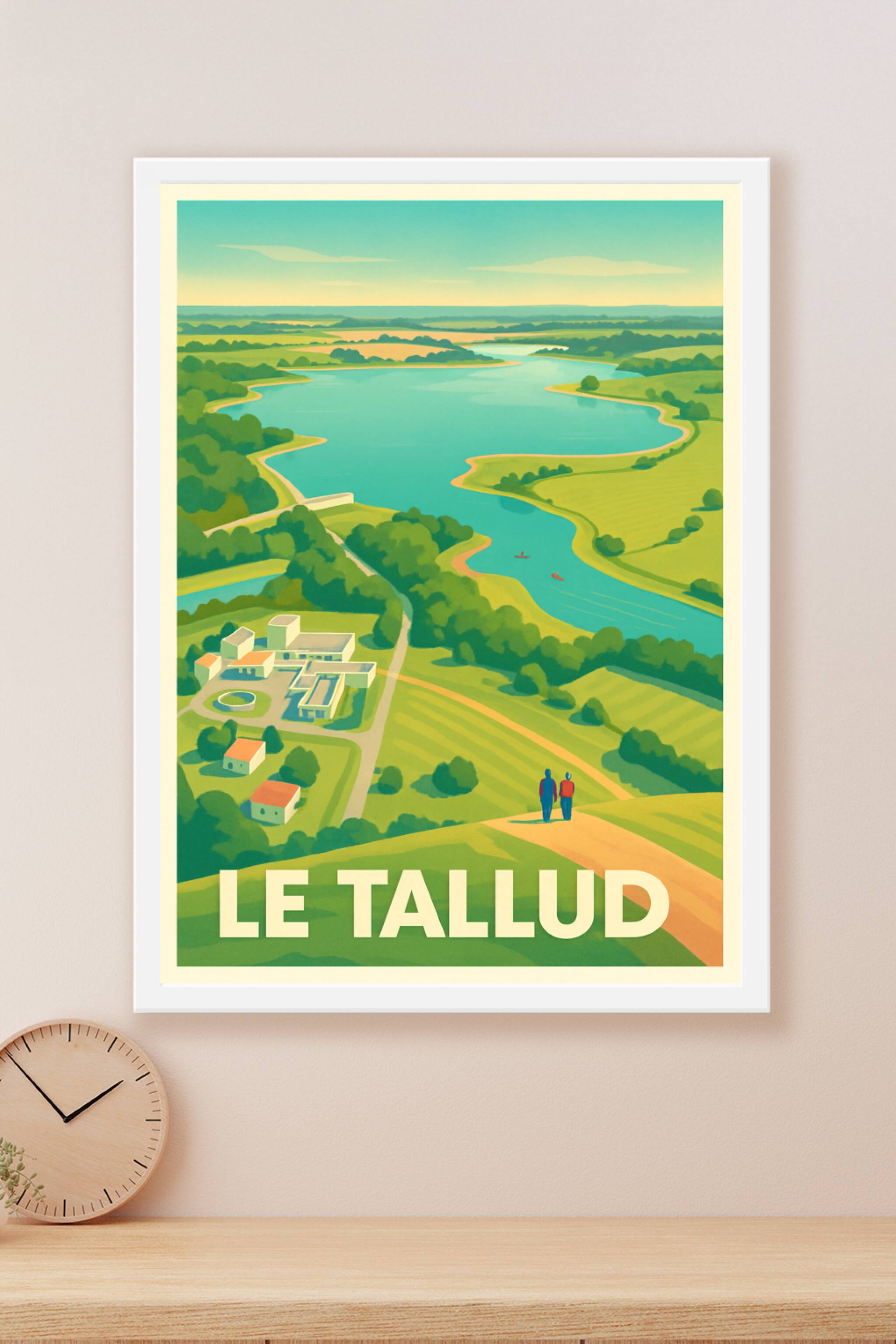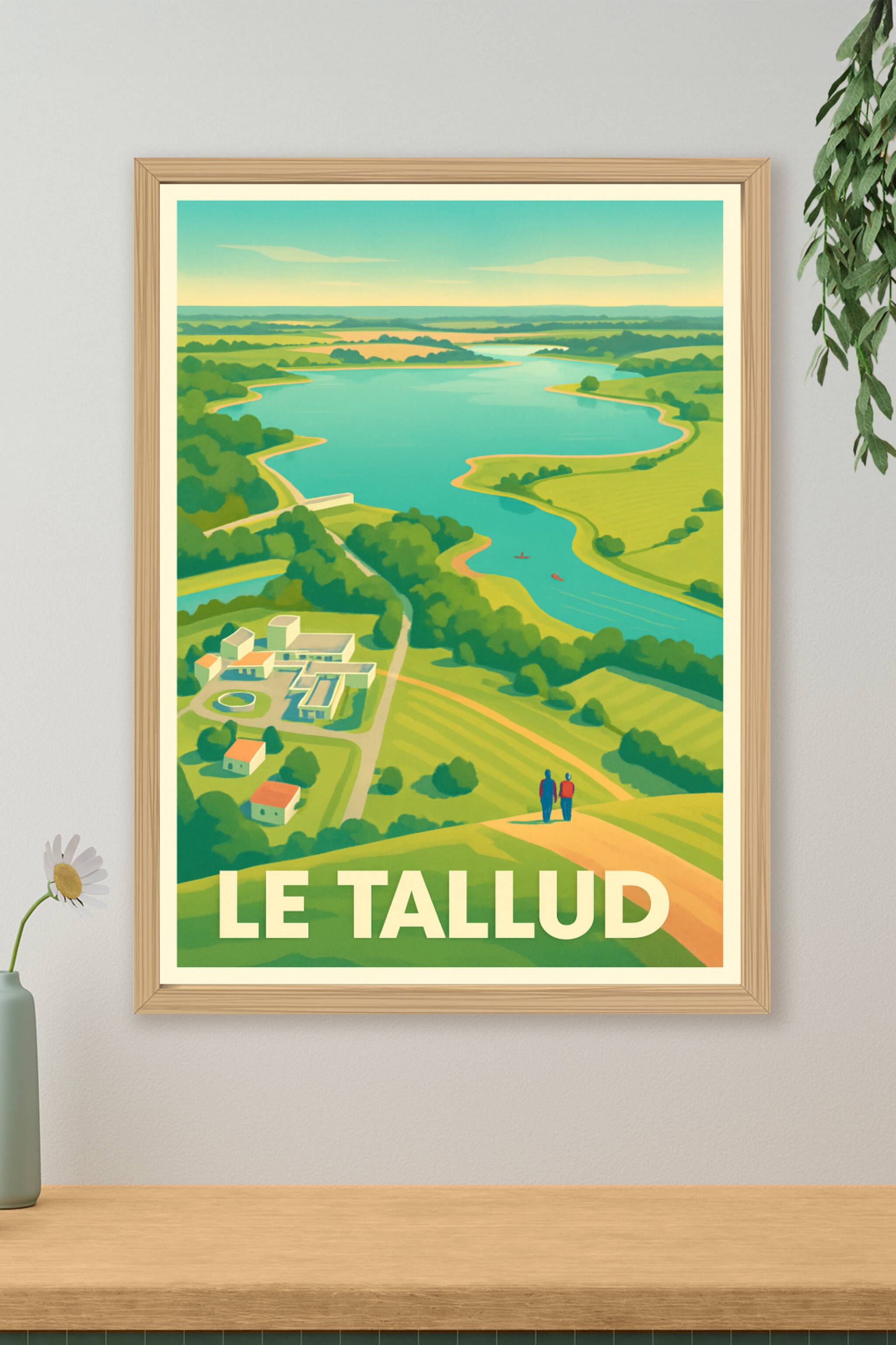 Découvrez la beauté paisible de Le Tallud avec cette affiche illustrant un paysage lumineux et verdoyant au bord de la rivière Sèvre. Ce poster évo...