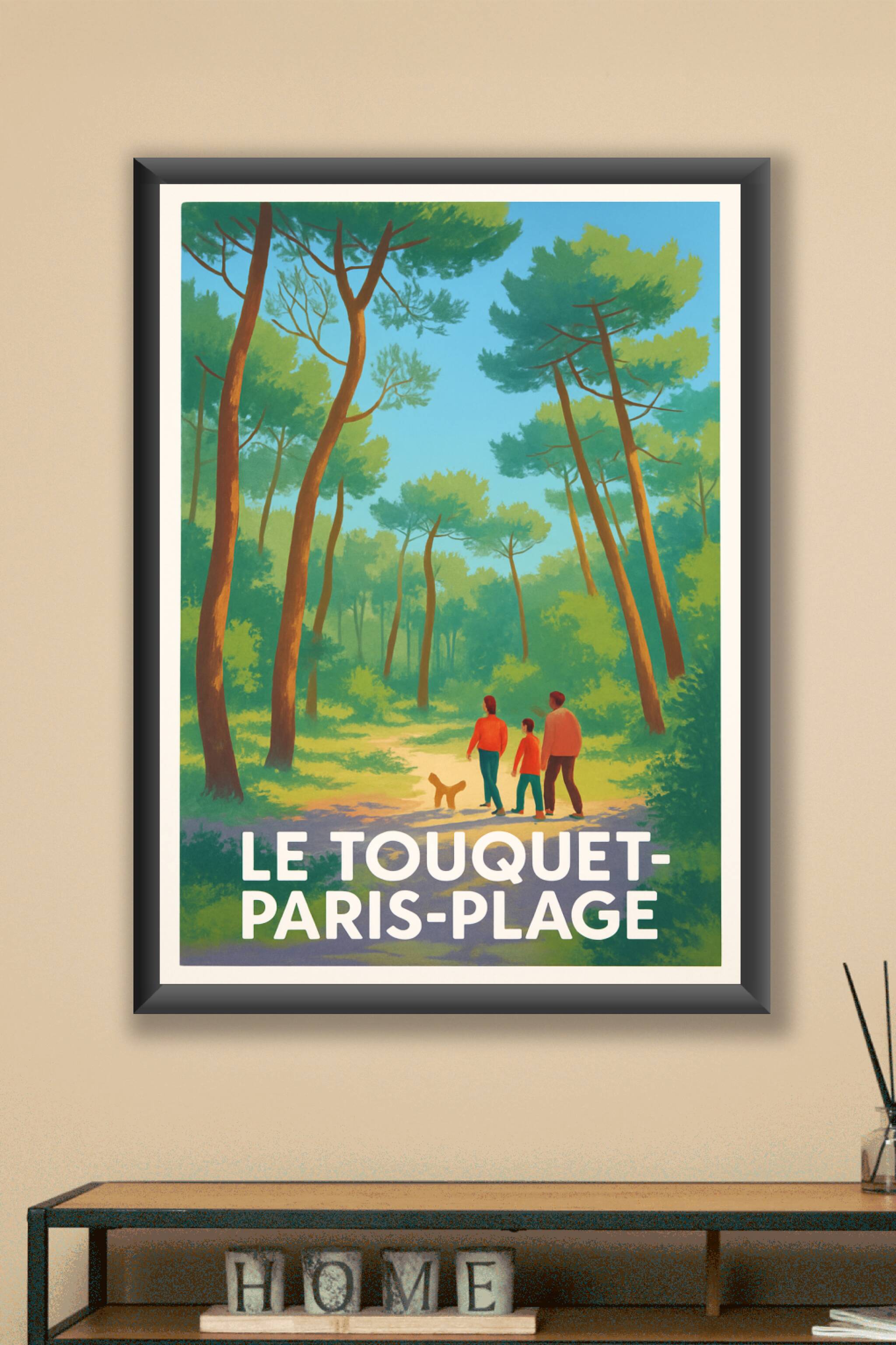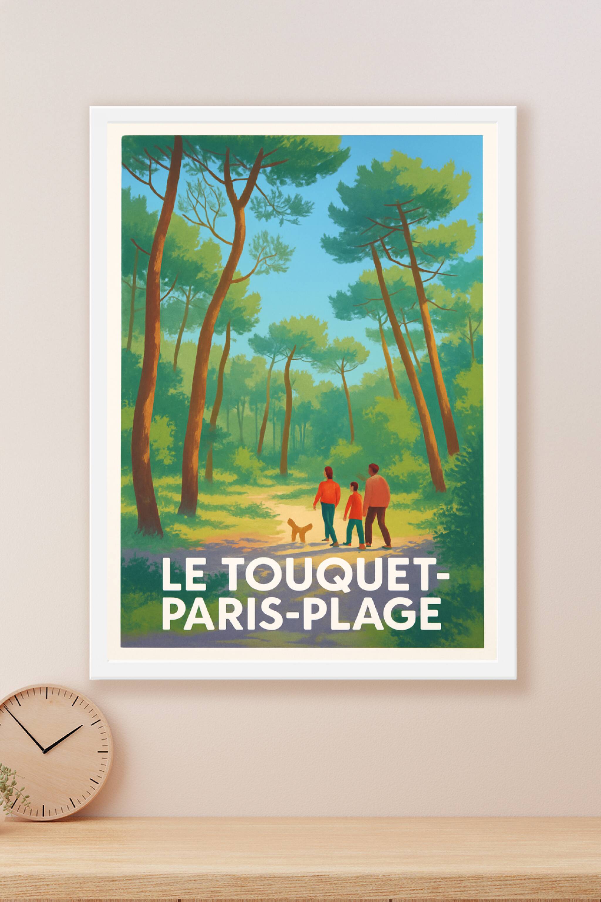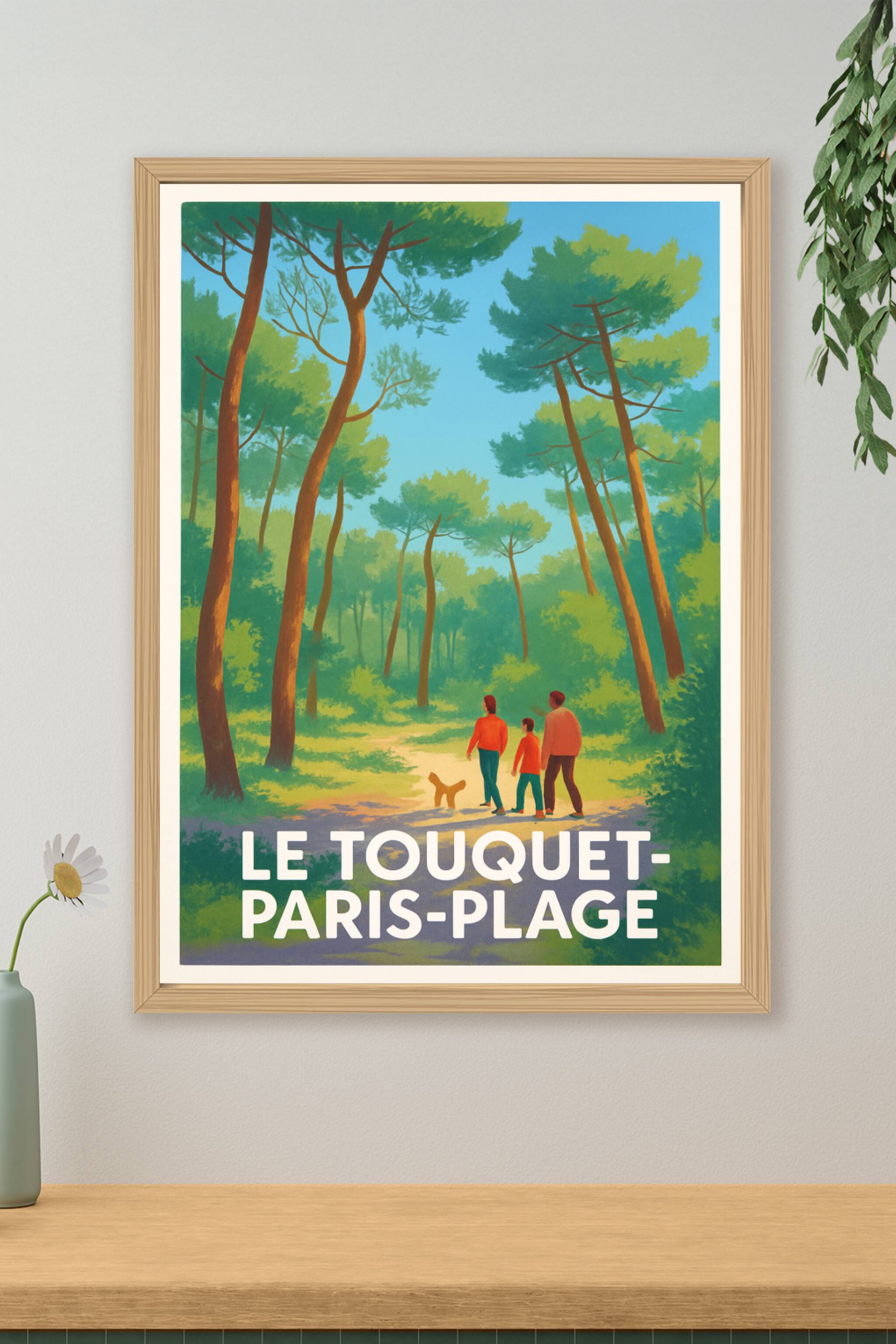 Évadez-vous avec cette affiche inspirante représentant une famille en balade dans les magnifiques forêts du Touquet-Paris-Plage. Ce poster capture ...
