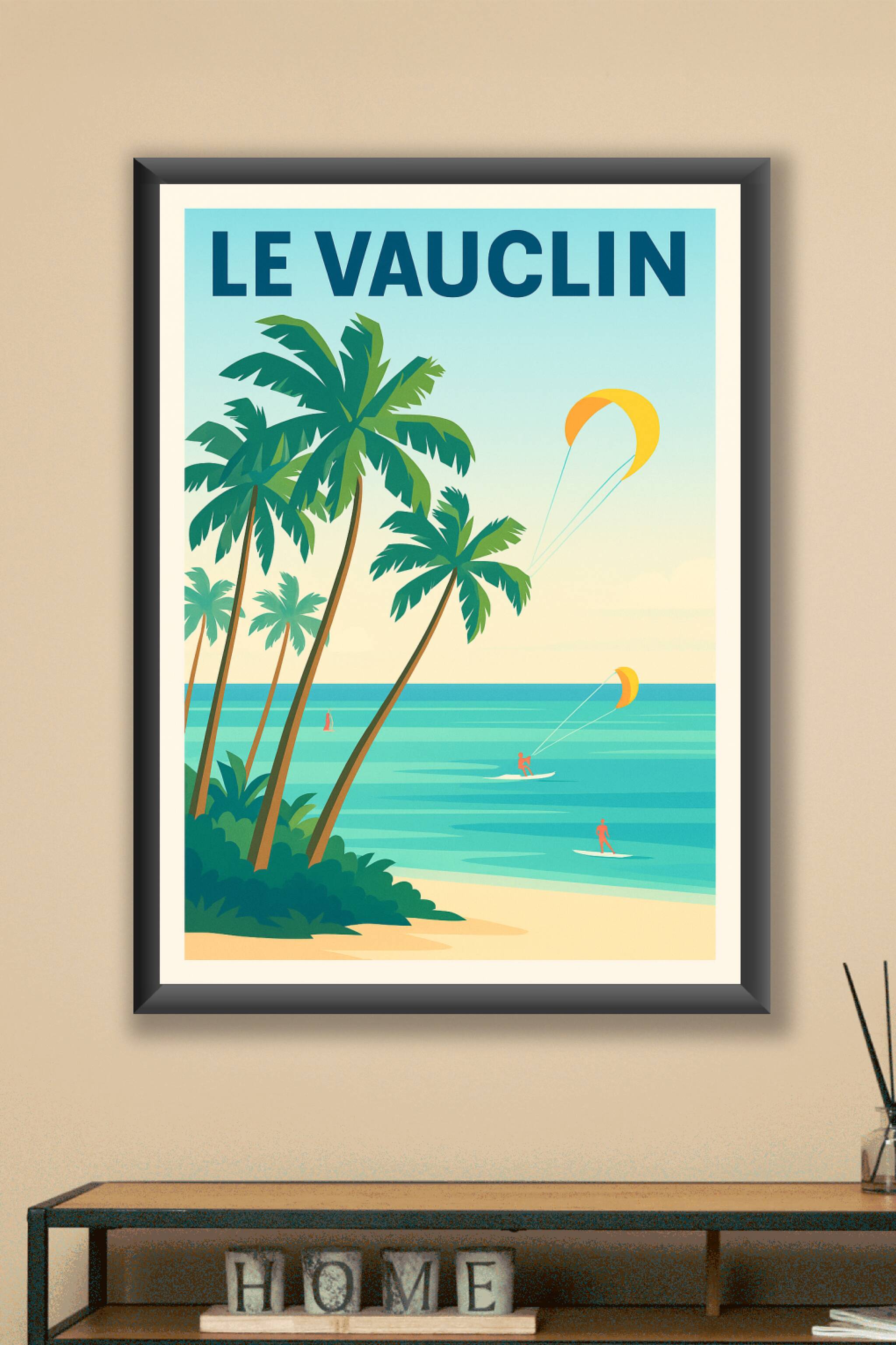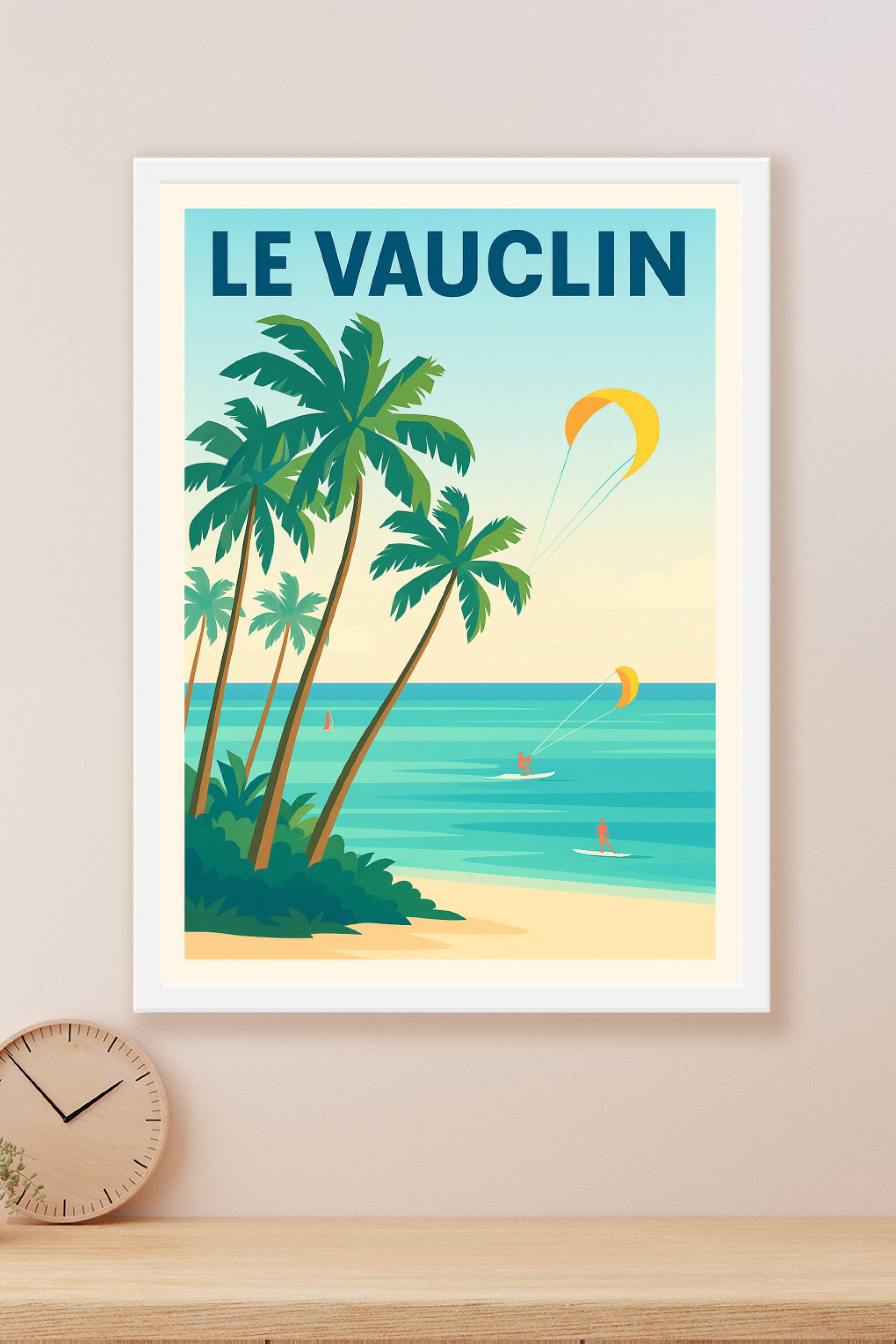 Découvrez l'affiche Le Vauclin qui capture l'essence même des lagons tropicaux et de la glisse dynamique sur les eaux turquoise. Ce poster illustré...