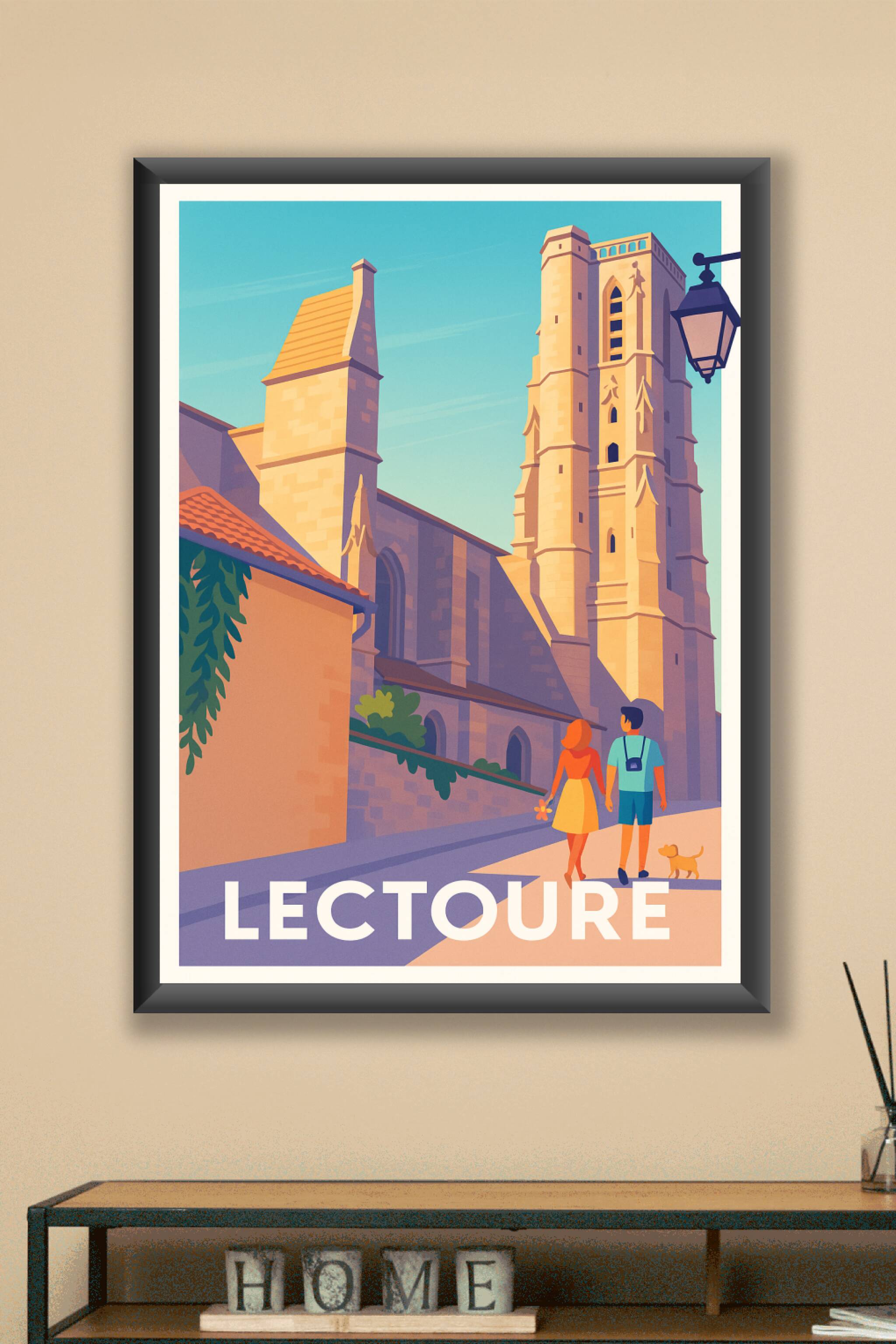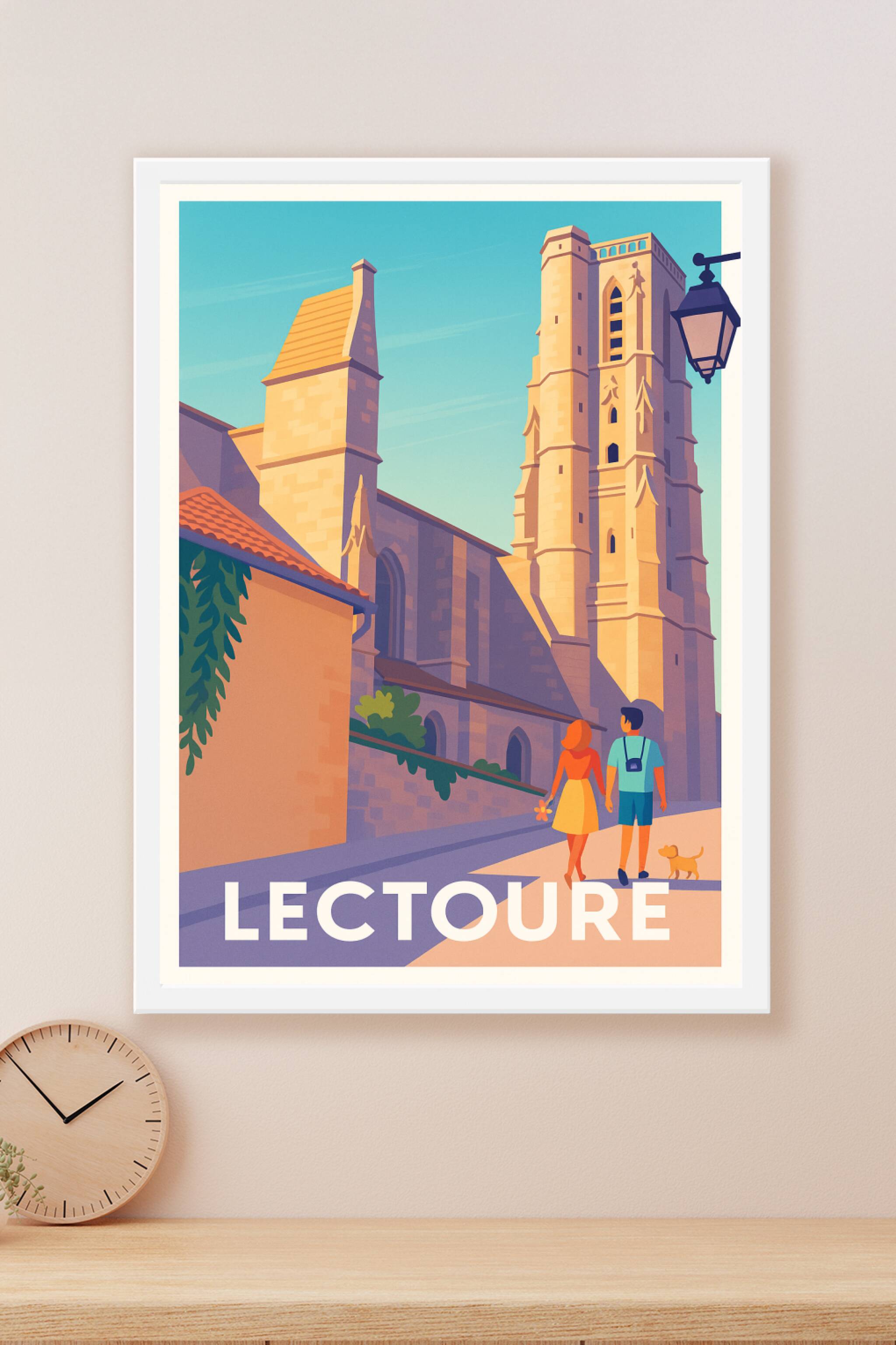 Découvrez la douceur de vivre de Lectoure à travers cette affiche illustrée mettant en scène une balade romantique devant les monuments emblématiques de cette charmante ville. Le style graphique lumineux et moderne capture l'atmosphère paisible sous un ciel d'azur. Ce poster est imprimé en tirage "Fine Art" sur papier coton 305g, garantissant une qualité d'impression exceptionnelle et une longévité optimale. Disponible en formats A1 à A4, avec ou sans cadre, cette affiche s'intègre parfaitement dans votre intérieur pour apporter une touche d'élégance et de convivialité. Fabriquée en France, elle constitue un cadeau idéal pour les passionnés de patrimoine et d'art urbain.