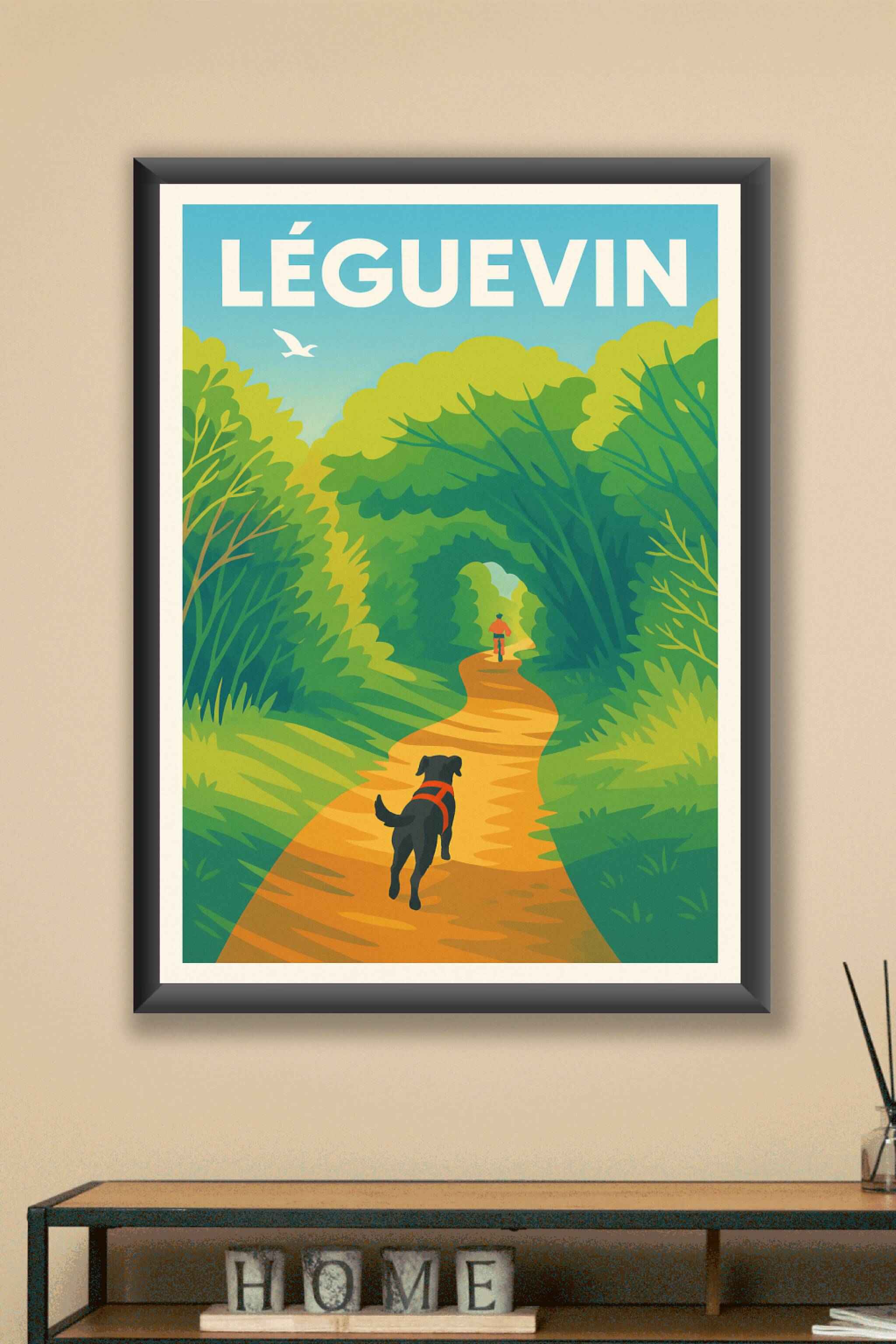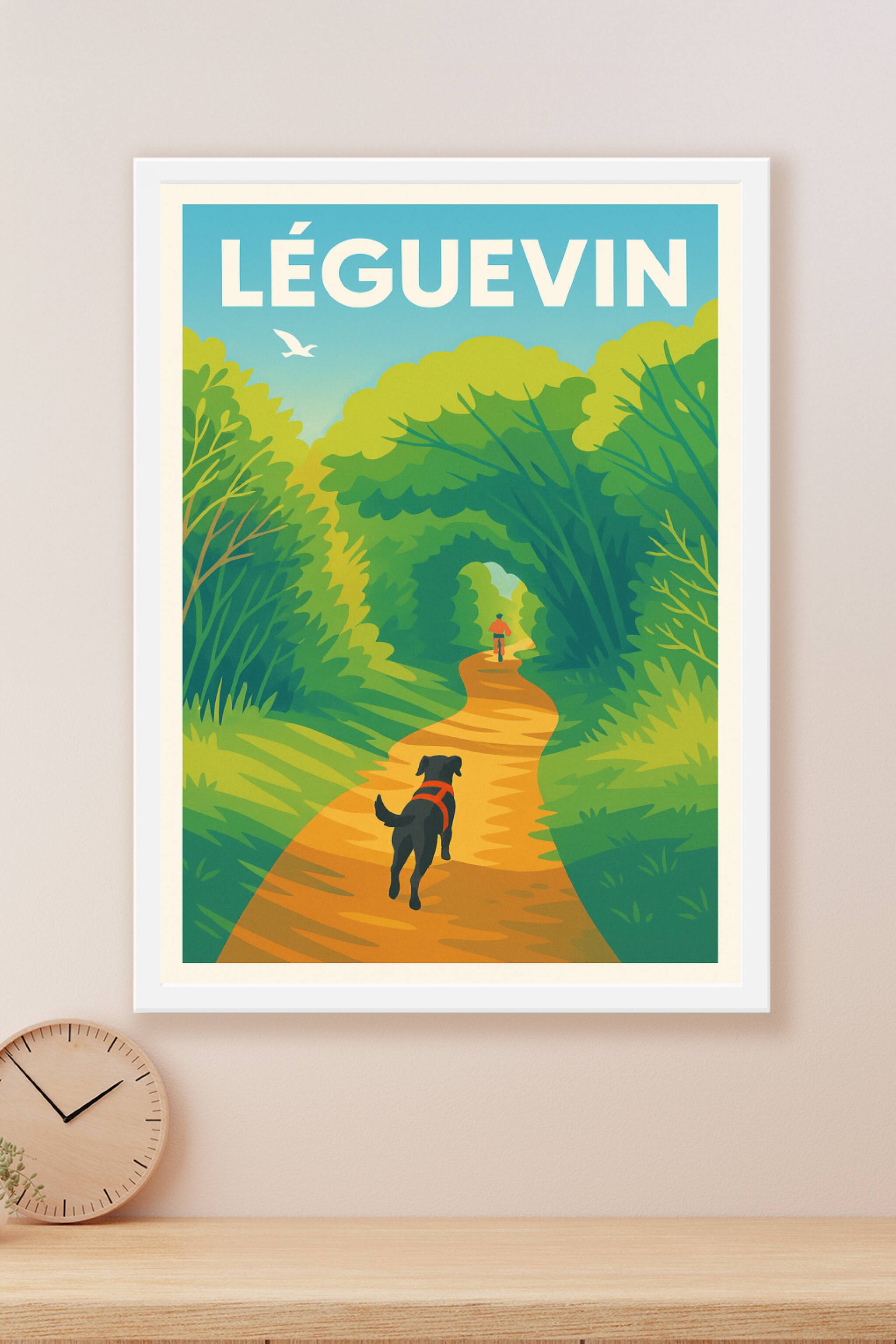 Apportez une touche de sérénité et d'aventure à votre intérieur avec ce poster illustrant une balade en forêt à Léguevin. On y découvre un sentier ...