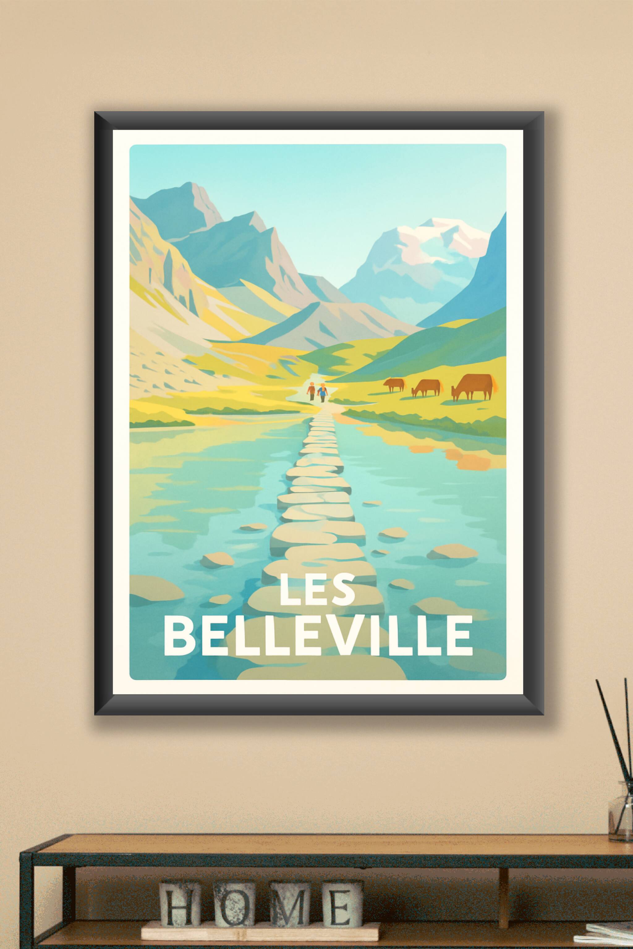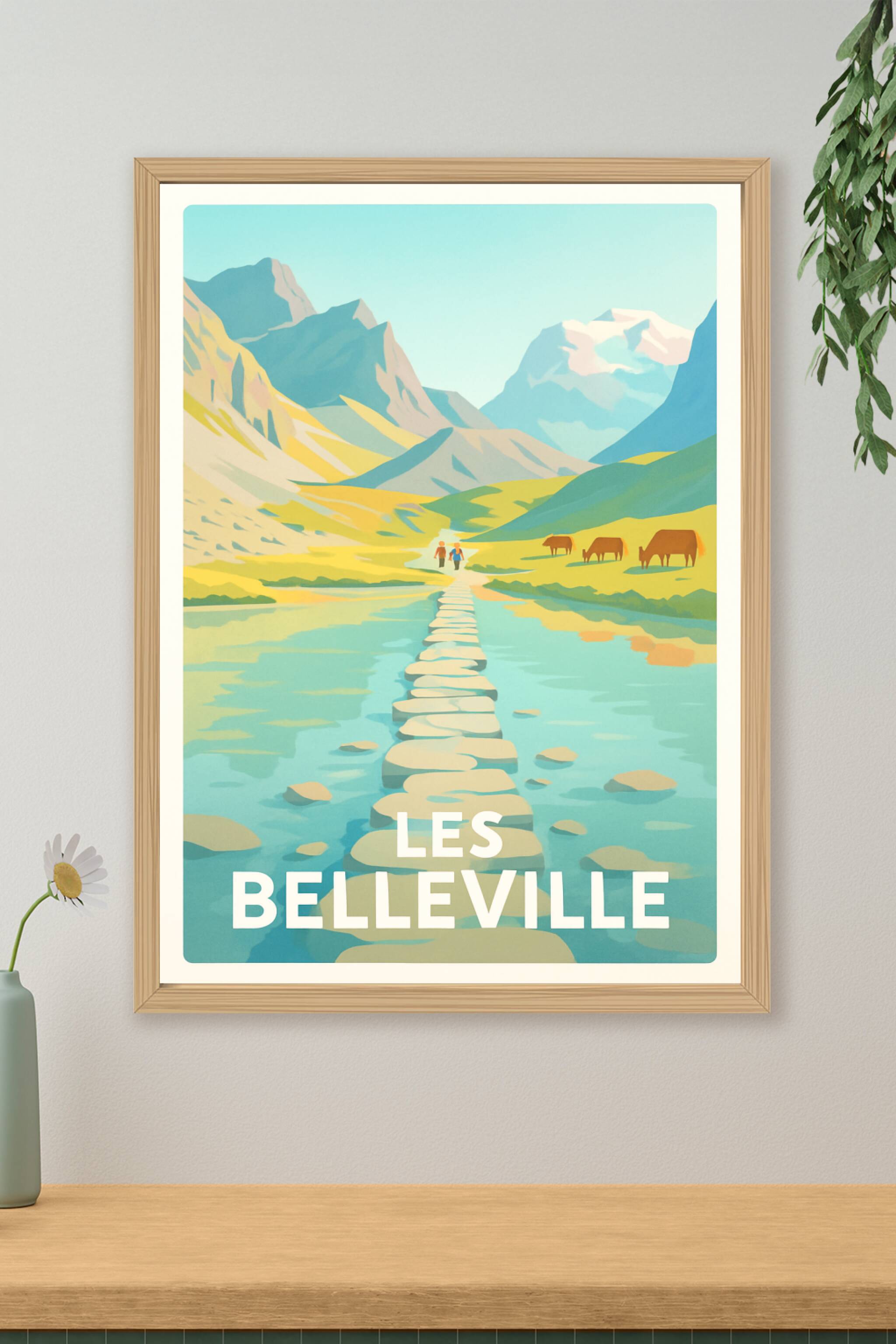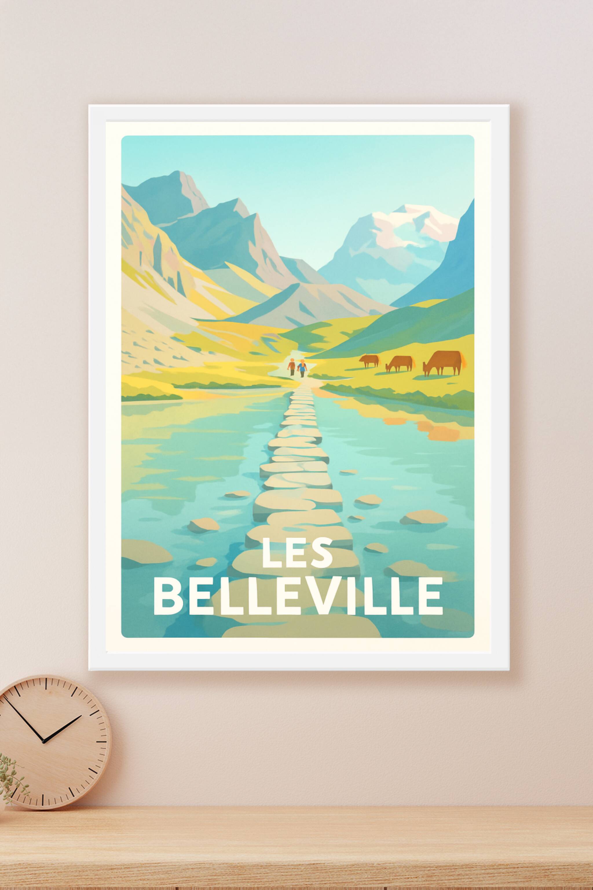 Découvrez la sérénité et la beauté naturelle des Vallées de Les Belleville avec ce poster au style vintage et couleurs douces. Cette affiche illust...