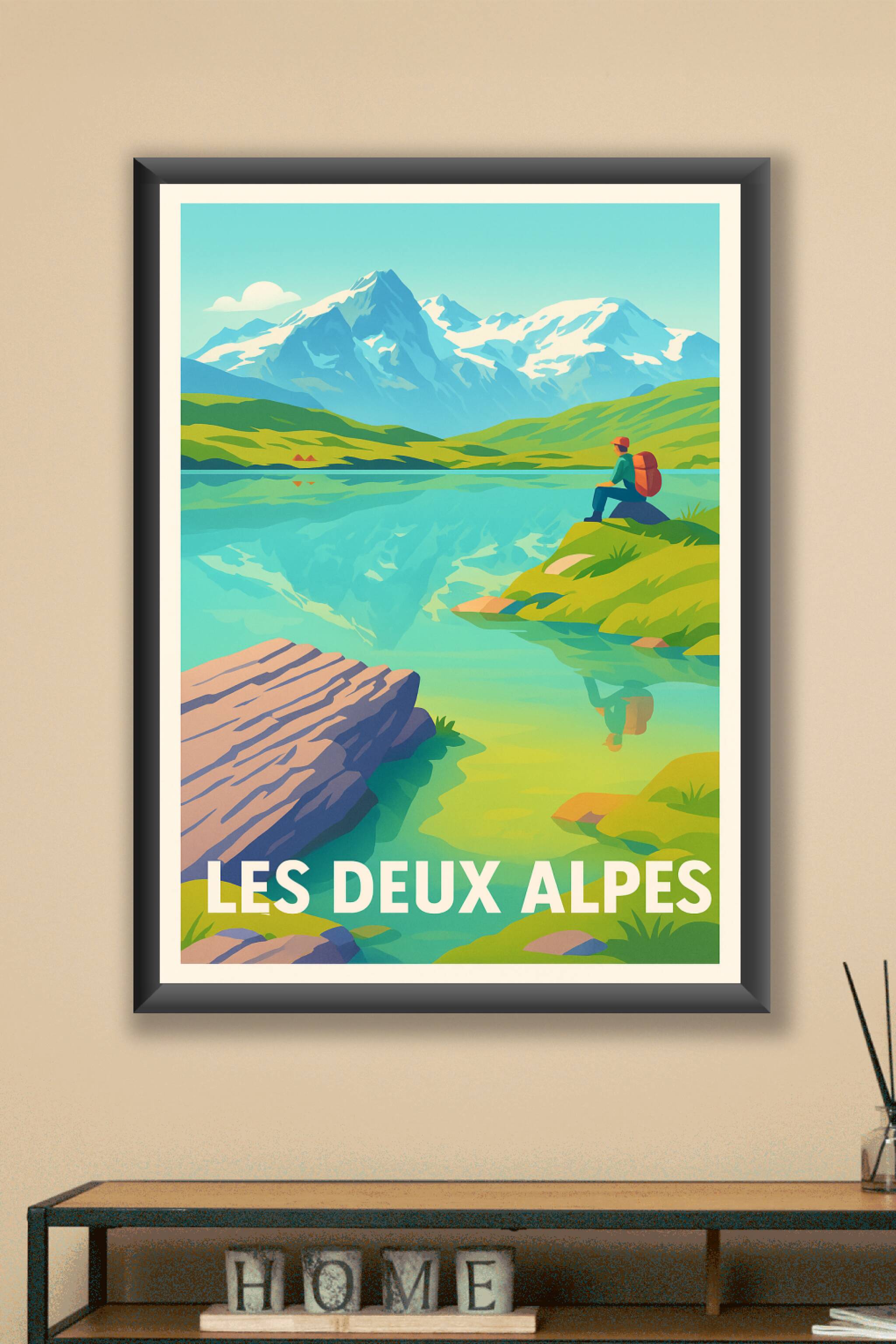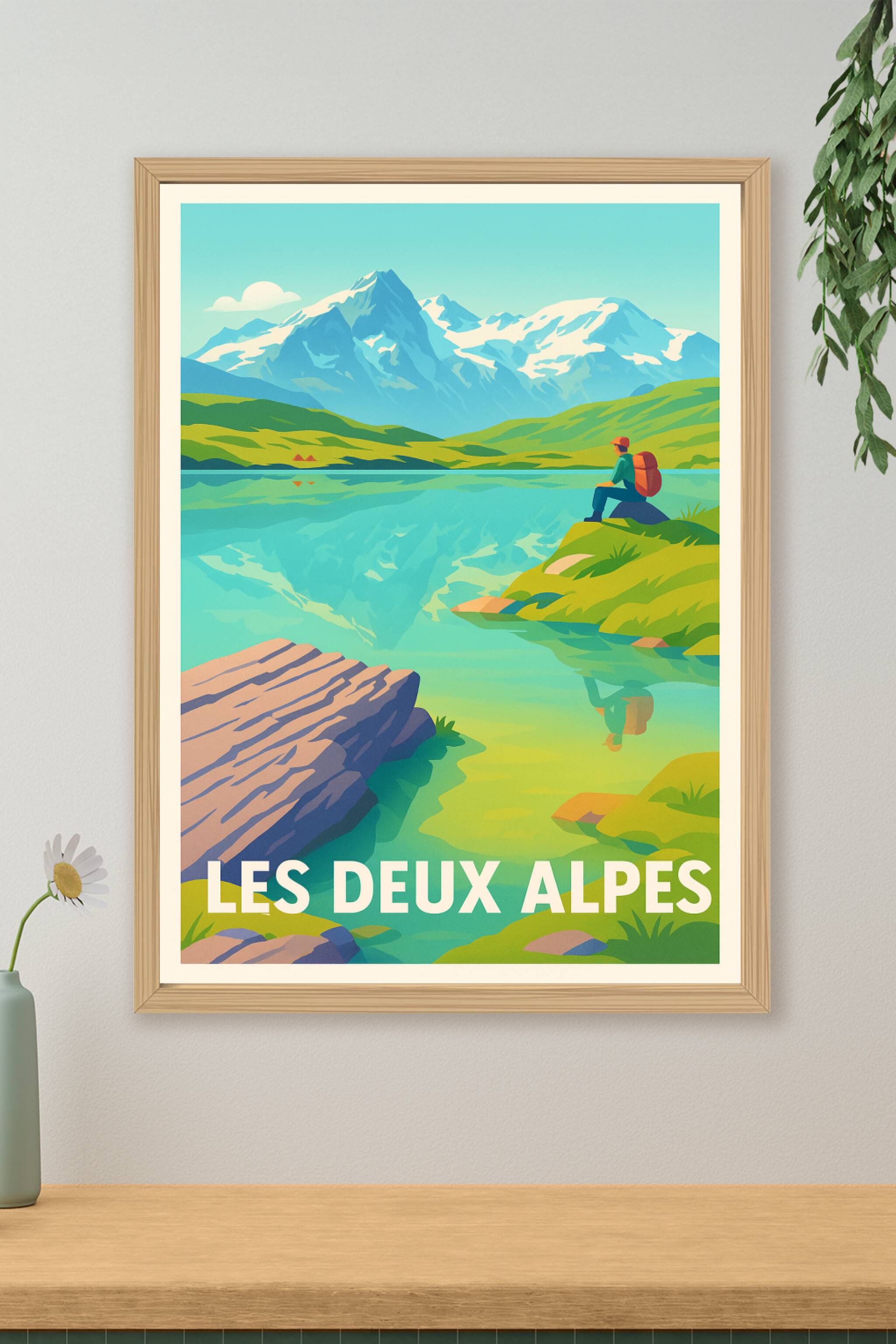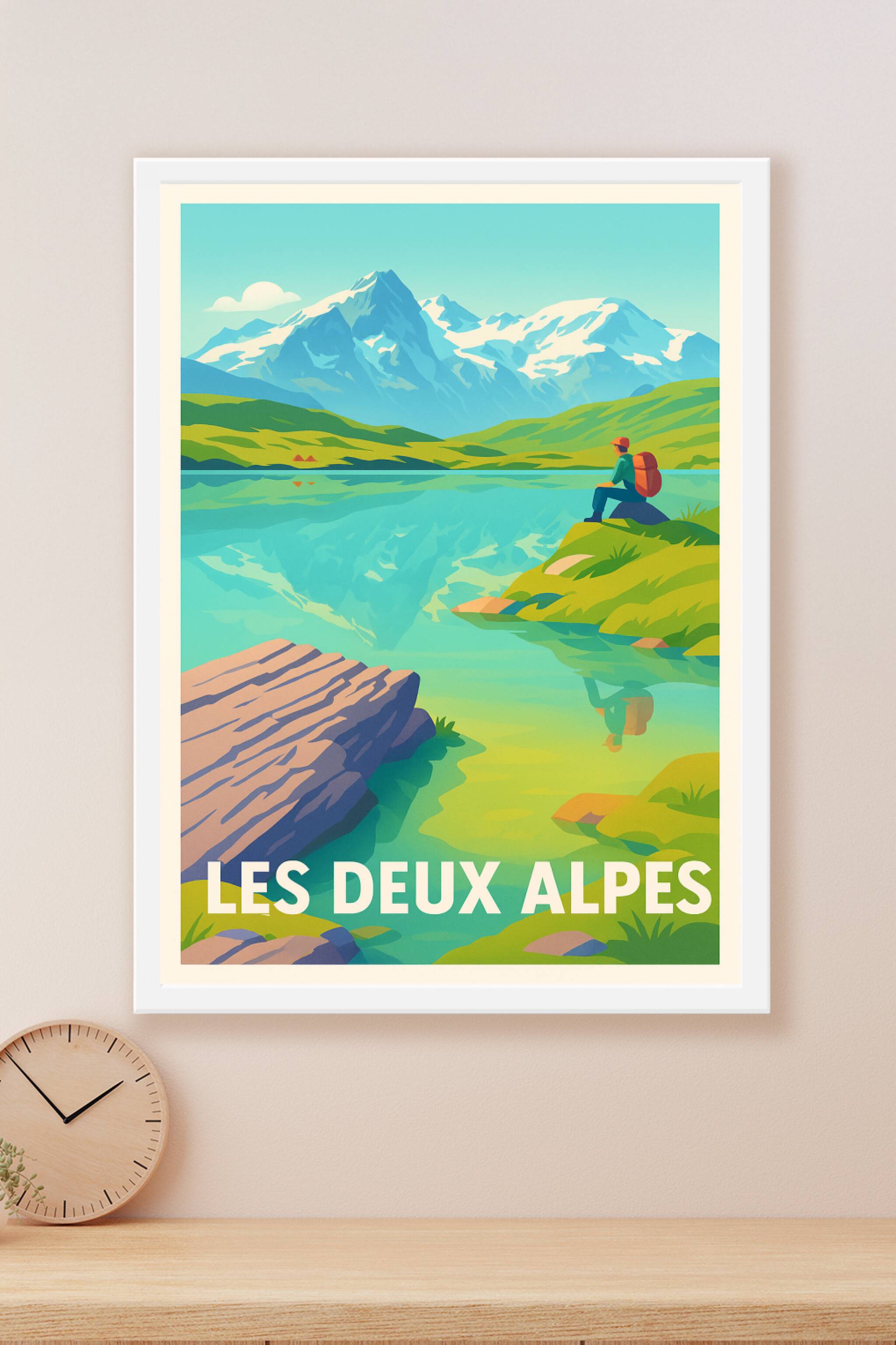 Découvrez la splendeur des Alpes avec ce poster illustré mettant en scène un paysage montagneux paisible et inspirant, parfait pour les amoureux de la nature et de la randonnée. Cette affiche sublime Les Deux Alpes, avec ses sommets enneigés et ses eaux cristallines reflétant un moment de quiétude au cœur des massifs alpins. Imprimée en tirage "Fine Art" sur papier coton 305g, elle garantit une qualité d'impression exceptionnelle et des couleurs éclatantes qui dureront dans le temps. Disponible en plusieurs formats A1 à A4, avec ou sans cadre, cette affiche apportera une touche de fraîcheur et d'aventure à votre décoration intérieure. Offrez-vous un morceau de montagne authentique grâce à ce poster premium fabriqué en France.