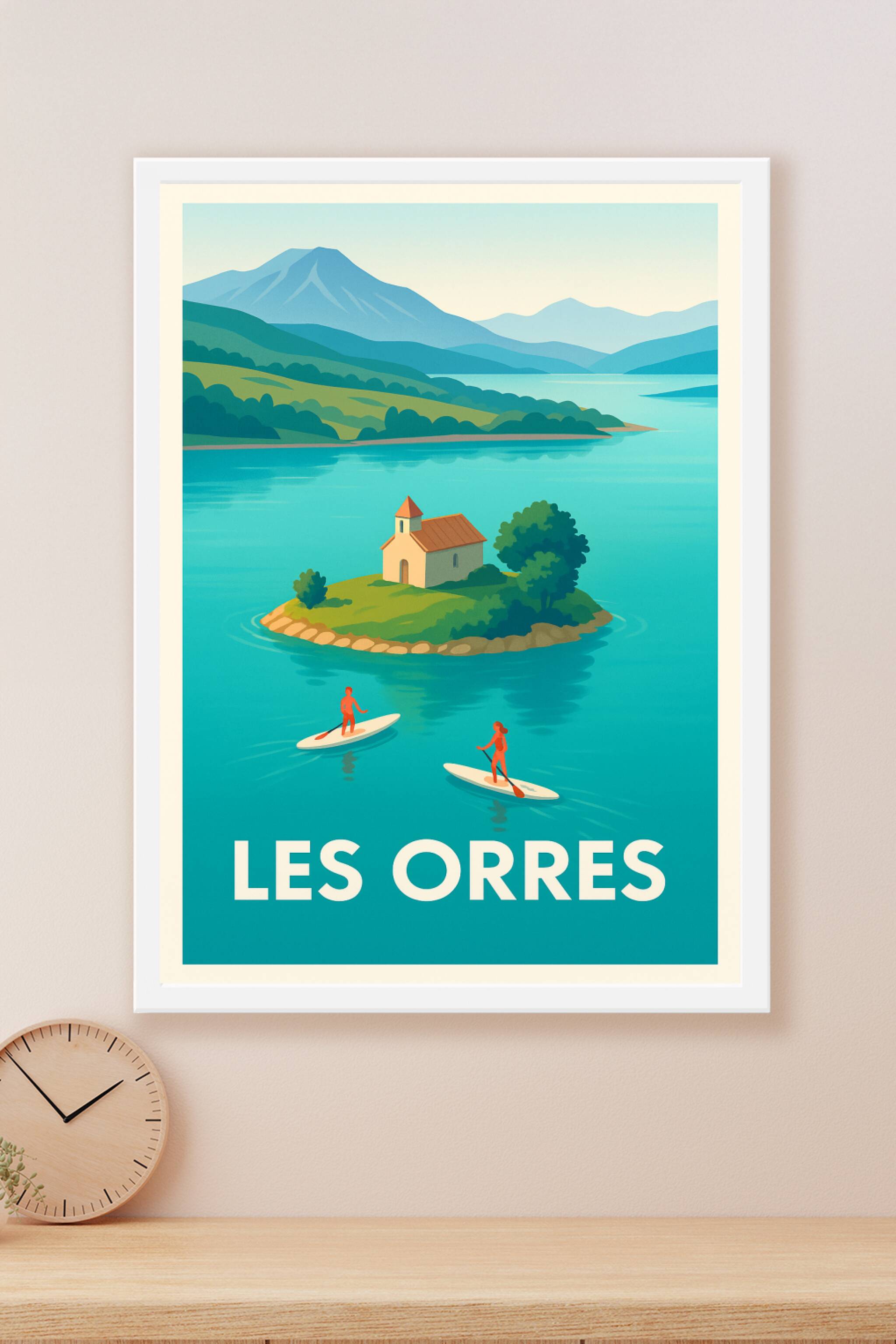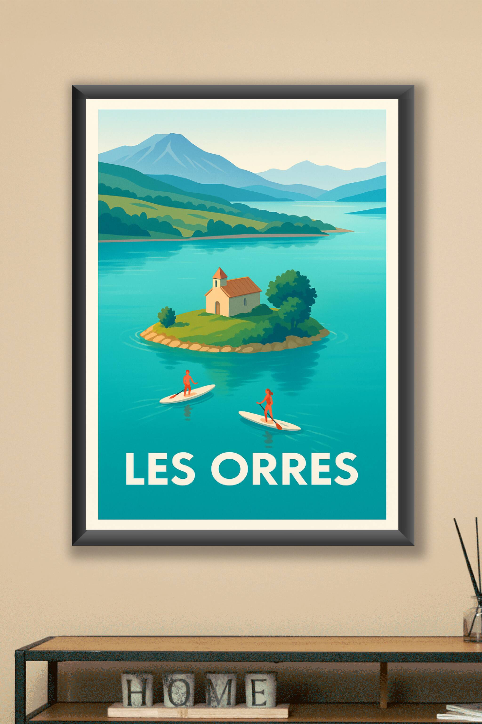 Découvrez la quiétude et la beauté naturelle des Orres avec cette affiche illustrée mettant en scène un paysage alpestre enchanteur, avec ses eaux turquoise et son îlot charmant. Ce poster transmet une ambiance paisible, idéale pour les amoureux de la montagne et des activités nautiques comme le paddle. Notre affiche est imprimée en tirage "Fine Art" sur papier 305g coton, garantissant une qualité d'impression exceptionnelle et des couleurs éclatantes. Disponible en formats A1 à A4, avec ou sans cadre, ce poster est parfait pour apporter une touche d’évasion et de fraîcheur à votre intérieur. Profitez d'une impression premium 100% fabriquée en France pour sublimer votre décoration ou offrir un cadeau unique et raffiné.