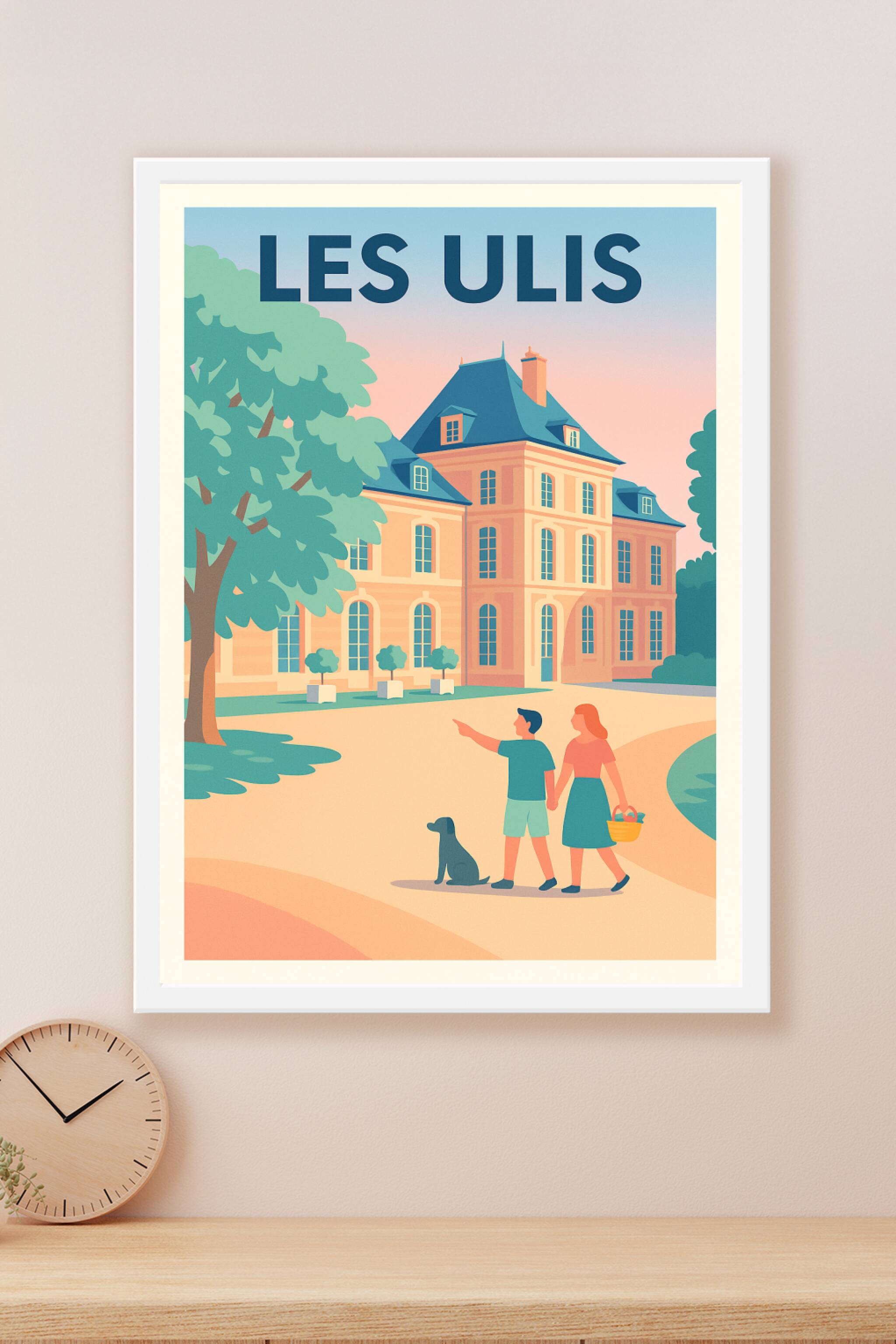 Découvrez le charme apaisant des Ulis à travers cette affiche au style illustratif doux et coloré. Cette scène met en avant une promenade tranquill...