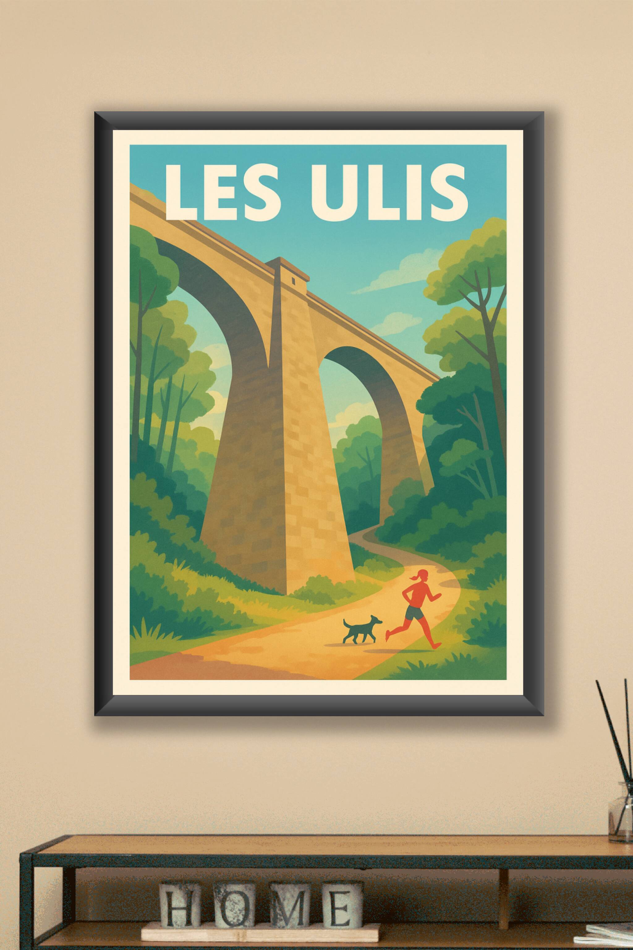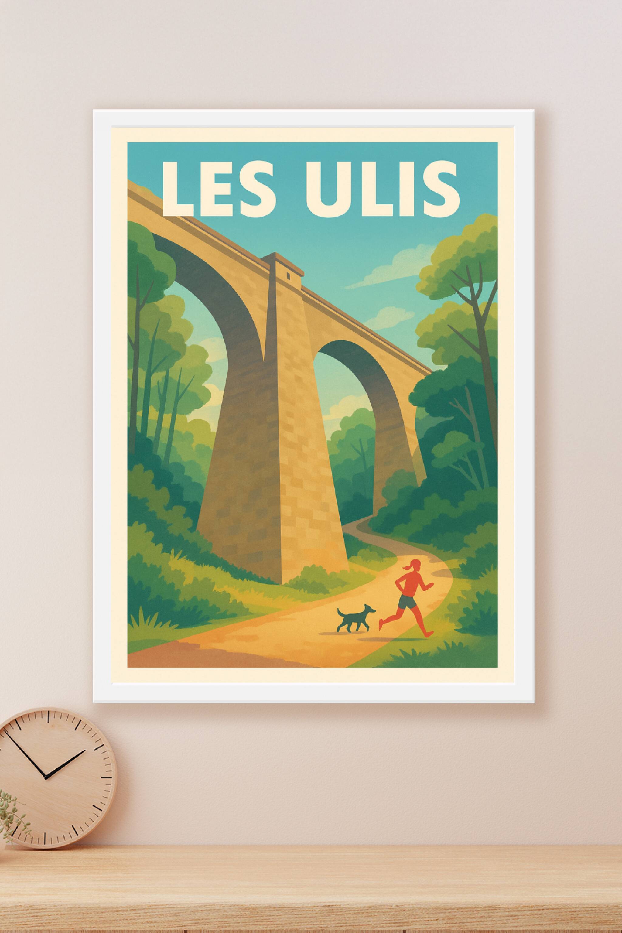 Découvrez la beauté paisible des Les Ulis avec cette affiche inspirante mettant en scène un viaduc emblématique au-dessus d'un chemin sinueux, où une joggeuse et son chien profitent d'une promenade en pleine nature. Ce poster au style rétro séduit par ses couleurs douces et son atmosphère relaxante, idéale pour apporter une touche de sérénité à votre intérieur. Imprimée en tirage "Fine Art" sur papier 305g coton, cette affiche garantit une qualité d'impression exceptionnelle, fidèle en couleur et dans les moindres détails. Disponible en formats A1 à A4, avec ou sans cadre, elle s'adapte parfaitement à tous les espaces et styles de décoration. Offrez-vous ou faites plaisir avec ce poster de qualité premium, 100% fabriqué en France, qui célèbre Les Ulis sous un jour artistique et vibrant.