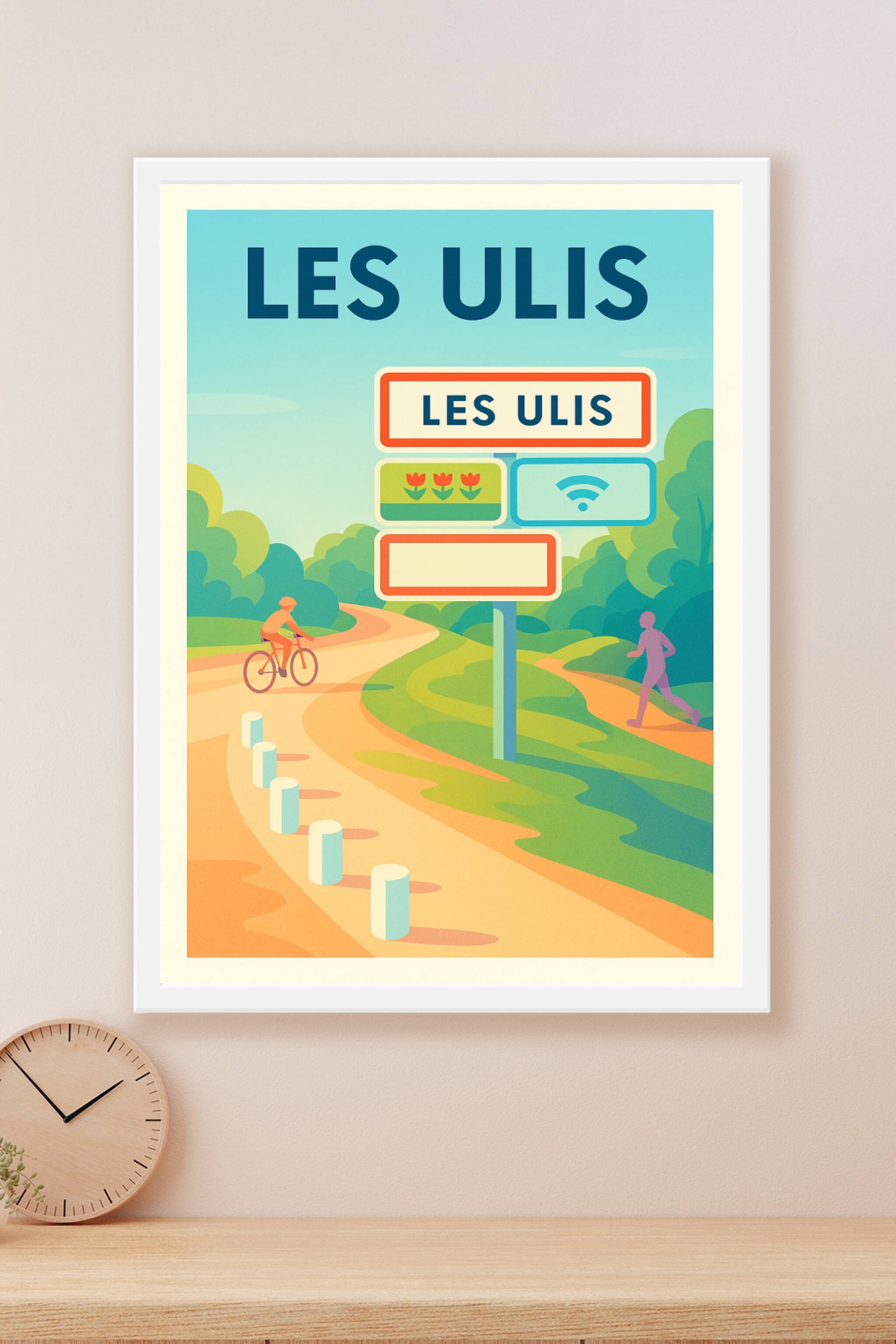 Découvrez cette affiche illustrée qui capture l'esprit des Ulis, une ville où espaces verts et innovation cohabitent harmonieusement. L'affiche met en scène un chemin sinueux bordé de nature, avec les symboles modernes comme le wifi, reflétant la vie dynamique et connectée de cette ville. Ce poster est imprimé en tirage "Fine Art" sur papier 305g coton, garantissant une qualité d'impression exceptionnelle avec des couleurs vives et durables. Disponible en formats A1 à A4, avec ou sans cadre, il sublimera tout intérieur, que ce soit chez vous ou au bureau. Offrez-vous ou offrez à vos proches une affiche de qualité premium, 100% fabriquée en France, pour un souvenir unique des Ulis.