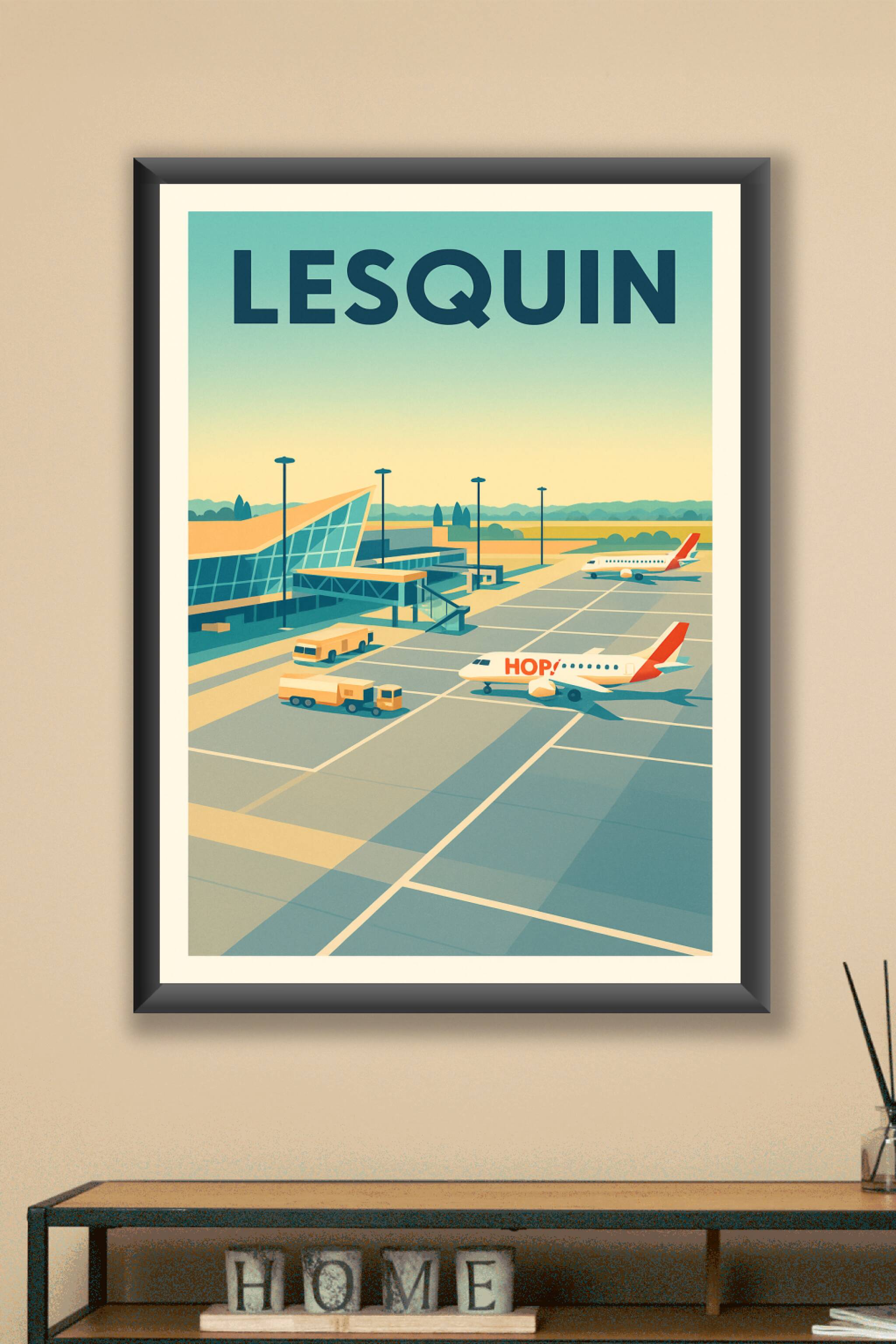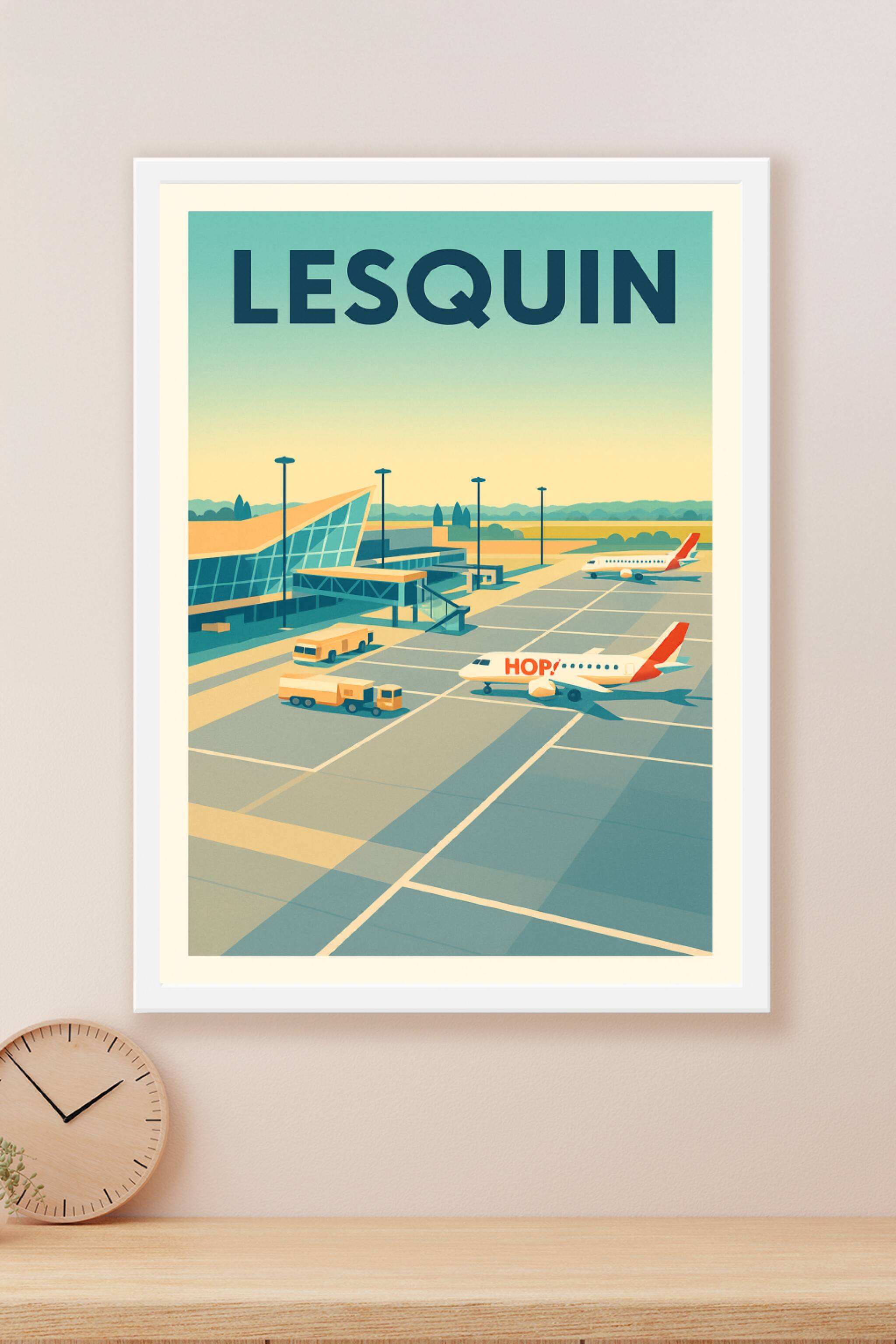 Découvrez l'ambiance sereine et graphique de l'aéroport de Lesquin à travers cette affiche vintage au style épuré. Le poster capture avec finesse l...