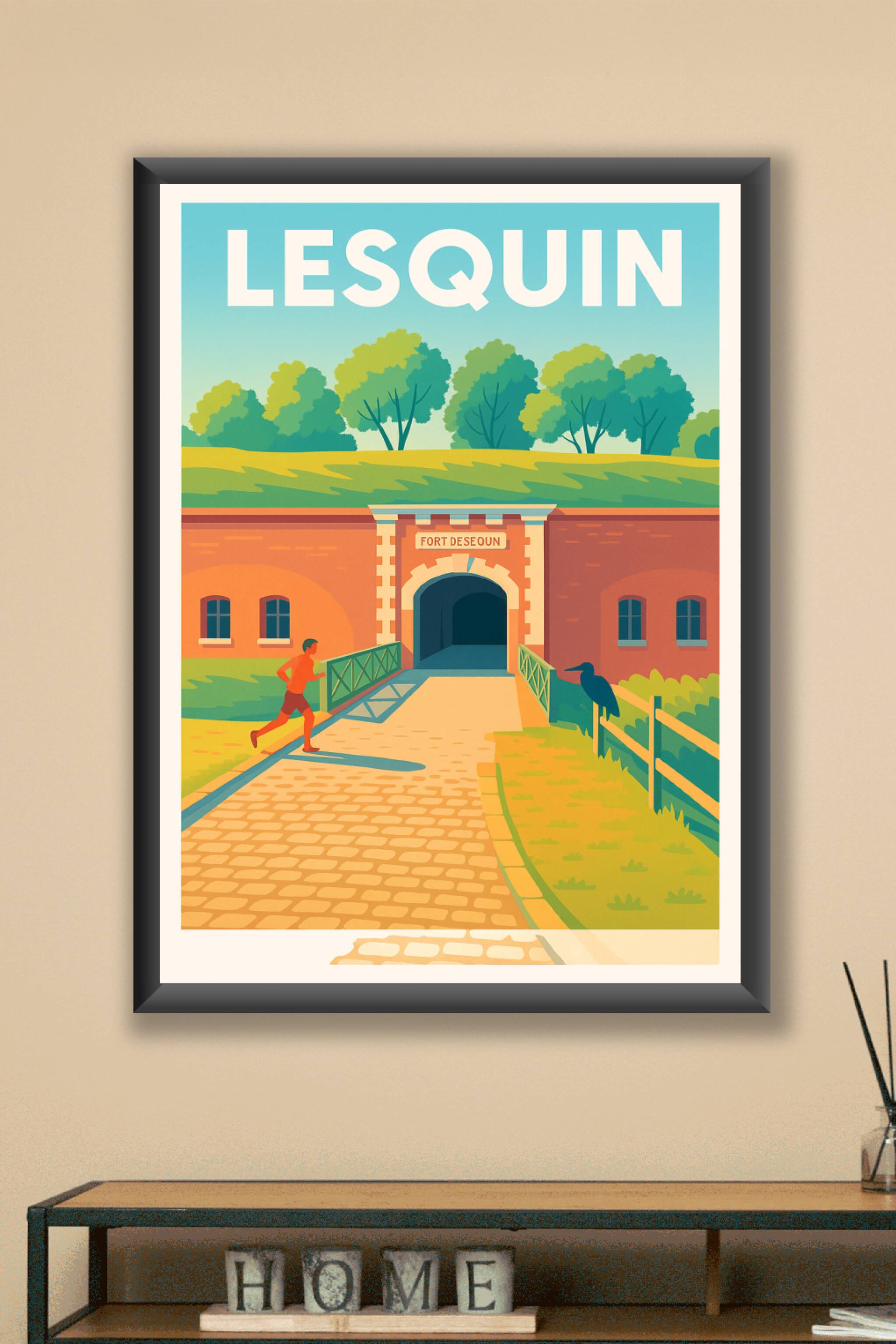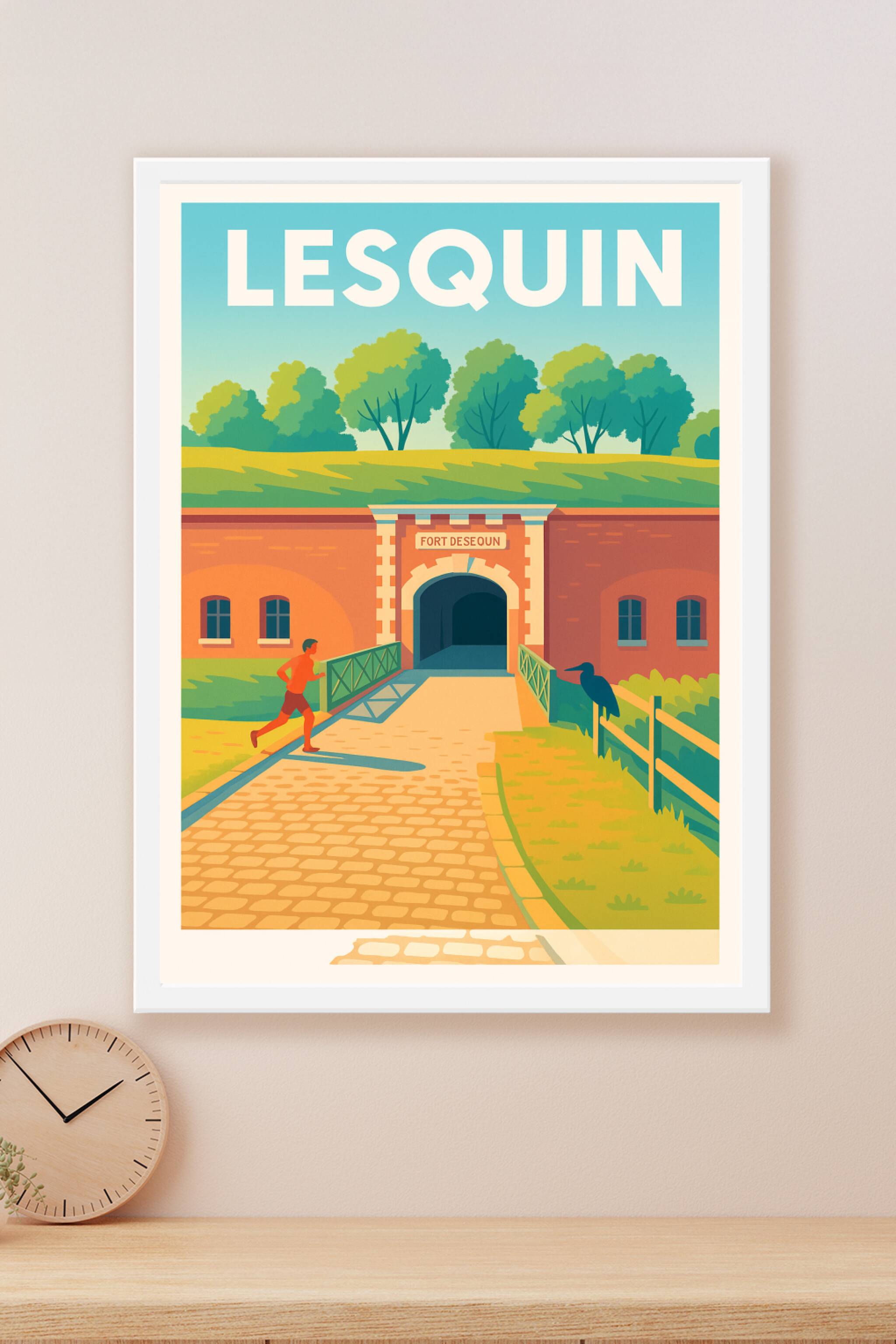Découvrez la sérénité et l'ambiance sportive de Lesquin avec cette affiche illustrée mettant en avant l'entrée du Fort Desequin. Ce poster aux coul...