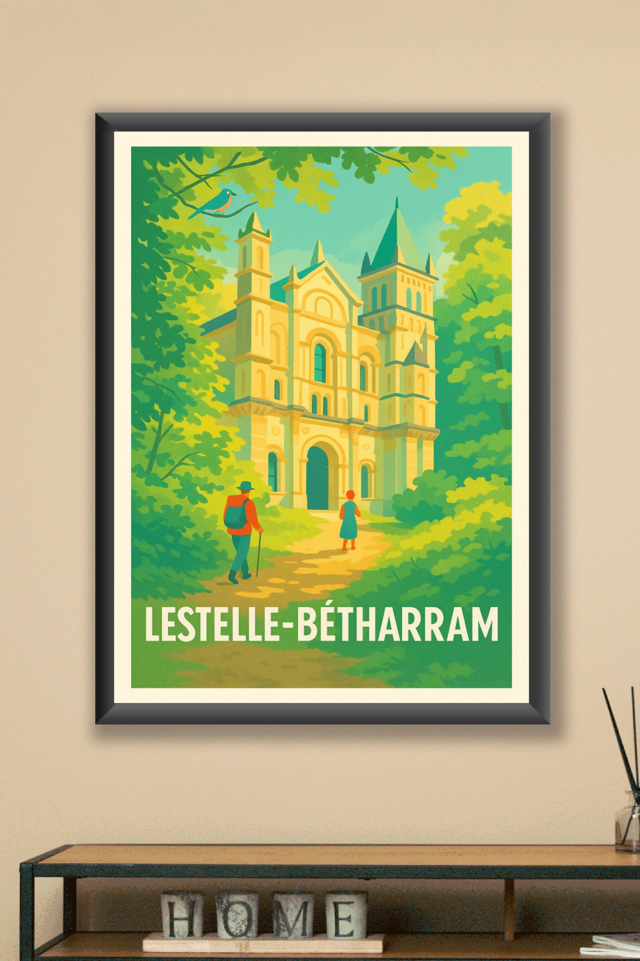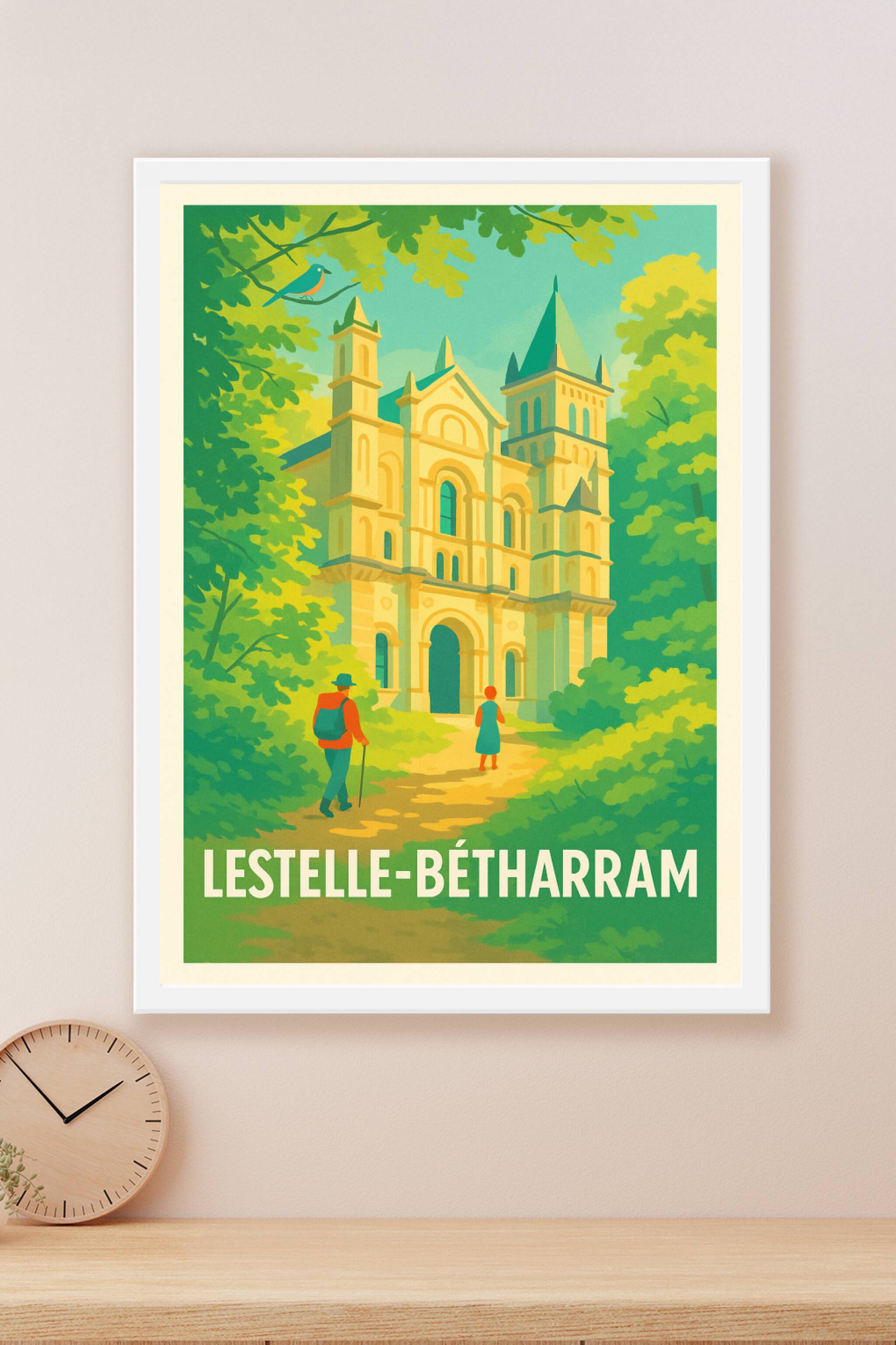 Découvrez la sérénité et le charme historique de Lestelle-Bétharram avec cette affiche au style rétro qui met en lumière l'architecture majestueuse...