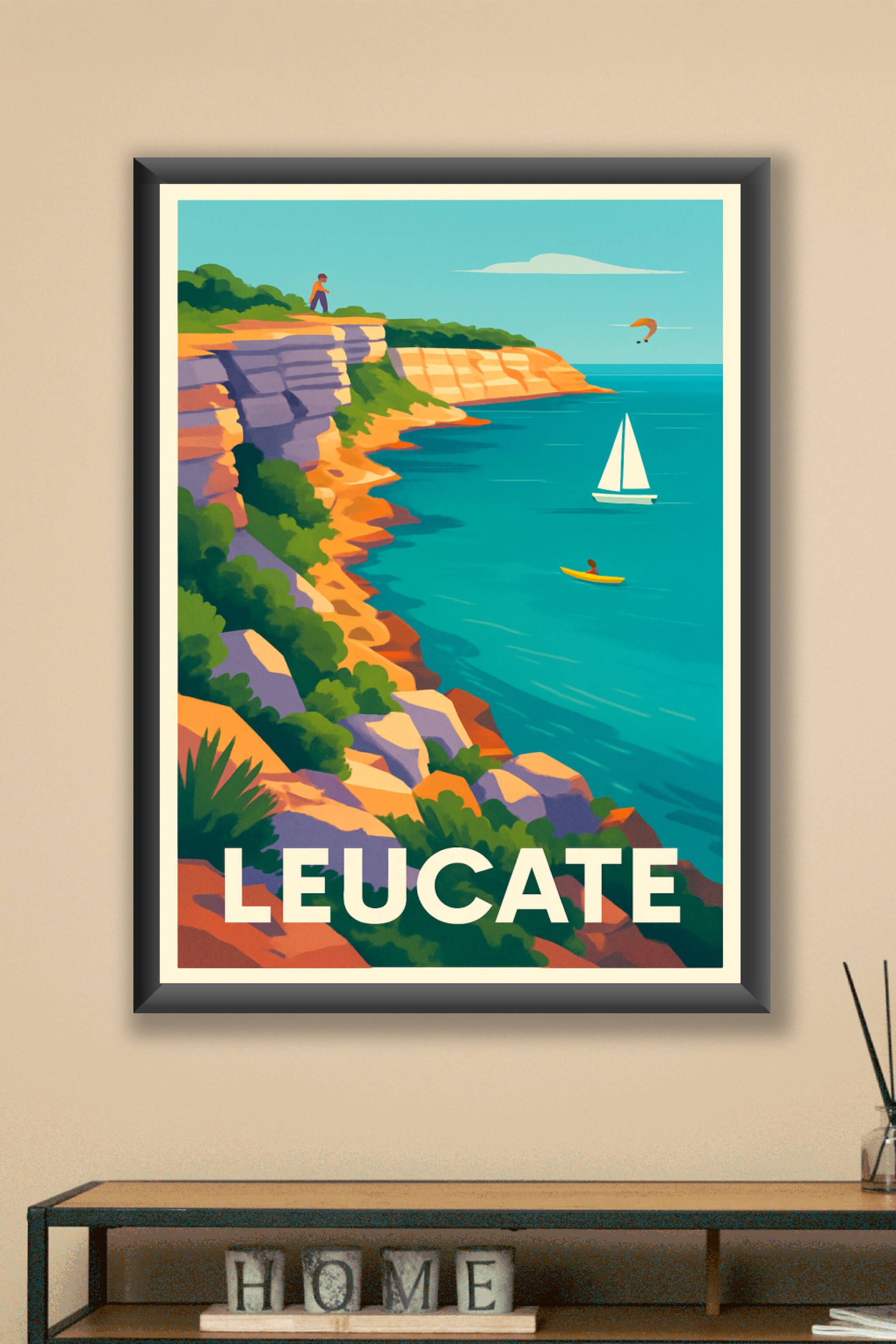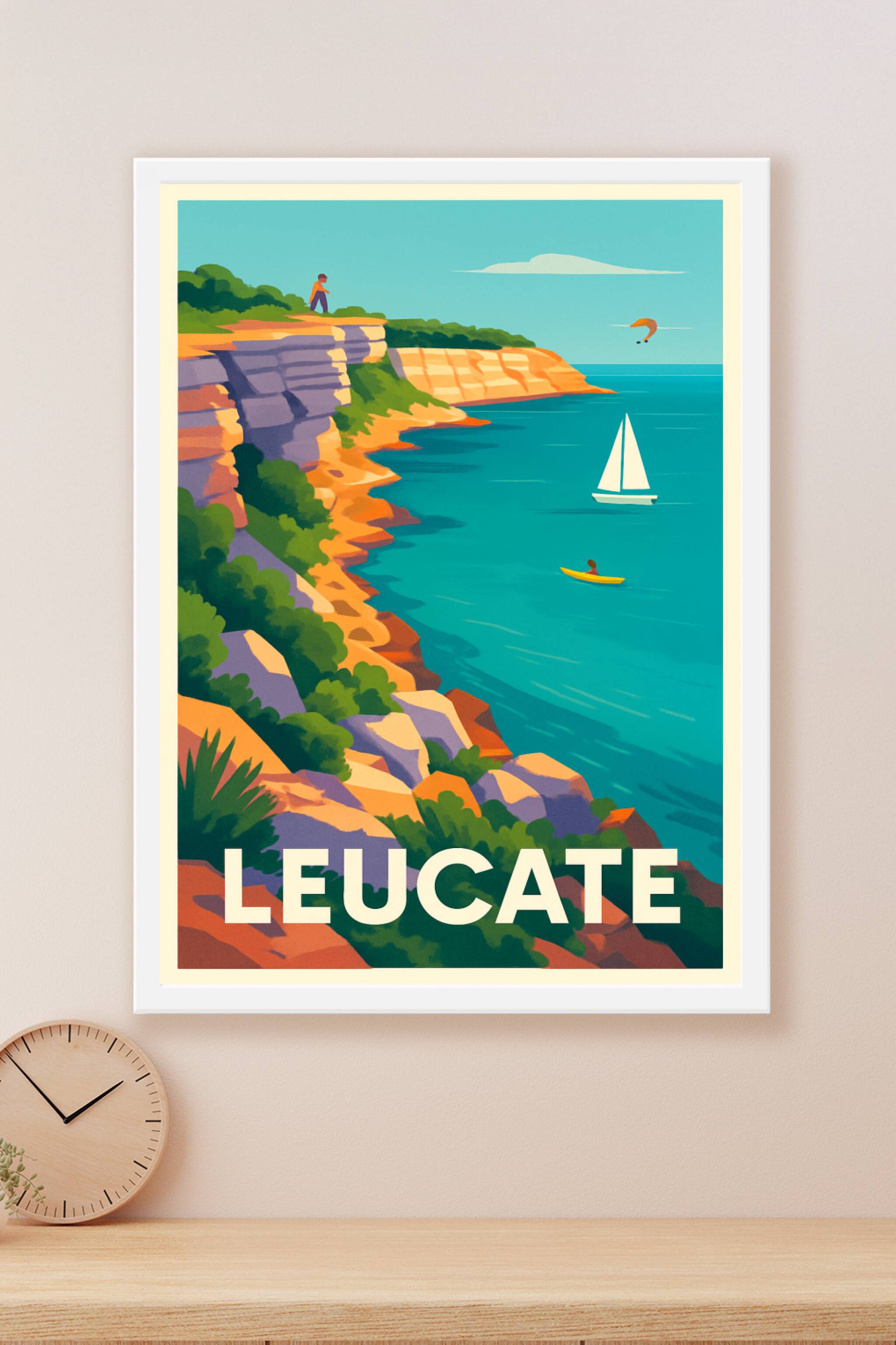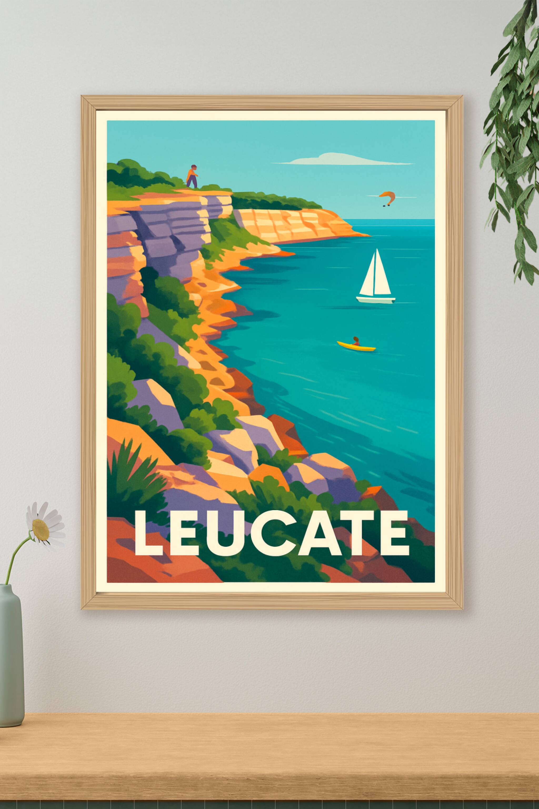 Découvrez la beauté naturelle et apaisante de Leucate à travers cette affiche au style vintage moderne qui met en lumière les falaises ensoleillées...