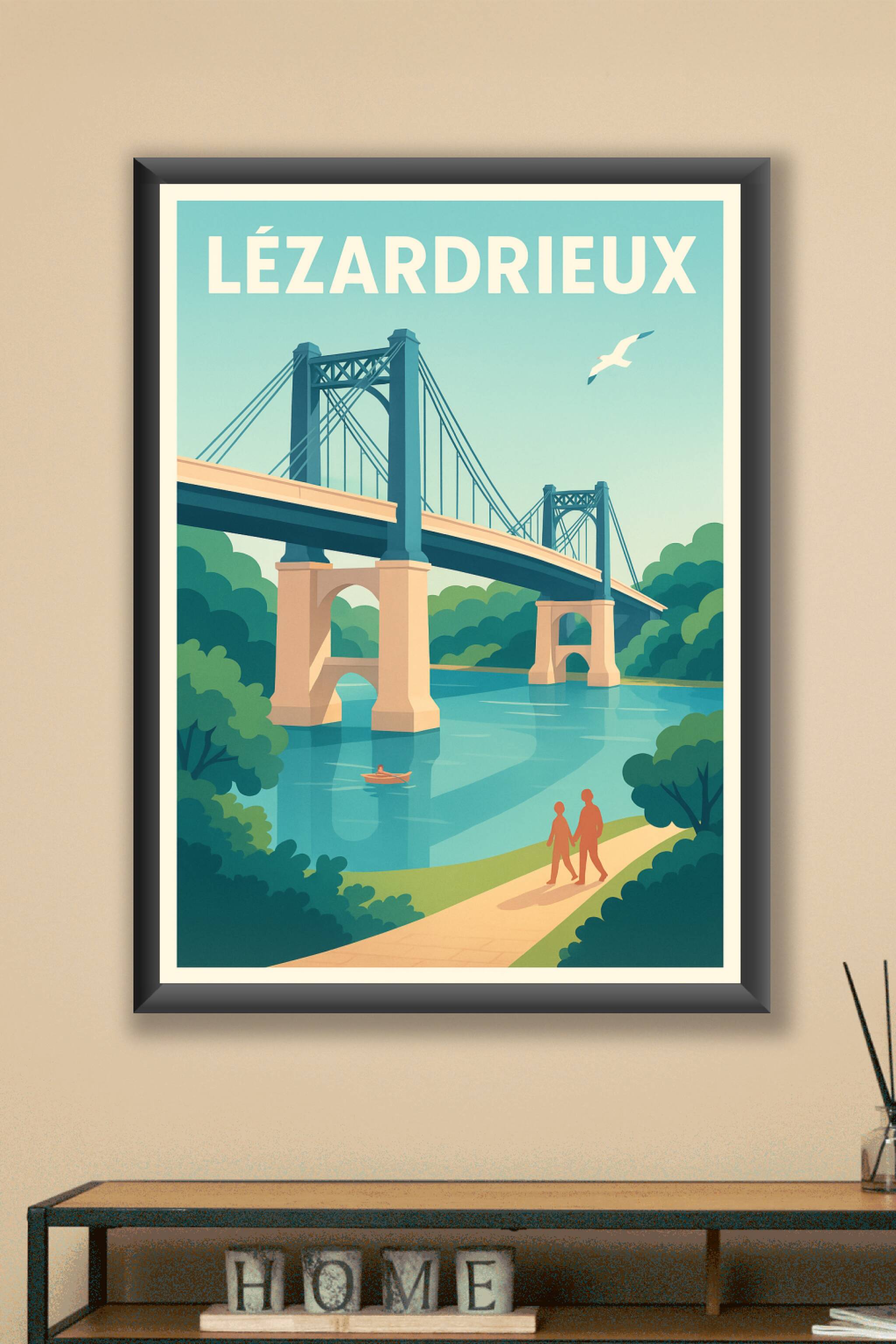 Découvrez la sérénité de Lézardrieux avec cette affiche illustrée mettant en scène le pont emblématique et la rivière calme qui traverse la ville. Ce poster évoque une promenade paisible au bord de l'eau, entre nature verdoyante et architecture remarquable. Imprimée en tirage "Fine Art" sur papier 305g coton, cette affiche garantit une qualité d'impression exceptionnelle, aux couleurs douces et durables. Disponible en formats A1 à A4, avec ou sans cadre, cette pièce apportera une touche élégante et apaisante à votre décoration intérieure ou fera un cadeau parfait pour les amoureux de Lézardrieux.