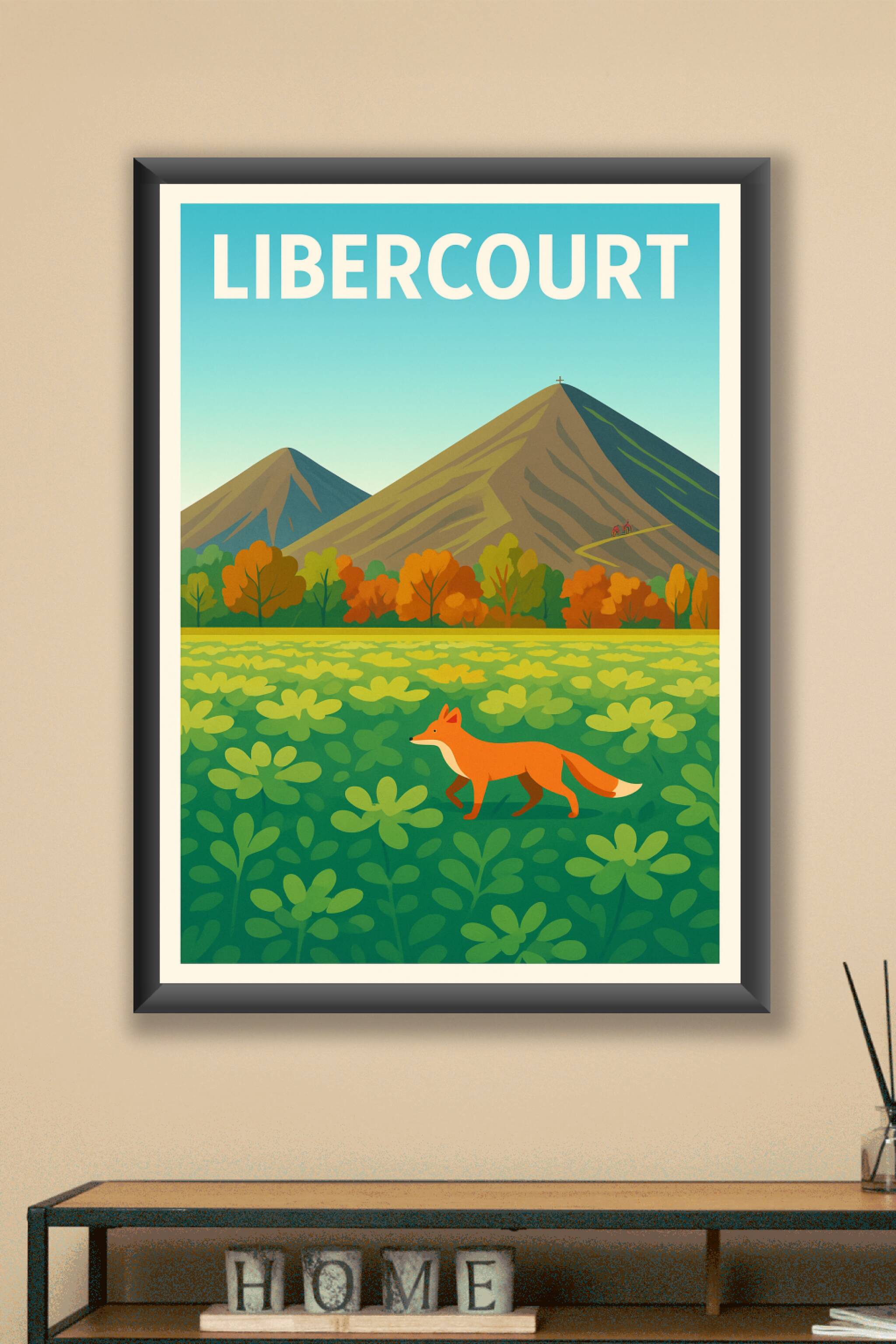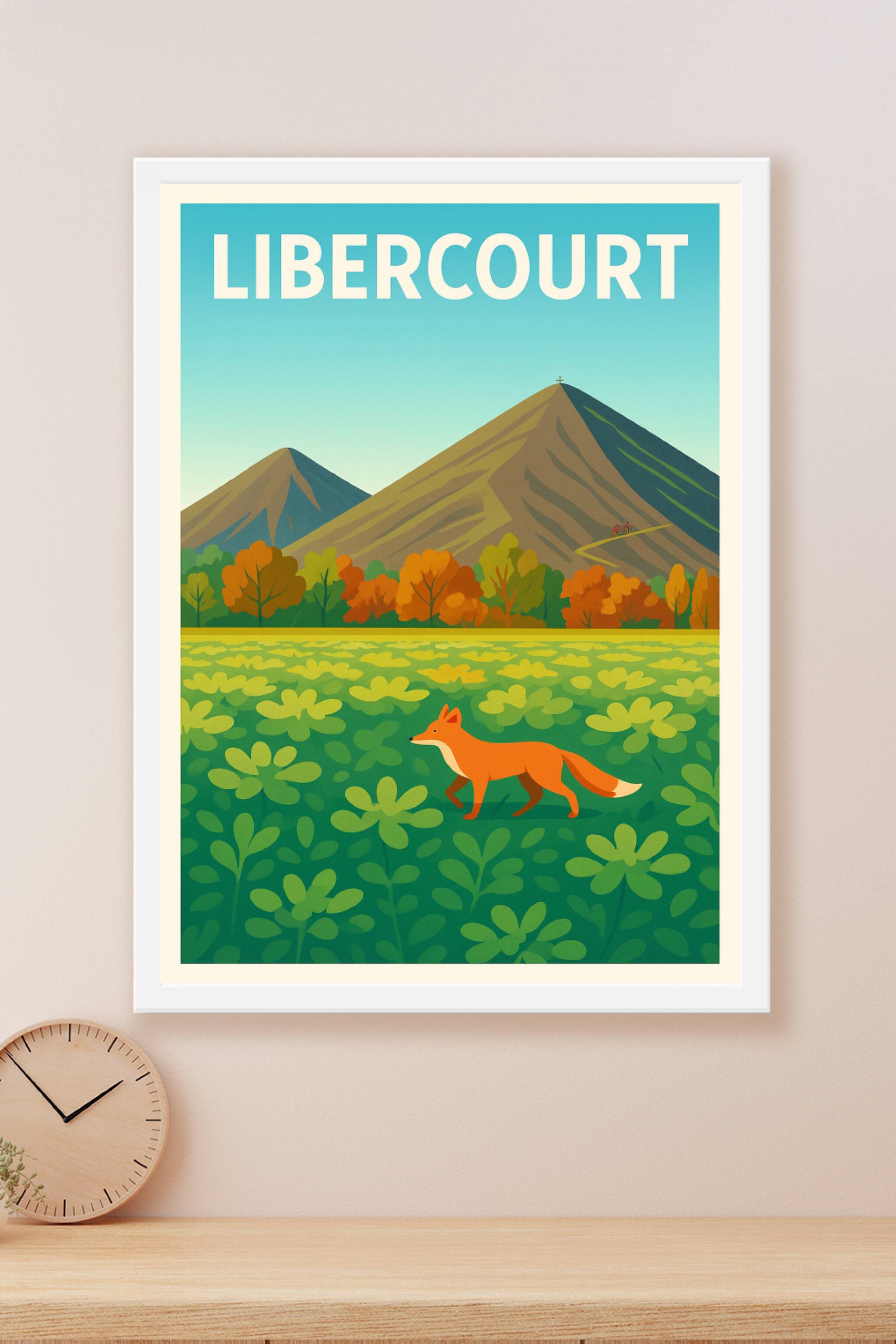 Découvrez la douceur de vivre à Libercourt avec cette affiche illustrée mettant en scène un renard au cœur d'un champ verdoyant, dominé par deux montagnes majestueuses et une forêt aux couleurs automnales. Ce poster apporte une touche de calme et de nature à votre intérieur, idéal pour les amoureux des paysages bucoliques.Cette affiche est imprimée en tirage "Fine Art" sur papier 305g coton d'une qualité d'exception, garantissant des couleurs vibrantes et une grande durabilité. Disponible du format A1 à A4, avec ou sans cadre, elle s'adapte parfaitement à tous les espaces, que ce soit chez vous ou dans votre bureau.Offrez-vous ou offrez un souvenir élégant et naturel de Libercourt grâce à cette impression premium 100% française, synonyme de raffinement et d'authenticité.