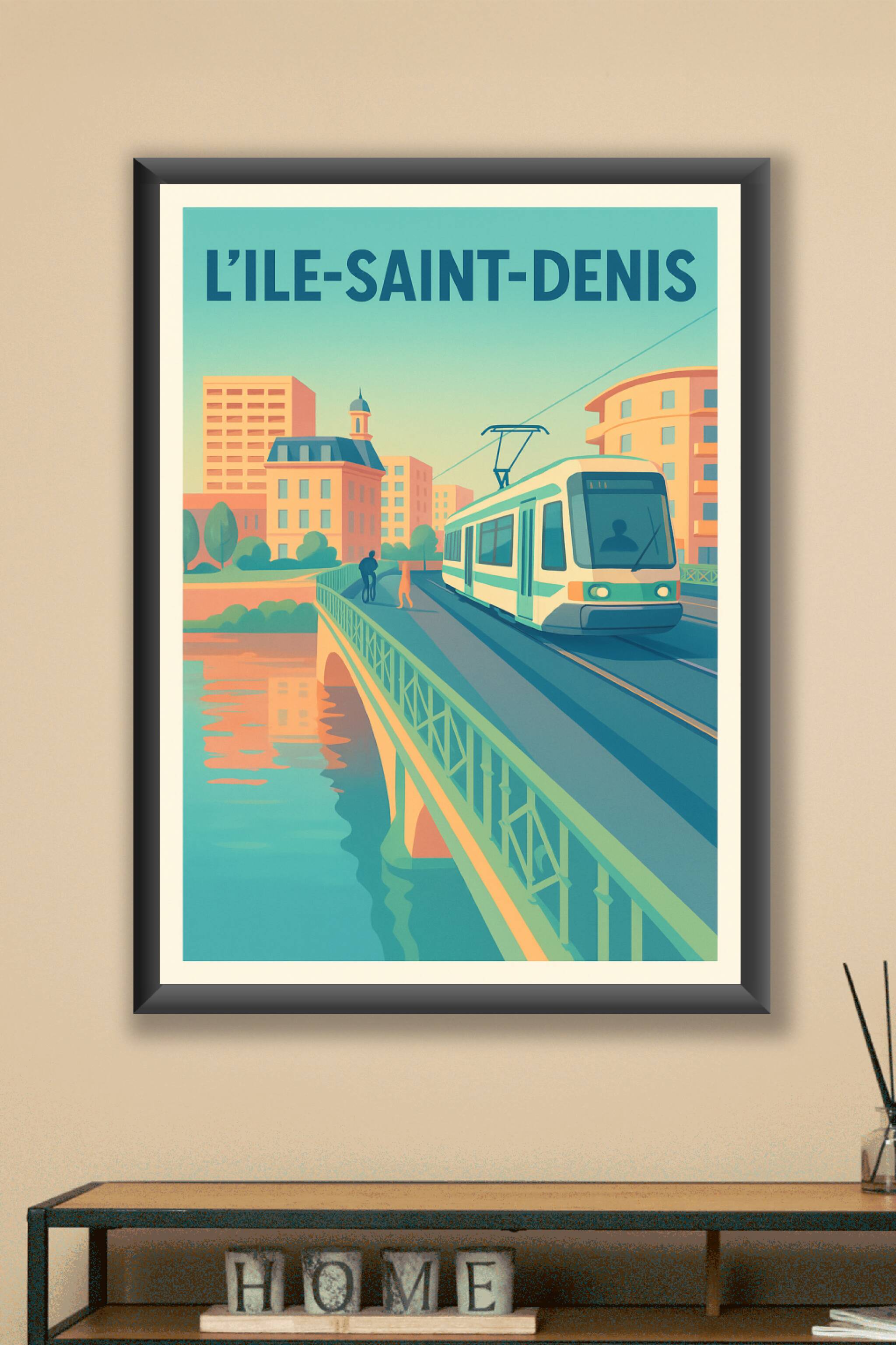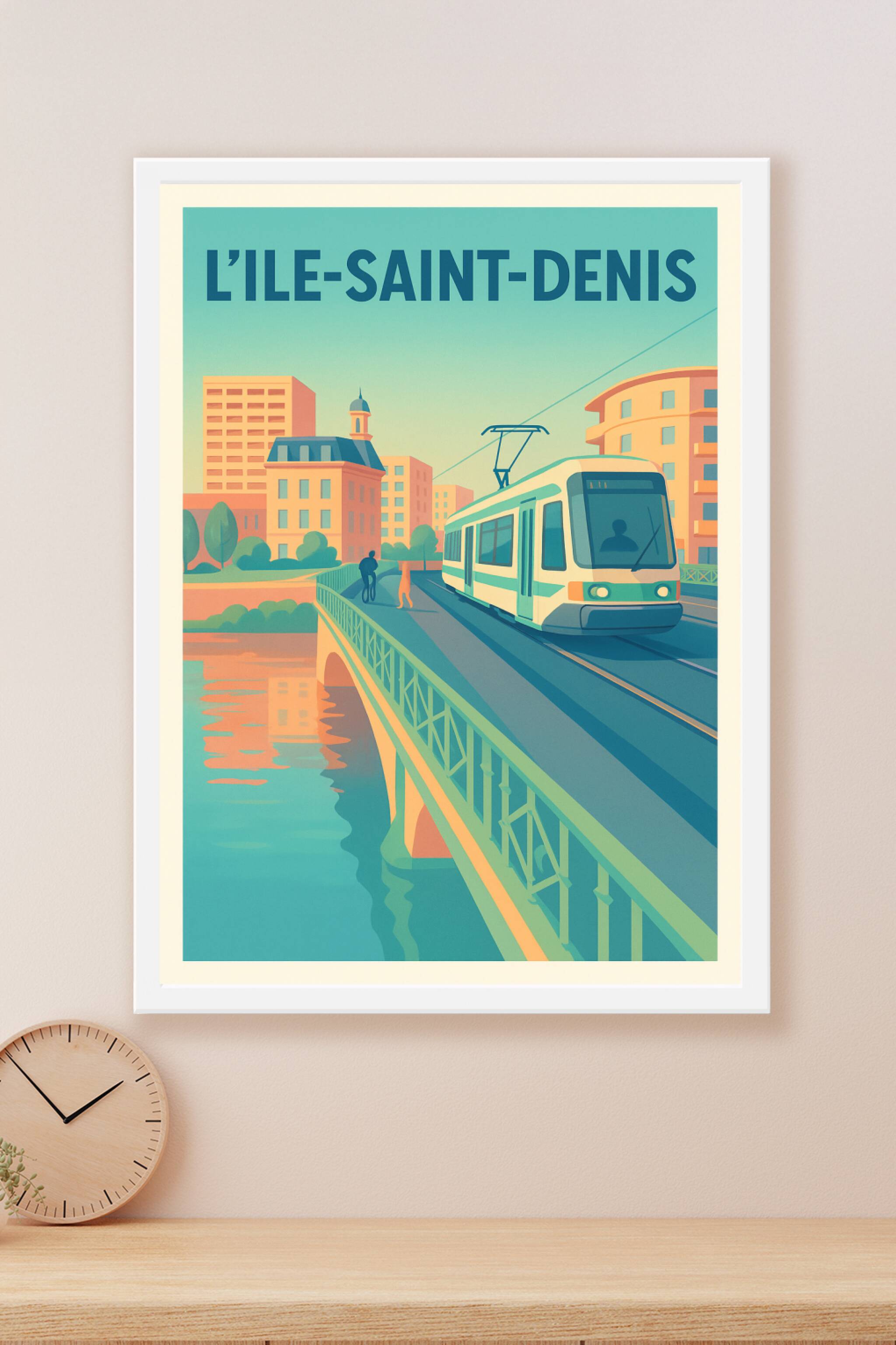 Découvrez l'ambiance dynamique et contemporaine de L'Île-Saint-Denis à travers cette affiche au design épuré et couleurs douces. Le poster met en s...