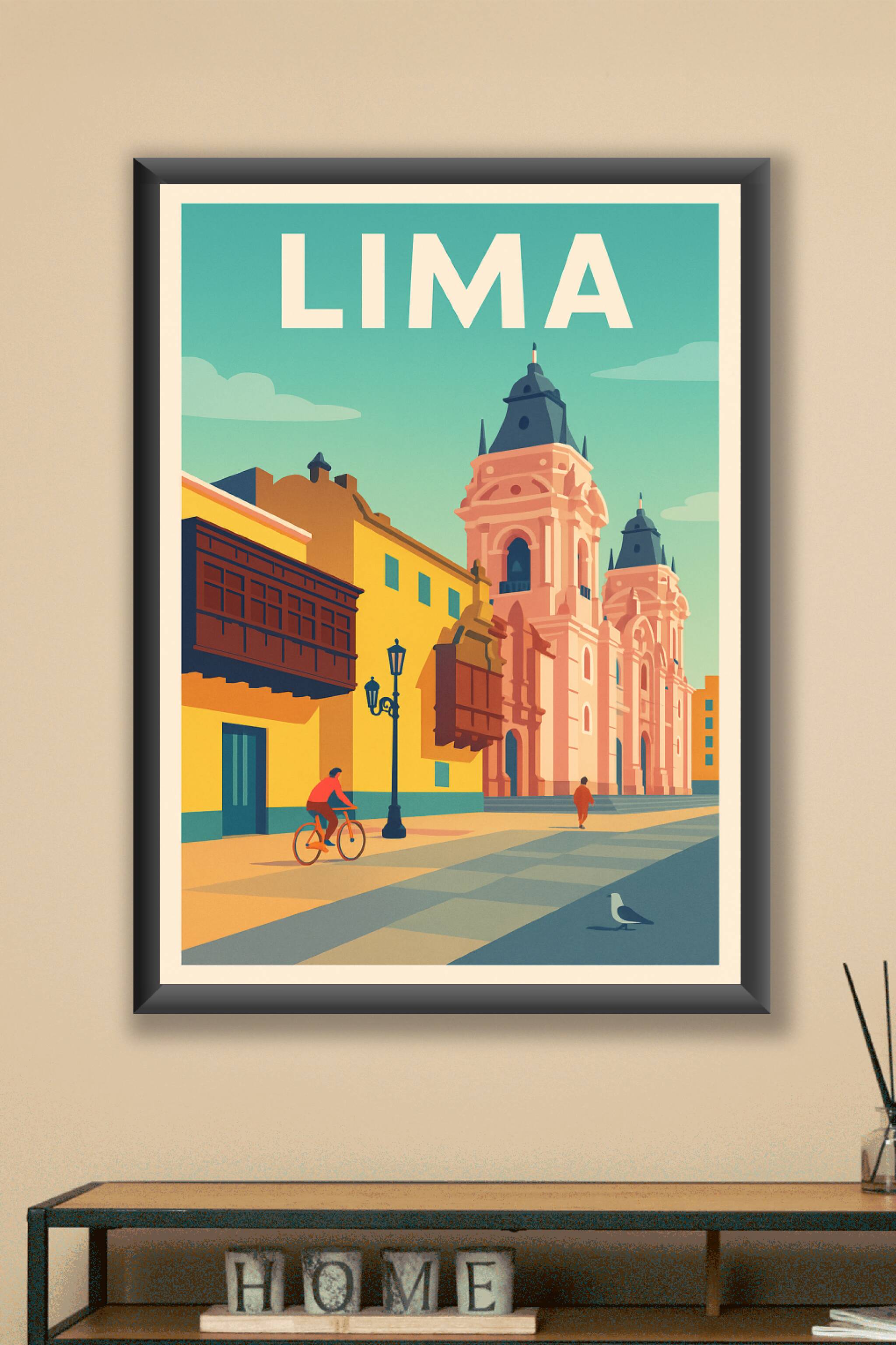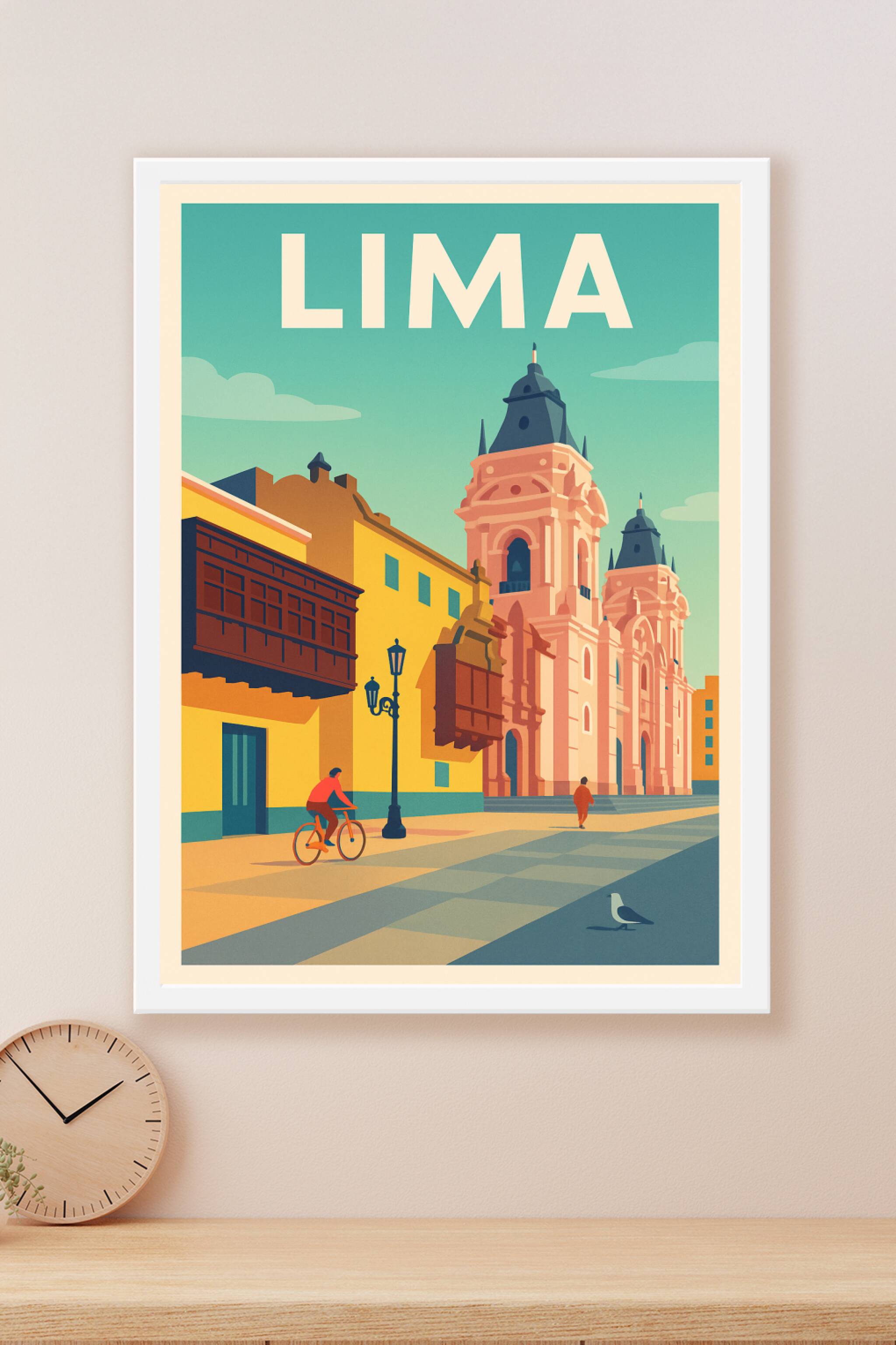 Découvrez l'élégance intemporelle de Lima avec cette affiche illustrée représentant ses façades coloniales colorées et l'architecture emblématique ...