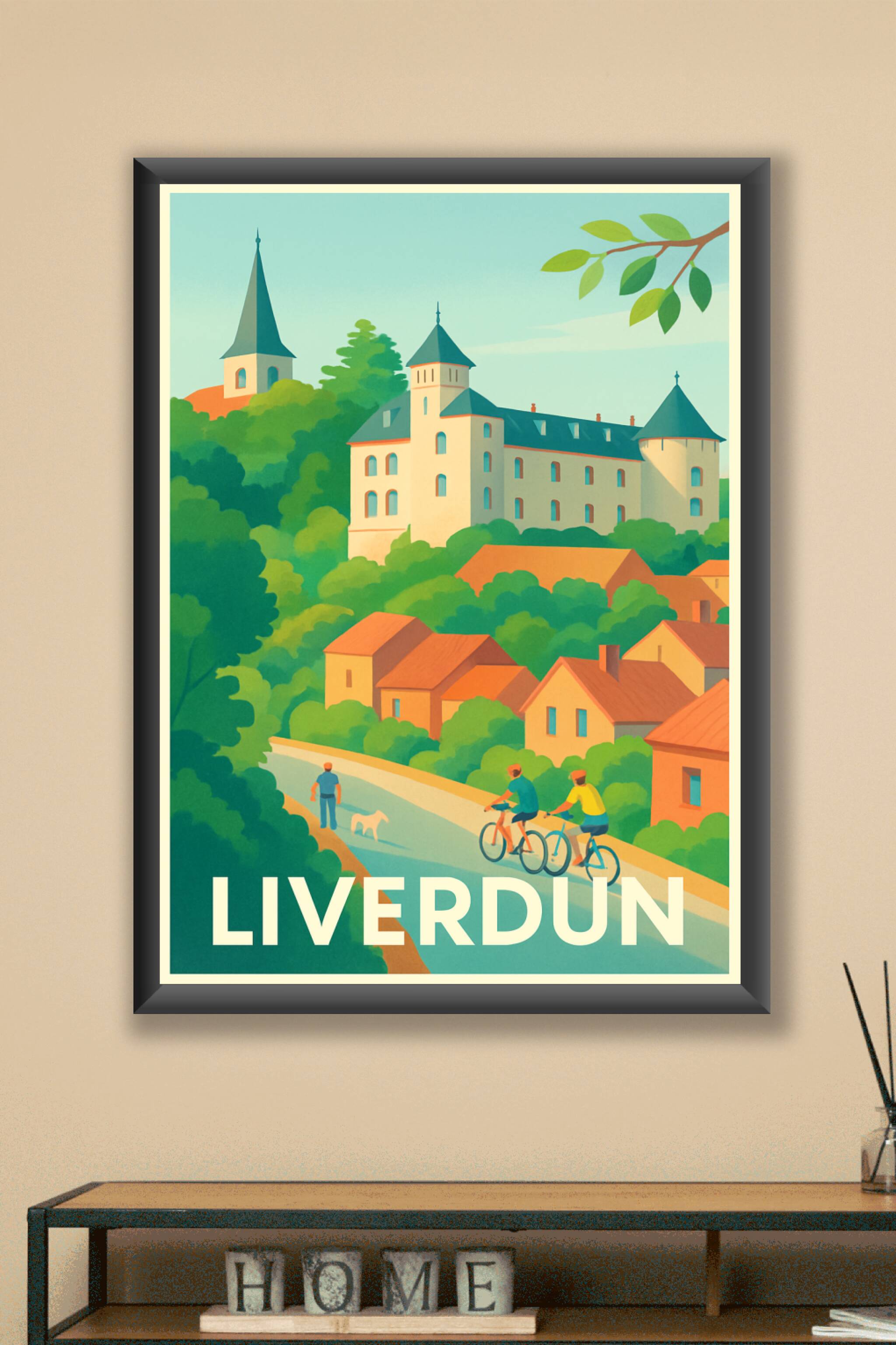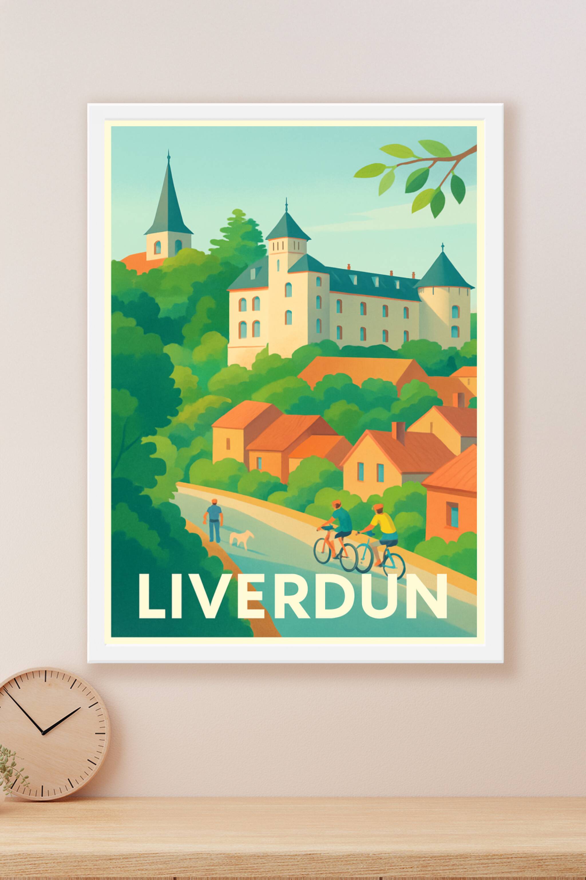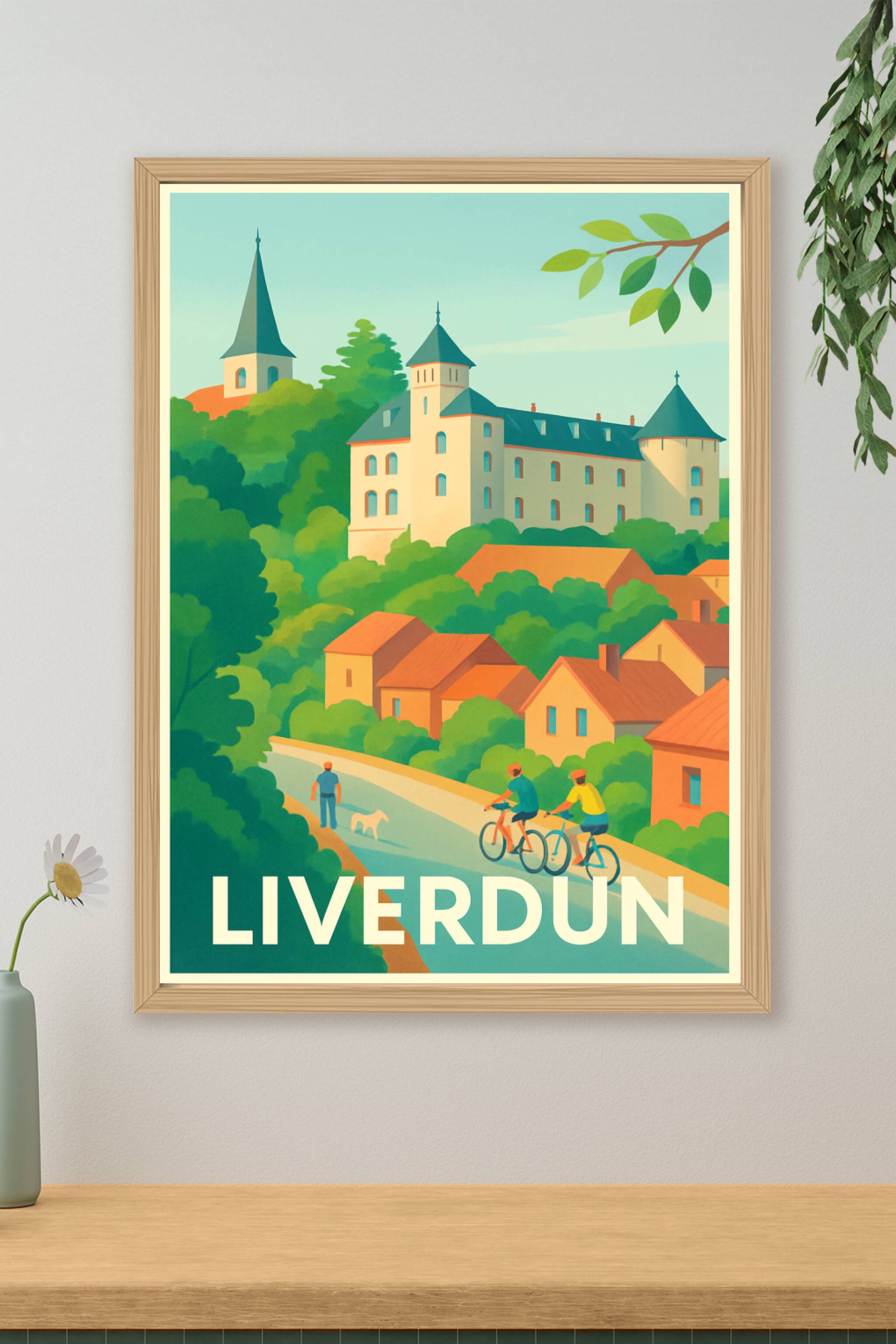 Découvrez l'élégance paisible de Liverdun à travers cette affiche illustrée, mettant en scène ses maisons typiques et un château historique niché dans une végétation luxuriante. Cette scène calme invite à la balade à vélo et à la promenade, capturant l'essence d'une ville où nature et patrimoine cohabitent harmonieusement. Ce poster est imprimé en tirage "Fine Art" sur papier 305g coton pour une finesse et une durabilité exceptionnelles. Disponible du format A1 à A4, avec ou sans cadre, il s'adapte parfaitement à tous les styles d’intérieur. Offrez-vous ou à vos proches une pièce unique, 100% fabriquée en France, pour embellir votre décoration d'une touche douce et authentique inspirée par Liverdun.