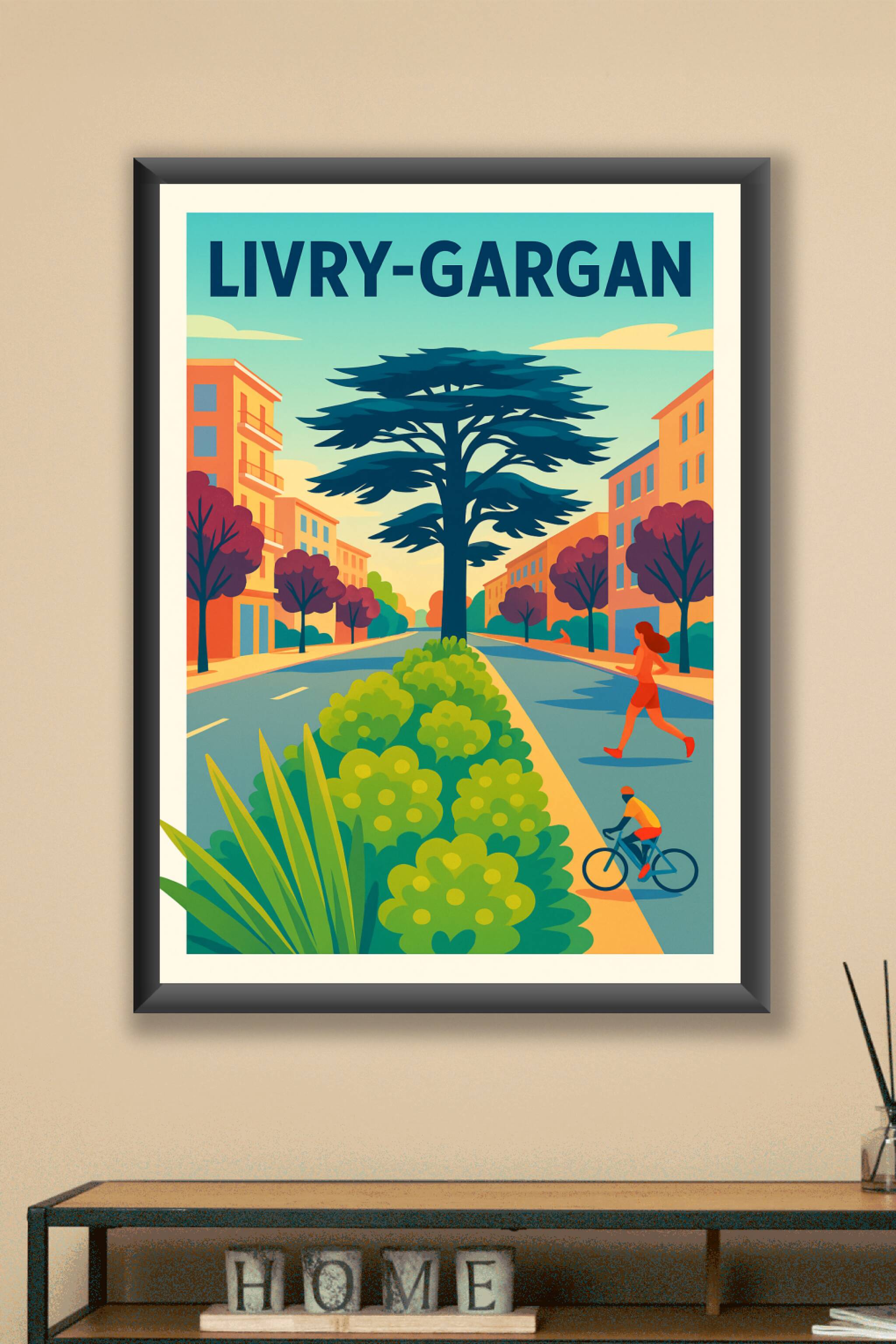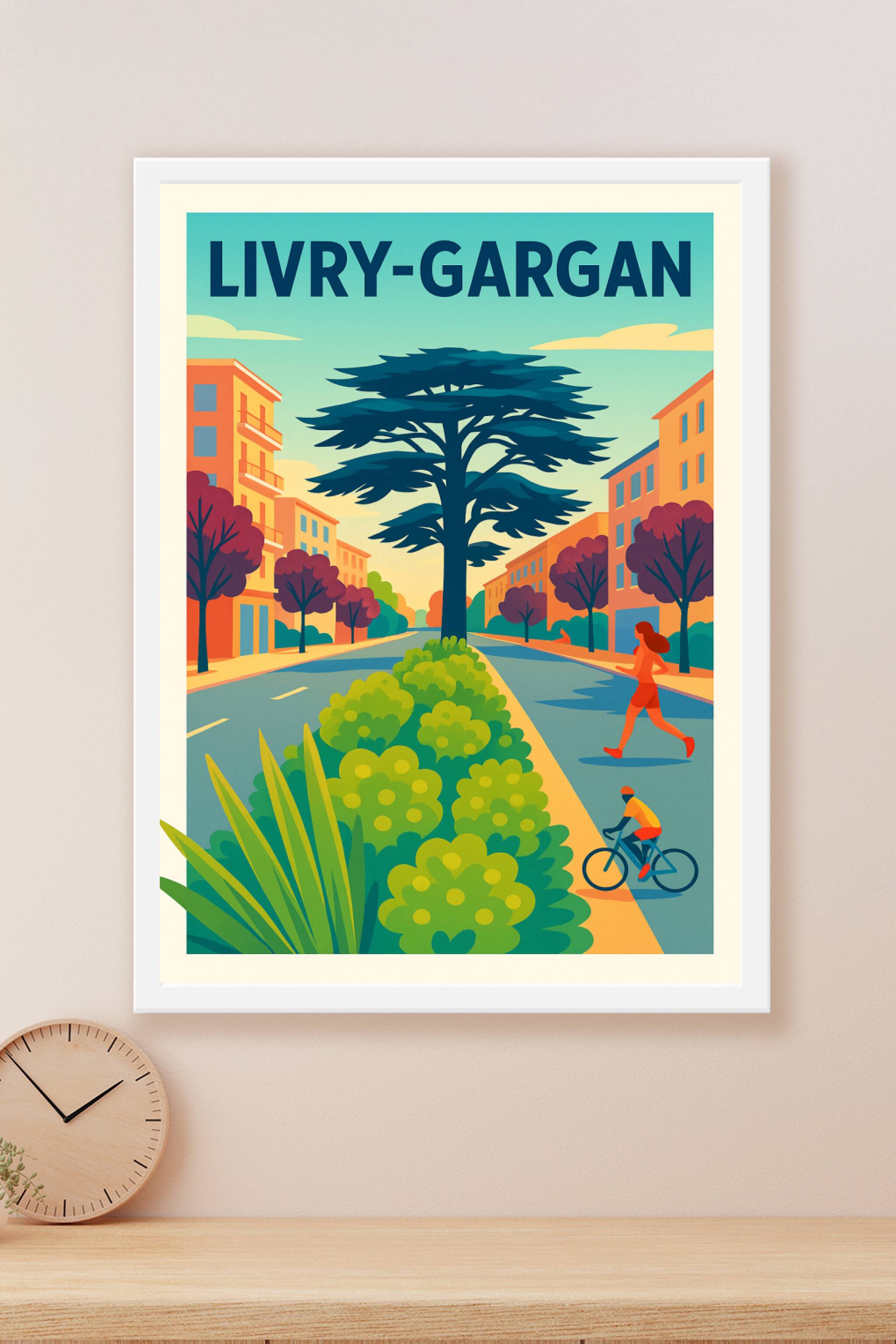Découvrez cette affiche stylisée de Livry-Gargan, qui capture l'harmonie entre nature et ville à travers une perspective colorée et dynamique. Ce poster met en scène une rue bordée d'arbres et de bâtiments, éclairée par une lumière chaleureuse, invitant à la détente et à l’activité en plein air.Ce poster est disponible en tirage Fine Art de haute qualité, imprimé sur papier 305g coton, offrant un rendu riche en couleurs et une durabilité exceptionnelle. Vous pouvez choisir parmi les formats A1 à A4, avec ou sans cadre, pour parfaitement intégrer cette affiche à votre décoration intérieure.Offrez-vous ou offrez un souvenir unique de Livry-Gargan avec cette affiche qui marie élégance graphique et qualité d’impression premium, 100% fabriquée en France.