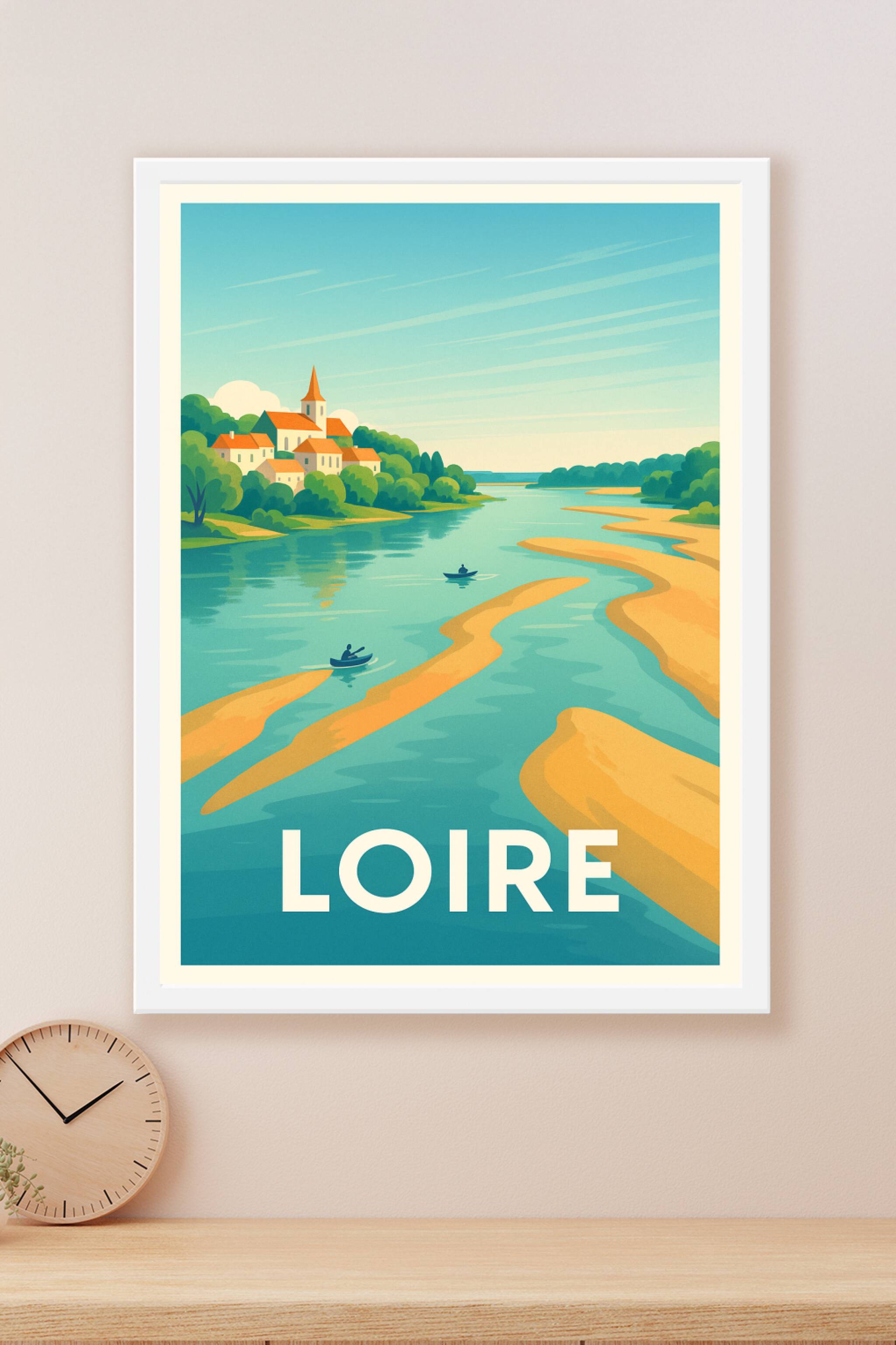 Découvrez la douceur et la quiétude des paysages ligériens avec cette affiche représentant la Loire et ses méandres entourés de villages pittoresqu...