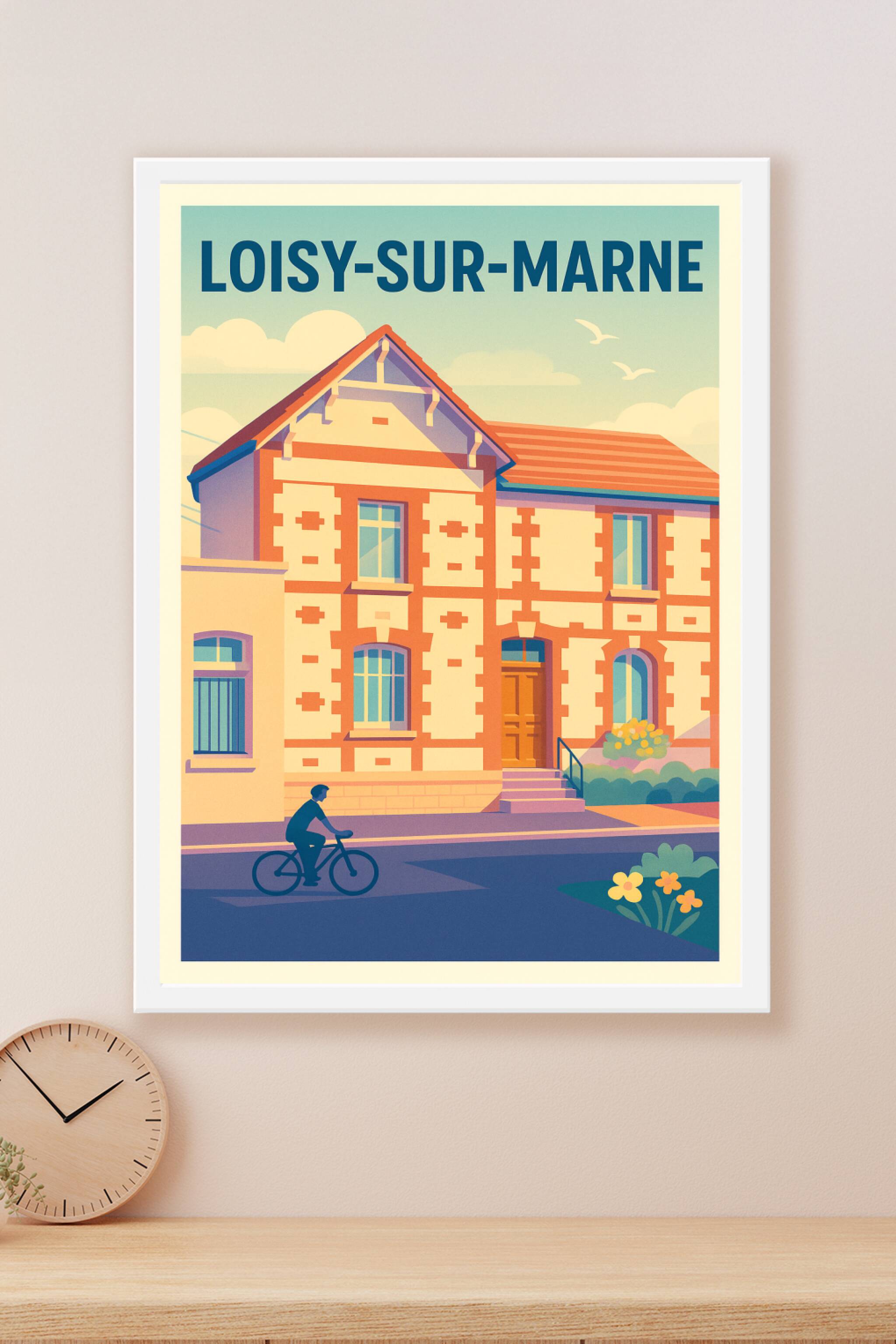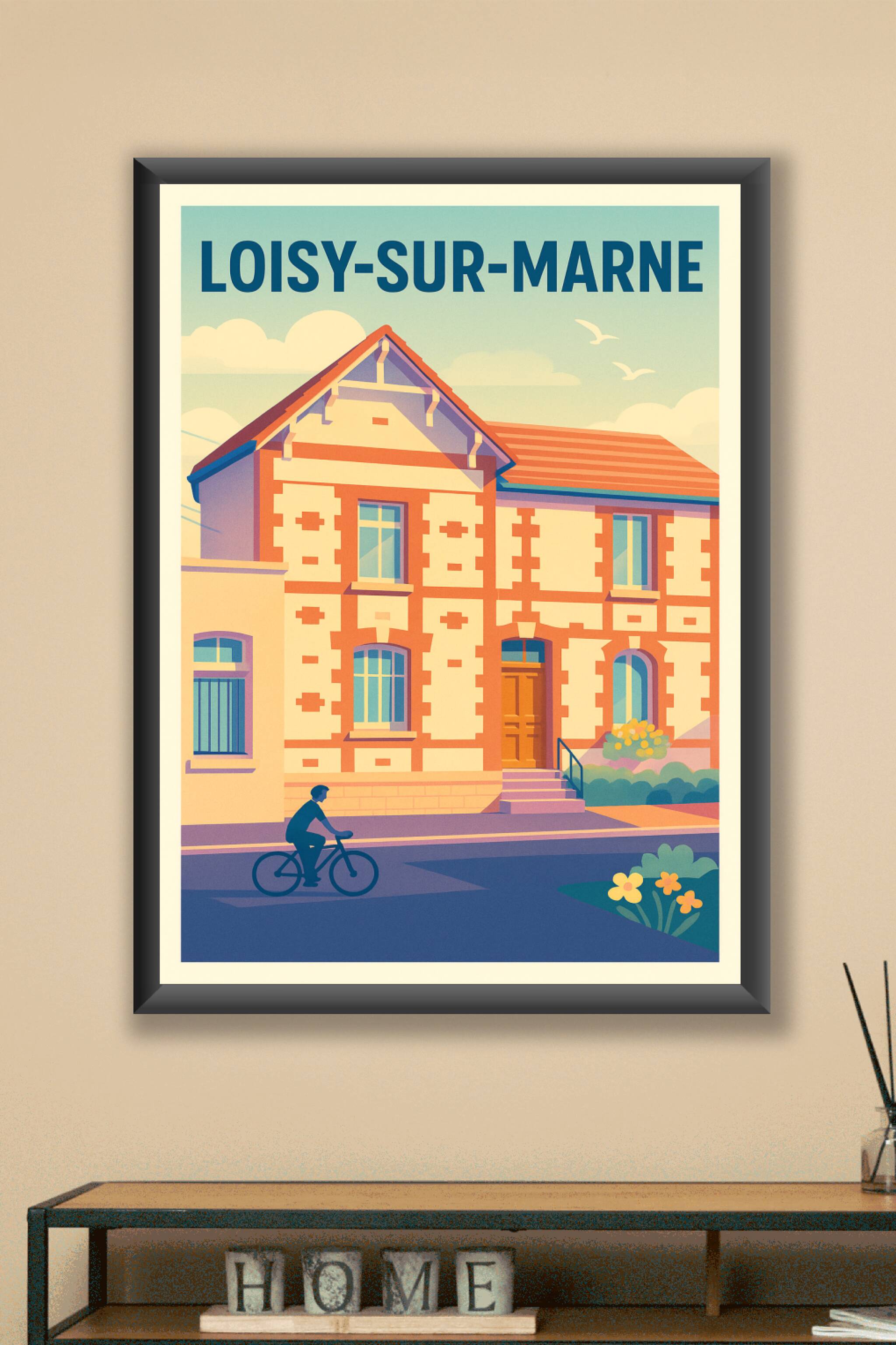 Découvrez Loisy-sur-Marne à travers cette affiche rétro qui capture l'essence tranquille d'une architecture locale pittoresque et le quotidien paisible d'un cycliste en balade. Ce poster, au style vintage et couleurs douces, apportera une touche chaleureuse et authentique à votre intérieur. Imprimé en tirage "Fine Art" sur un papier 305g coton de qualité supérieure, il garantit une fidélité des couleurs et une durabilité exceptionnelles. Disponible en formats A1 à A4, avec ou sans cadre, cette affiche est idéale pour sublimer votre décoration ou offrir un souvenir unique de Loisy-sur-Marne. Profitez d'une impression premium 100% fabriquée en France pour un rendu haut de gamme.