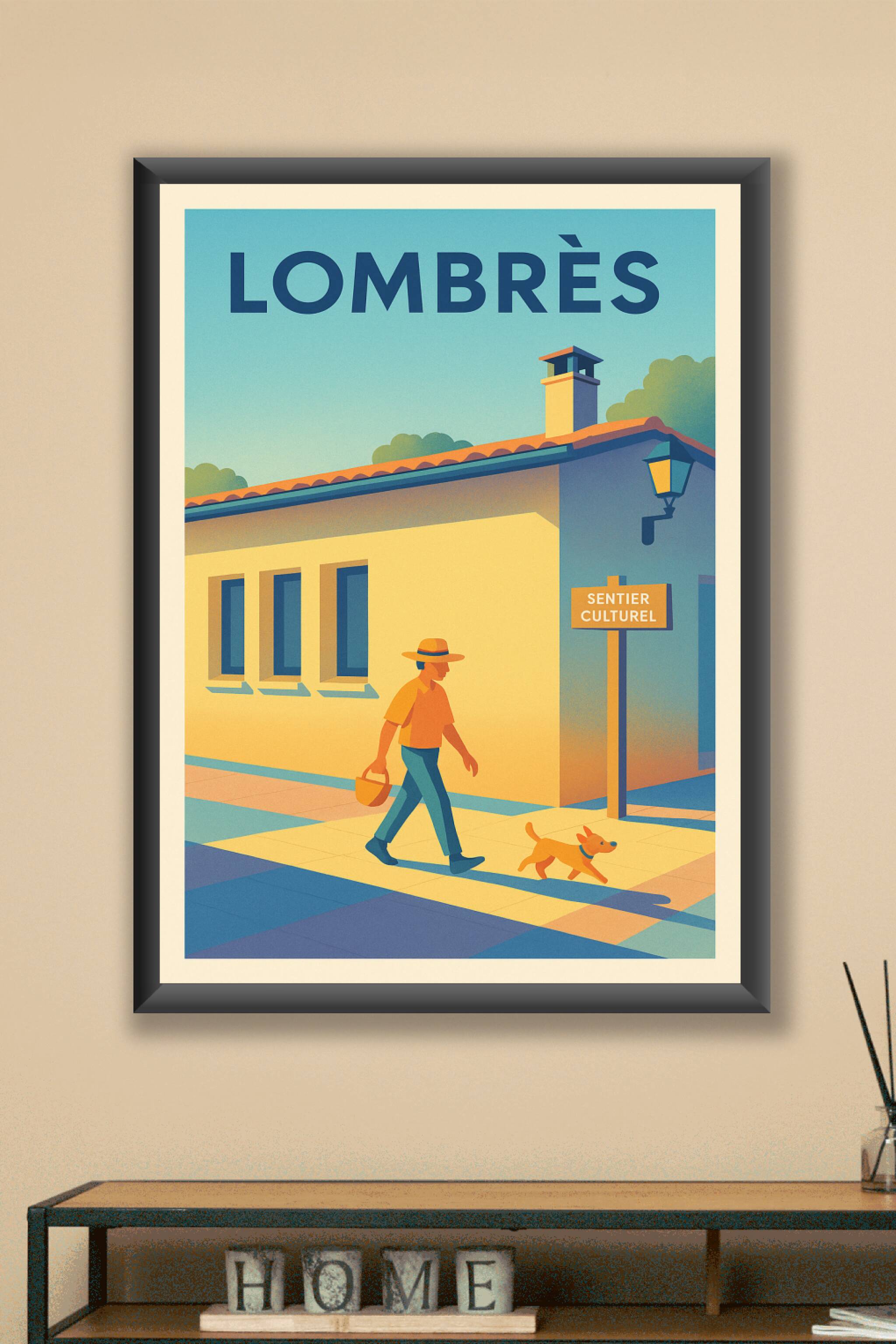 Découvrez l'ambiance paisible et ensoleillée de Lombrès avec cette affiche illustrée dans un style rétro et chaleureux. Cette scène capture un moment de vie quotidien avec une promenade au Sentier Culturel, où la lumière douce met en valeur les couleurs vives du paysage urbain. Ce poster est un véritable hommage à la sérénité et au charme de cette ville authentique. Disponible en tirage "Fine Art" imprimé sur papier 305g coton, il garantit une qualité d'impression supérieure pour sublimer votre décoration intérieure. Choisissez parmi les formats A1 à A4, avec ou sans cadre, pour intégrer cette affiche élégante à votre intérieur ou offrir un cadeau original aux passionnés de beaux lieux. Profitez d'un tirage premium, 100% fabriqué en France, pour embellir vos murs avec raffinement et douceur.