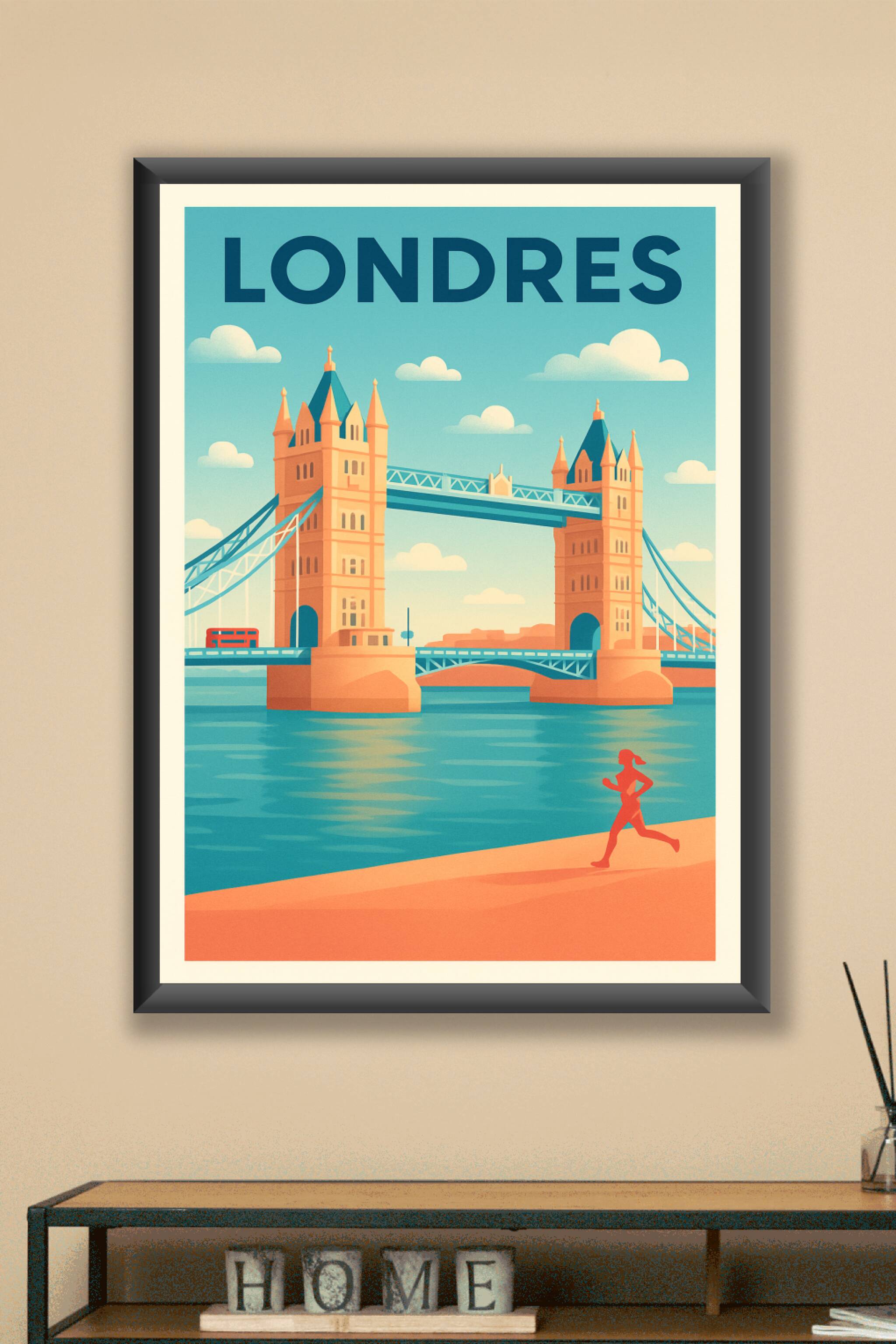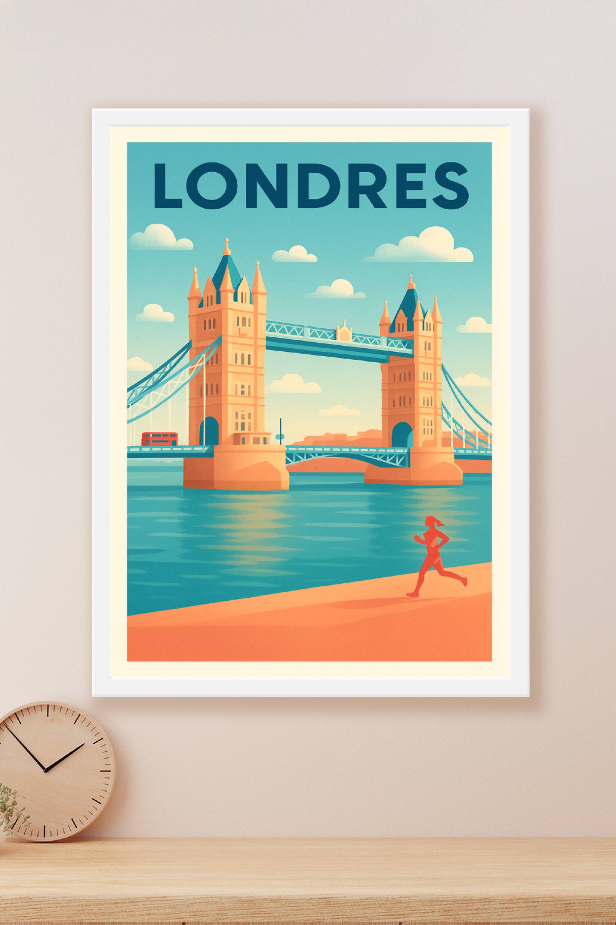 Découvrez Londres sous un angle vibrant avec cette affiche illustrée représentant la majestueuse Tower Bridge baignée dans une lumière douce et paisible. L'affiche capture parfaitement l'ambiance zen entre ciel bleu, eaux calmes et une silhouette active en jogging au premier plan, offrant un subtil contraste entre patrimoine et modernité. Imprimée en tirage "Fine Art" sur un papier 305g coton de haute qualité, cette affiche ou poster est disponible en plusieurs dimensions allant de A1 à A4, avec ou sans cadre selon vos préférences. Sa qualité d'impression premium 100% fabriquée en France garantit des couleurs éclatantes et une longévité optimale, parfaite pour sublimer votre décoration intérieure ou offrir un cadeau raffiné aux amateurs de Londres.