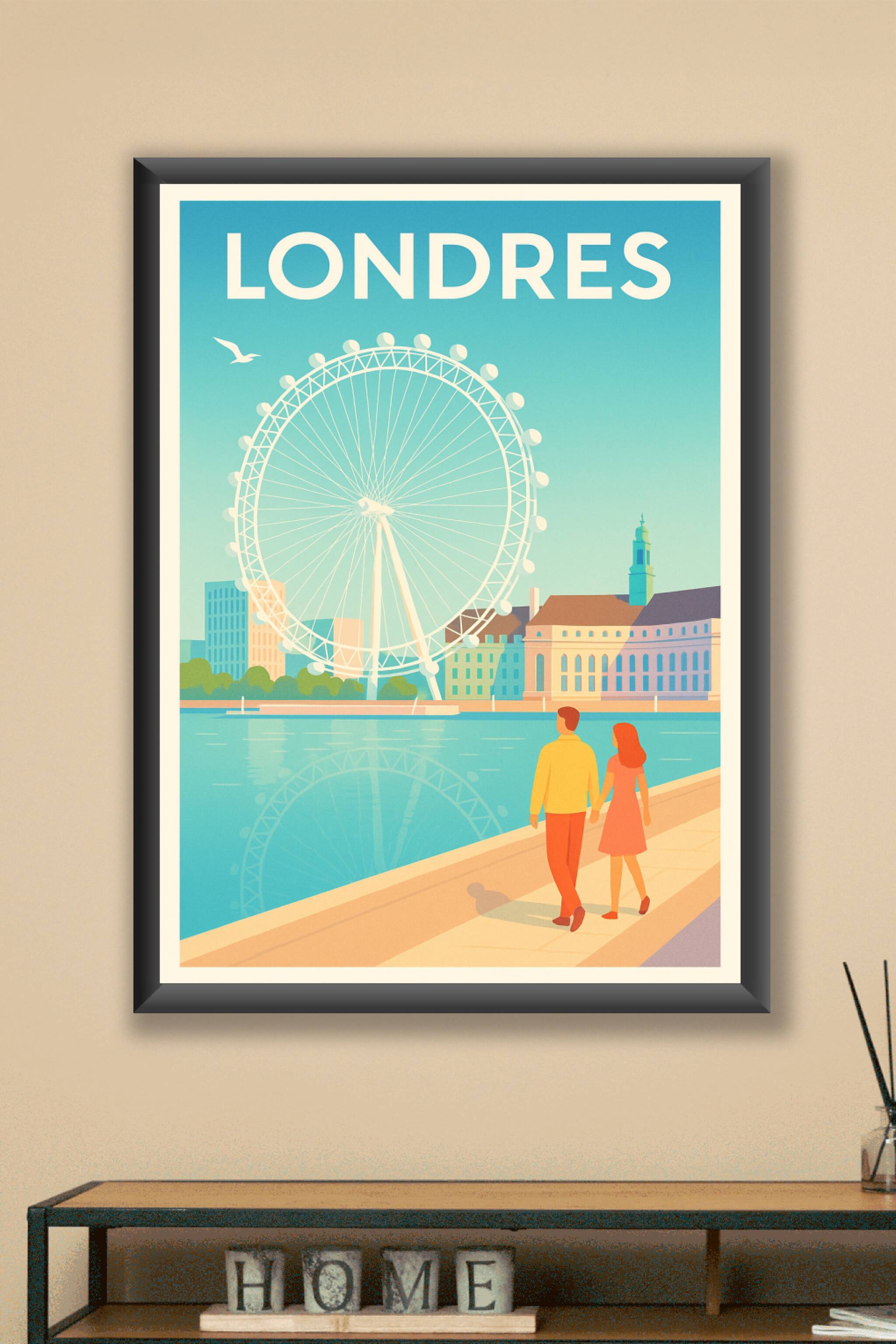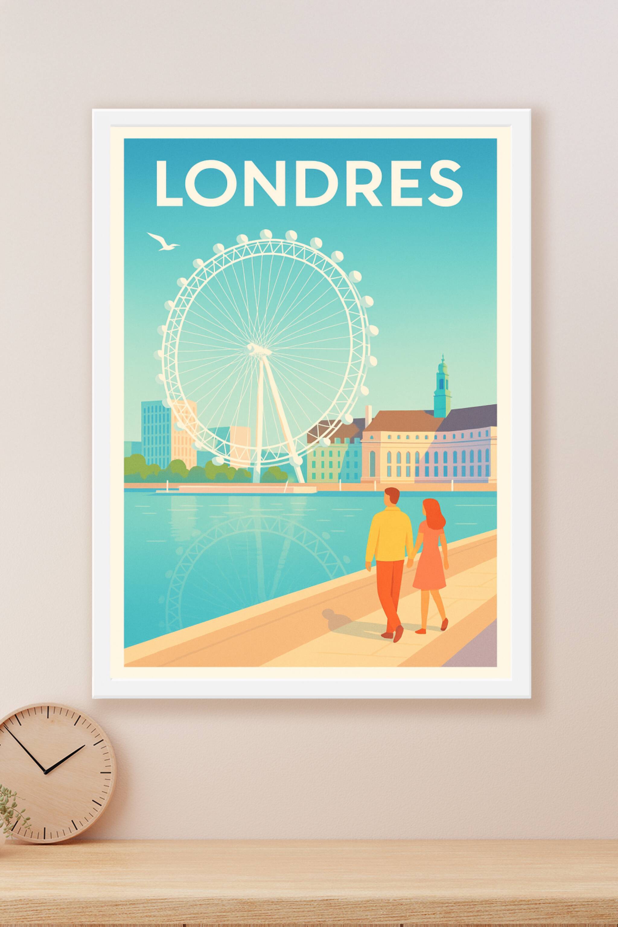 Découvrez l'élégance intemporelle de Londres avec cette affiche au style rétro mettant en scène une promenade au bord de la Tamise, face à la célèbre grande roue London Eye. Ce poster capture la douceur d'un instant dans l'atmosphère unique de la capitale britannique, idéale pour apporter une touche vintage et romantique à votre intérieur. Imprimée en tirage "Fine Art" sur papier 305g coton de haute qualité, cette affiche bénéficie d'une impression soignée pour des couleurs éclatantes et durables. Disponible en formats A1 à A4, avec ou sans cadre, elle s'adaptera parfaitement à votre décoration ou fera un cadeau raffiné pour les amoureux de Londres.