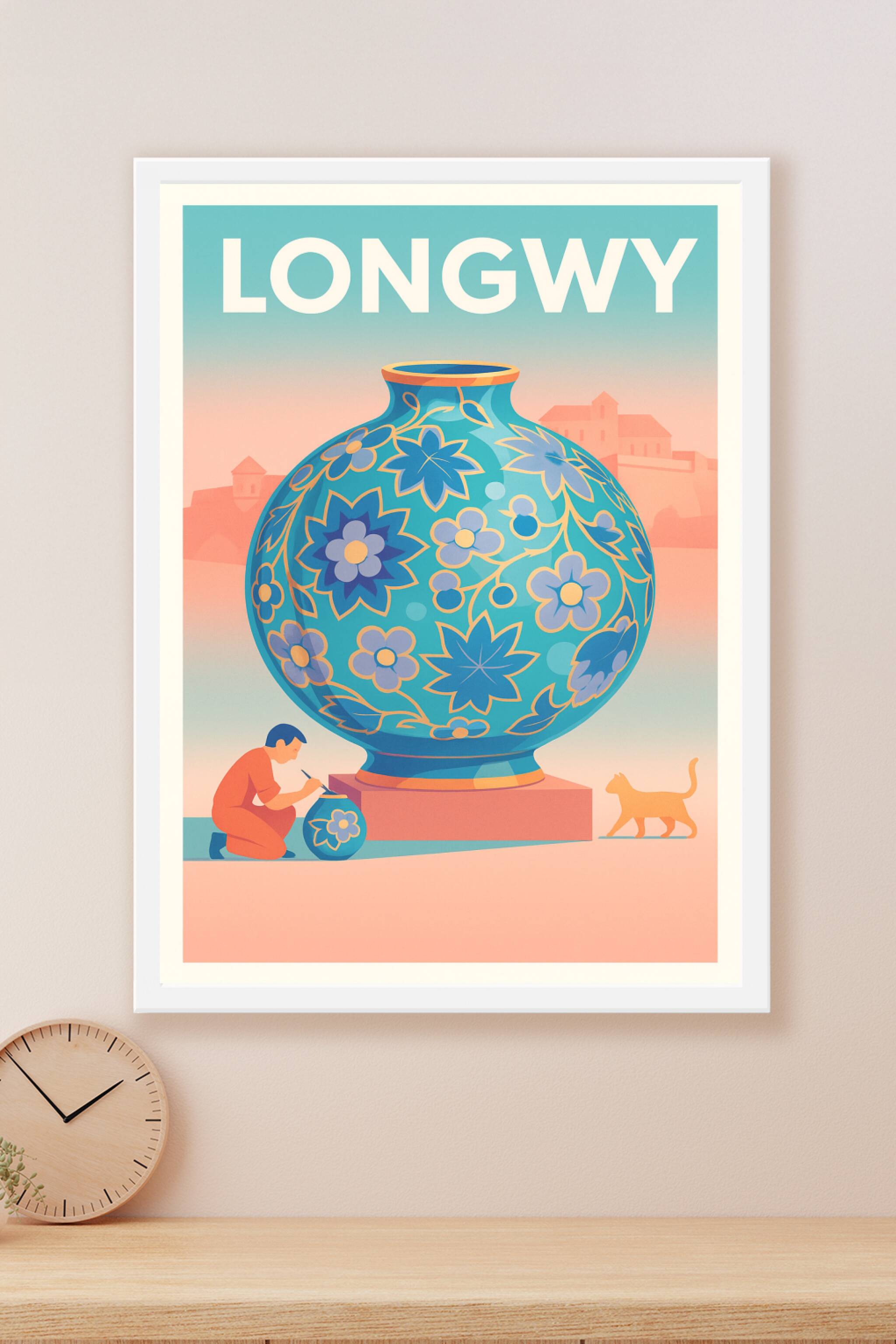 Découvrez la délicatesse et la richesse artistique de Longwy avec cette affiche mettant en scène la célèbre faïence aux motifs floraux, symbole emblématique de la ville. Ce poster illustre un artisan en pleine création, capturant l'âme et le savoir-faire réputé de Longwy, avec un arrière-plan pastel qui apporte douceur et élégance.Cette affiche est imprimée en tirage "Fine Art" sur papier 305g coton, garantissant une qualité exceptionnelle et une longévité remarquable. Disponible en formats A1 à A4, avec ou sans cadre, elle s'adapte parfaitement pour sublimer votre intérieur ou offrir un cadeau raffiné aux amateurs d’art et de patrimoine.Profitez d'une impression premium 100% fabriquée en France pour une décoration unique et authentique.