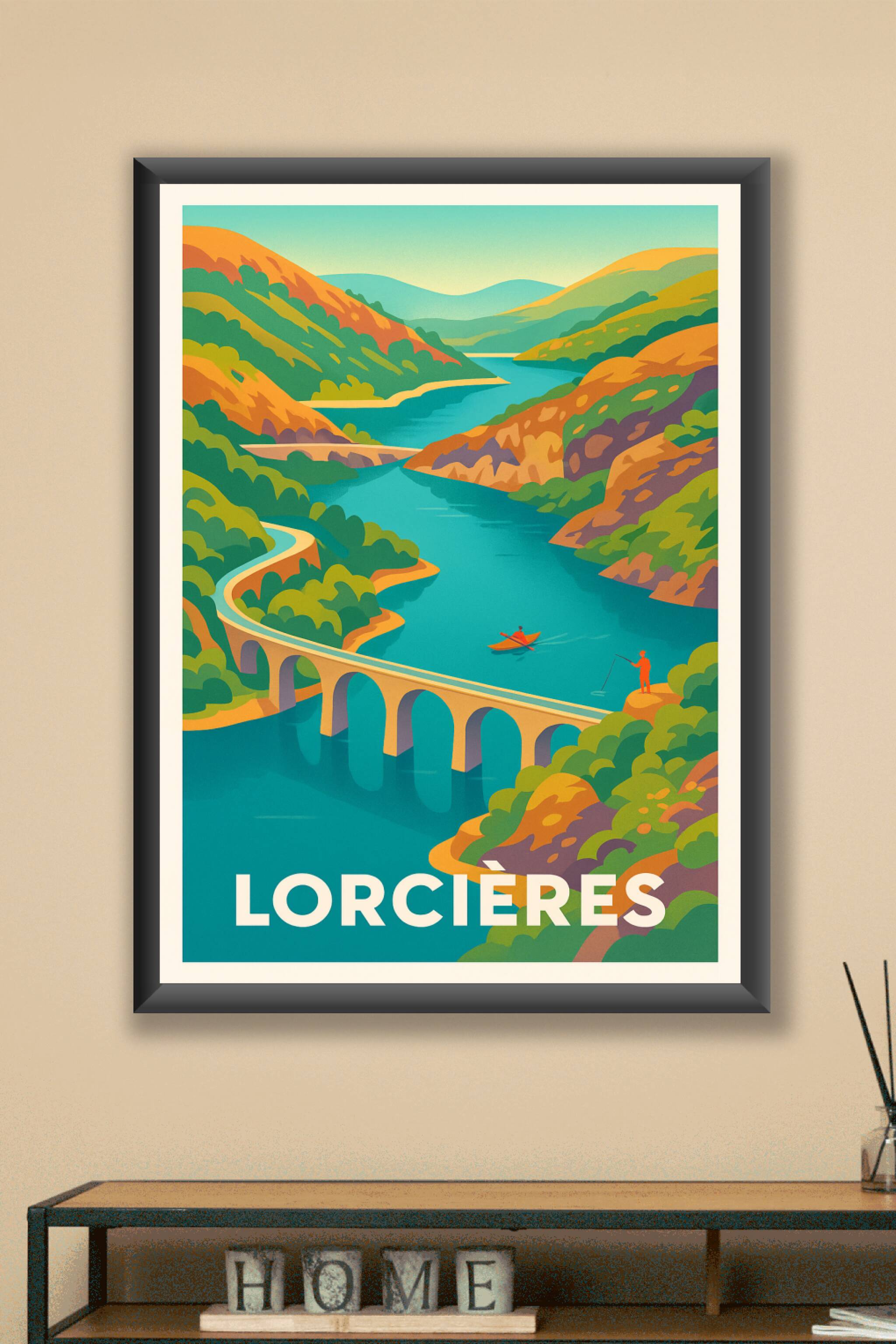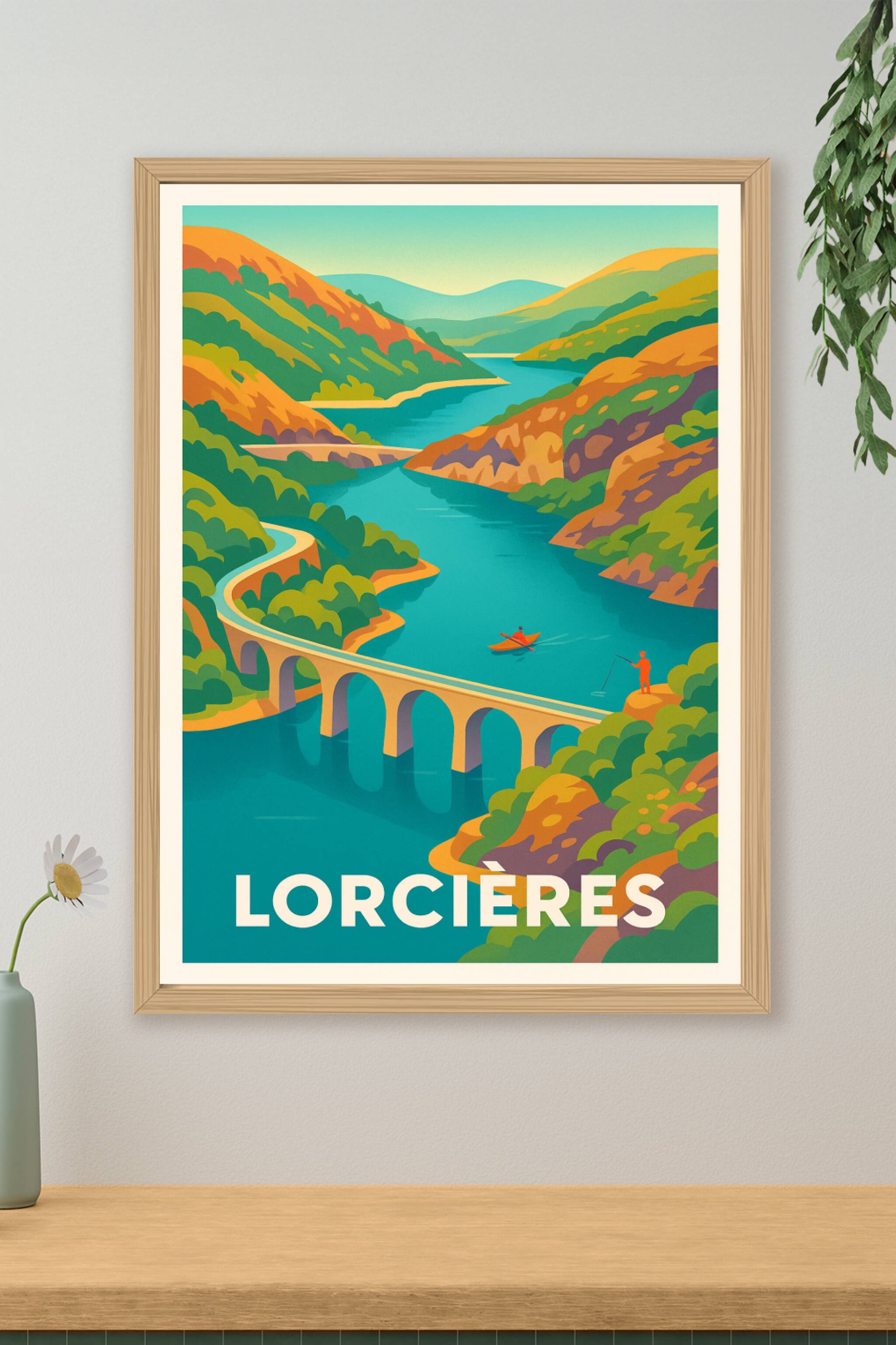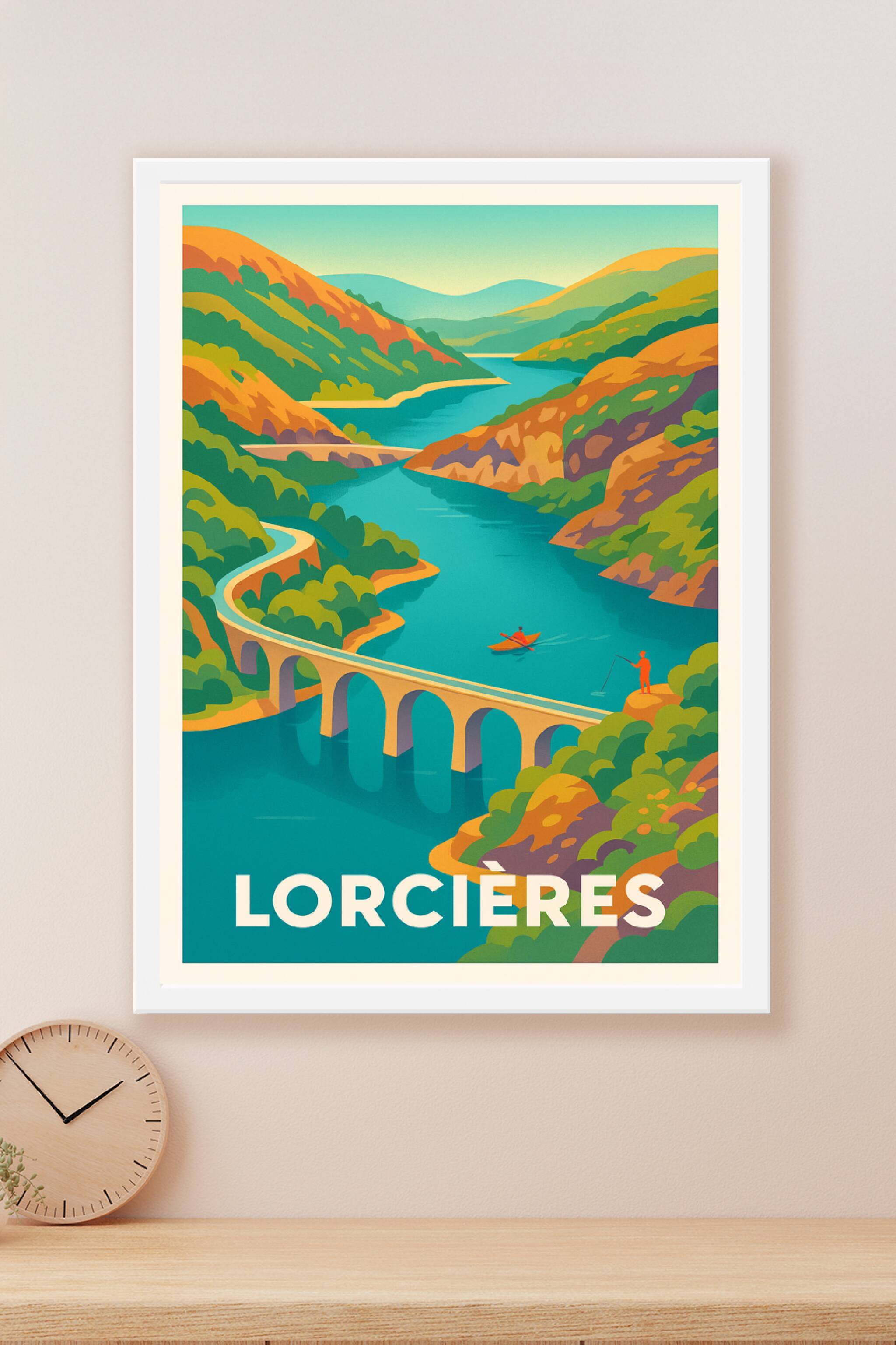 Découvrez la beauté naturelle et paisible de Lorcières avec cette affiche illustrée au style vintage moderne. Ce poster met en valeur la rivière se...